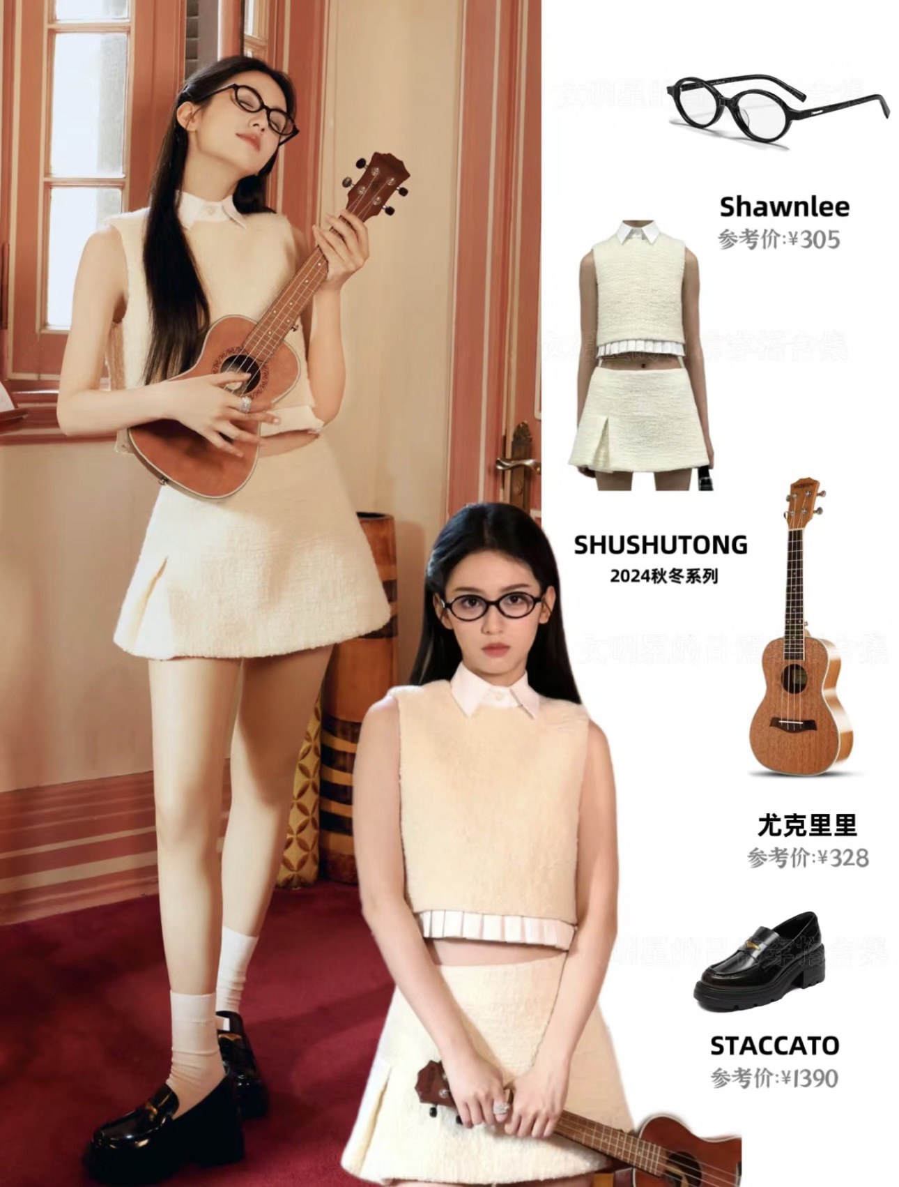 周也最近的穿搭好喜欢呀!!! 又甜又酷白色小香风套装造型 温柔又可爱也子戴眼镜也好好看 有小说女主那味儿啦 喜欢的姐妹可以参考一下啦~