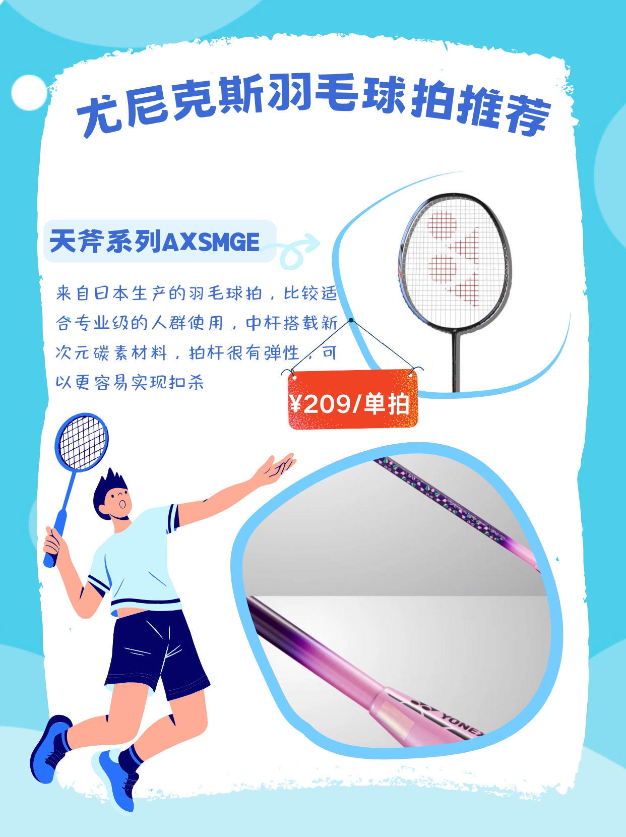 本篇笔记关联了YONEX/尤尼克斯 天斧系列 AXSMGE 白虎纹 专业级 进攻型 速度型 攻守兼备 易上手 耐用型 拍头重 杆硬 耐打 全碳素纤维 羽毛球拍 紫粉红、YONEX/尤尼克斯 天斧系列 AXSMGE 白虎纹 专业级 进攻型 速度型 攻守兼备 易上手 耐用型 拍头重 杆硬 耐打 全碳素纤维 羽毛球拍 黑冰蓝、YONEX/尤尼克斯 威力系列 VTPWSR 超轻耐用 入门级 进攻型 耐打 全碳素 羽毛球拍 白黑色等商品,为用户提供真实的使用体验和购买参考。