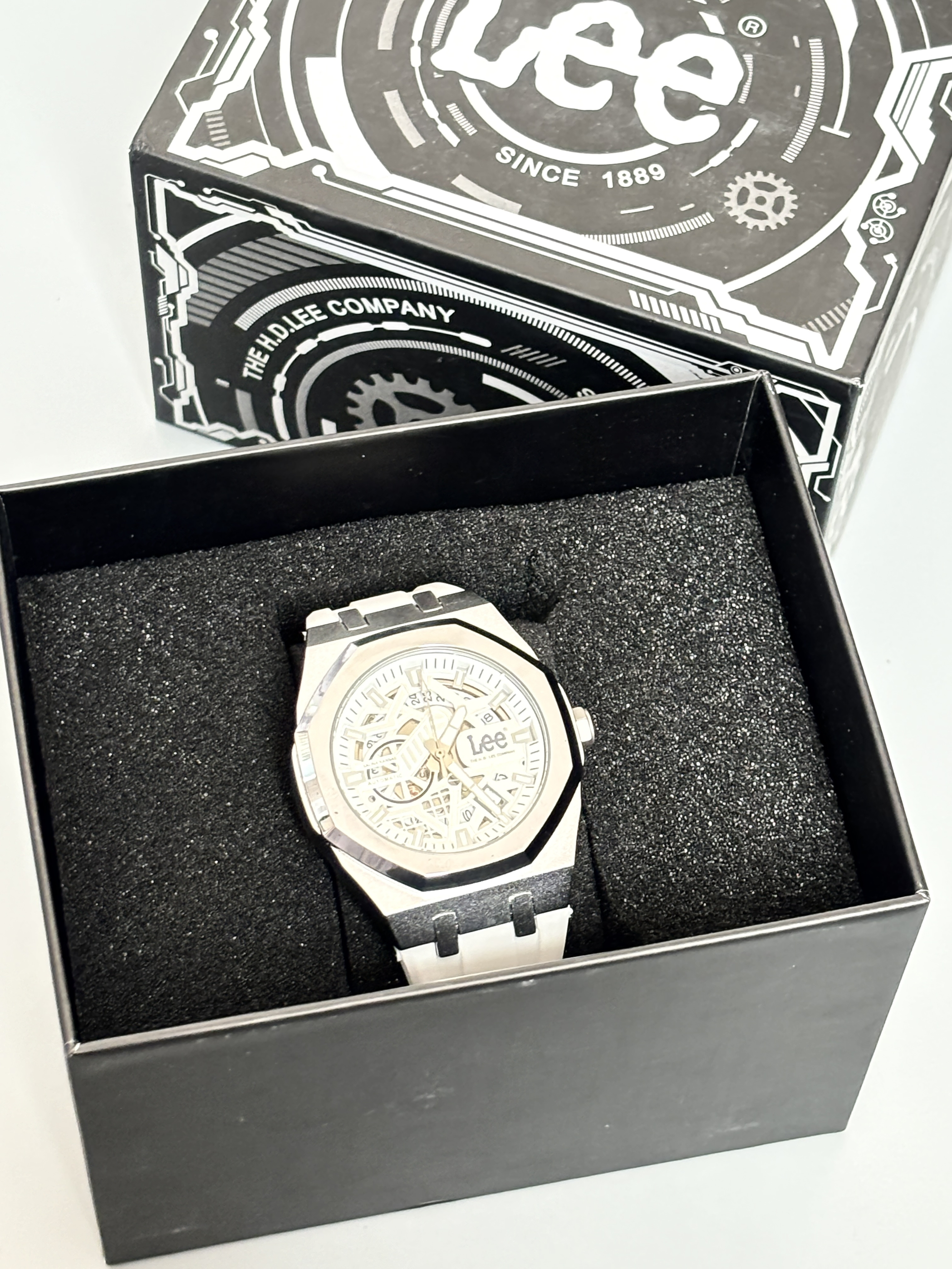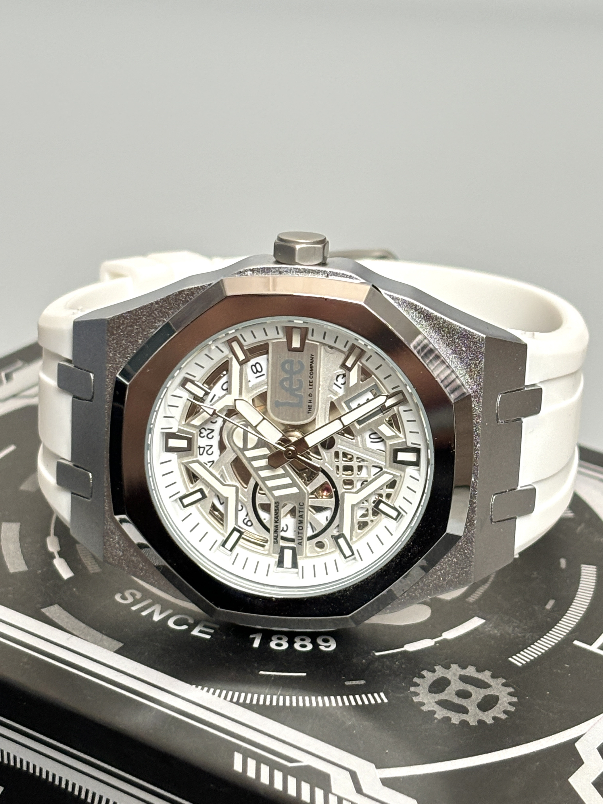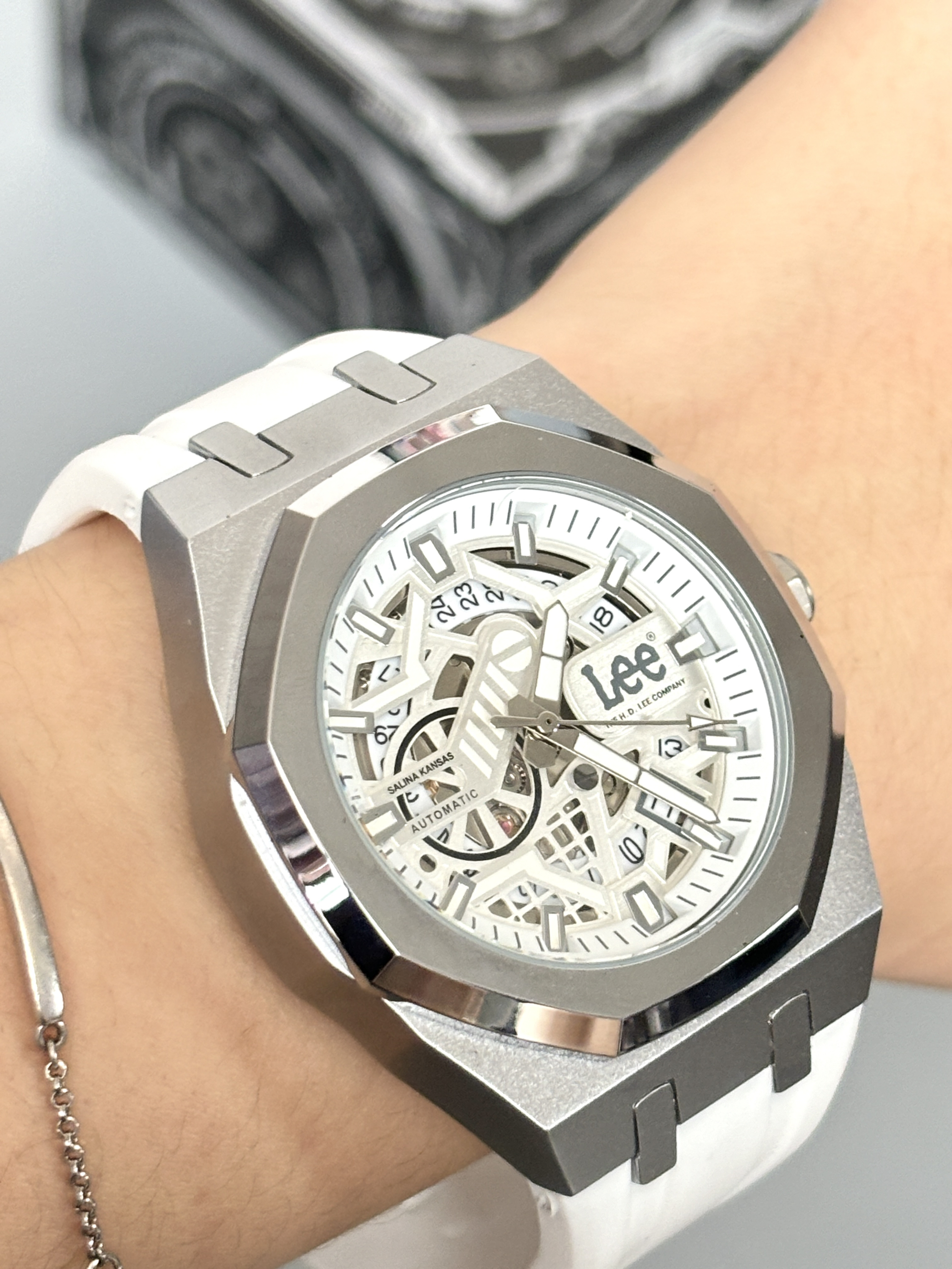 挖到一块酷酷的机械表 白色尊的低调又高级 硅胶表带戴着蛮舒服滴 这个价格买起来压力不大