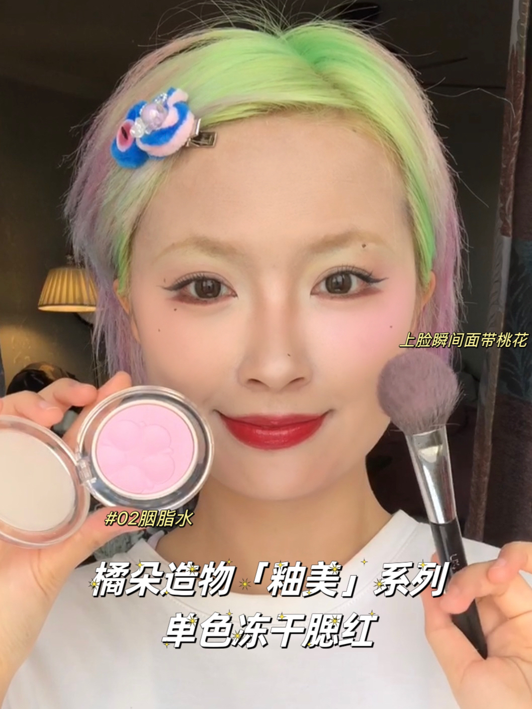 橘朵造物系列的实力和颜值真的都很在线! 单色高光M01烟屿 直接是磨皮感的哑光高光 上脸是刚刚好提亮又不显突兀的白 我主要用在额头、面中、山根、鼻头和下巴,脸真的肉眼可见地嘭弹起来 像是mtxx开了一键丰盈又开了磨皮一样! 现在流行的眼头提亮用它也OK,涂完一秒变辣妹~
