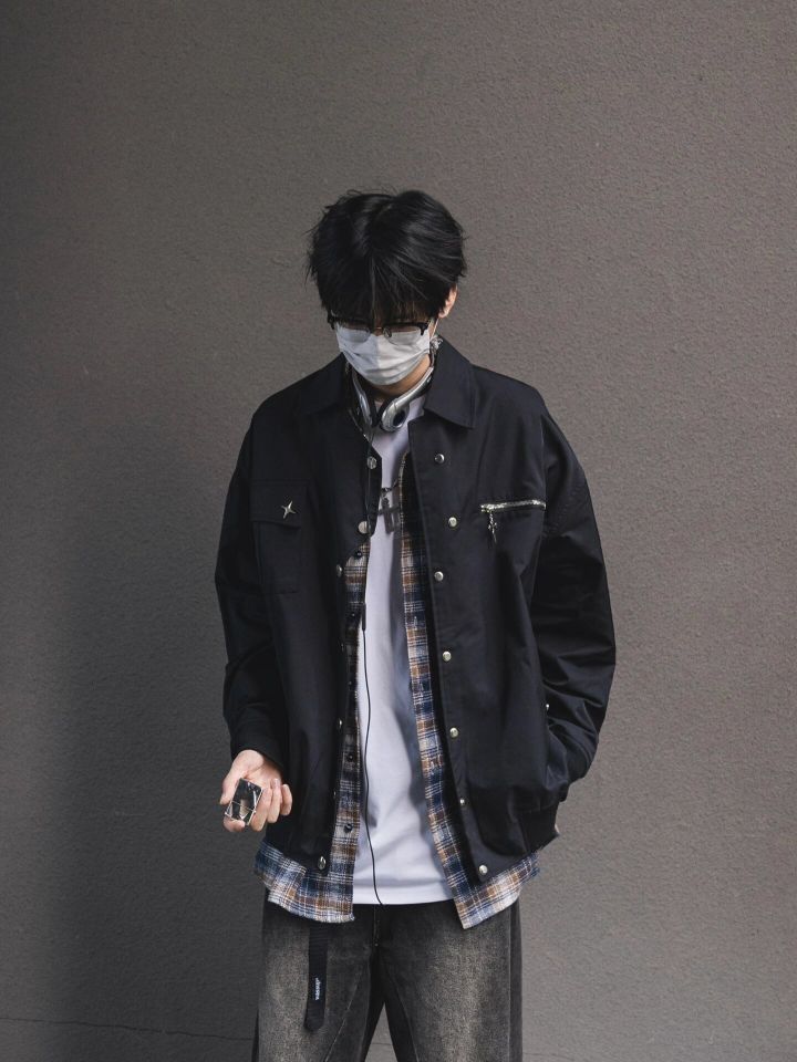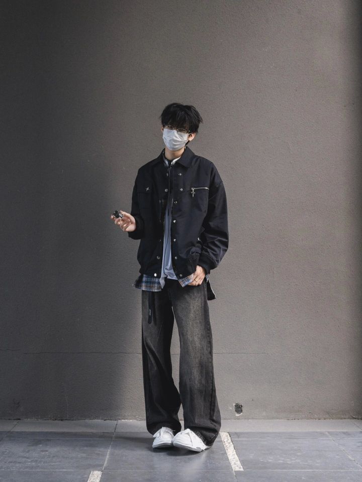身高|体重:180 100 🧍♂️ 穿搭风格:少年青春 👔 上衣:格子衬衫,复古美式夹克 👖 下装:阔腿牛仔裤 👟 鞋子:李宁板鞋 🎒配饰:半框眼镜,打火机,口罩
