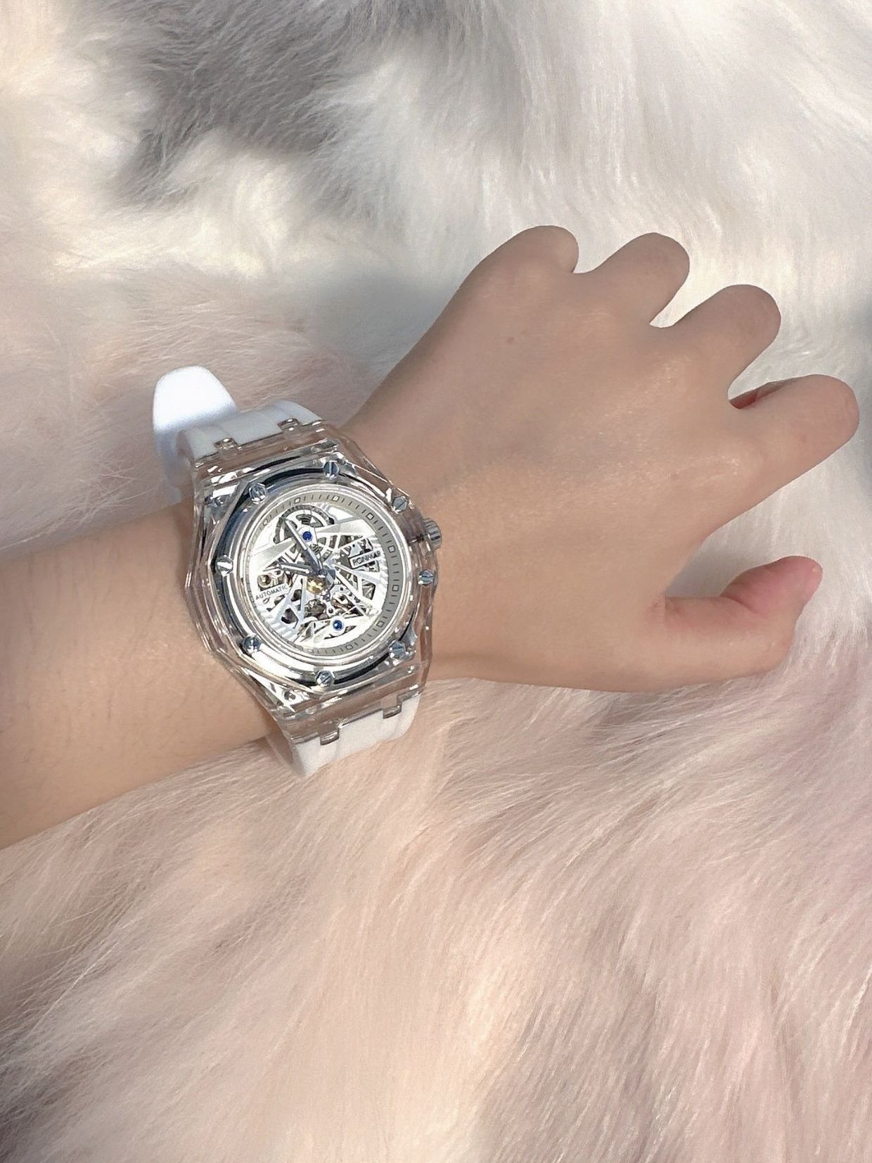 情人节男票在口朗玛RONMAR 家给我入手了一款冰川系列机械手表 试戴以后真是爱了爱了 铁空的设计简直不要太 了! 日常百搭甜酷女孩的标配了。礼盒的设计也是高级感满满 酷 情人节还没有选好礼物性的小伙伴 可以参考我这款哦, 实用性价比高!