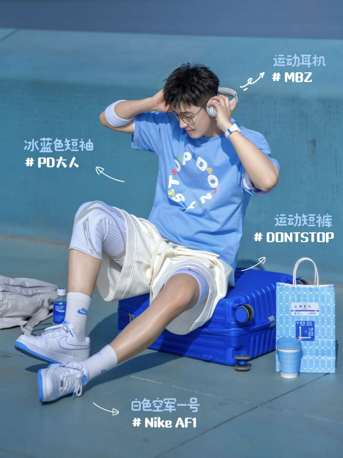 🔹在四月的春天里!🍃✨……开始期待夏天啦!🌈💦……真的好喜欢“蓝色系”夏日多巴胺穿搭!💙💤…… — ⚠️本人身高|体重:176CM|62KG(🉑️参考) — 🔹关于“夏日穿搭”!我真的好喜欢“蓝色系穿搭”!一整个就是“清爽干净”少年感穿搭!今天主打的就是一个“运动阳光体育生男大学生”!☀️✨……满满的“青春活力”盐系男友风!🌀💦……真的好适合男生夏季穿搭!🧊💤…… —