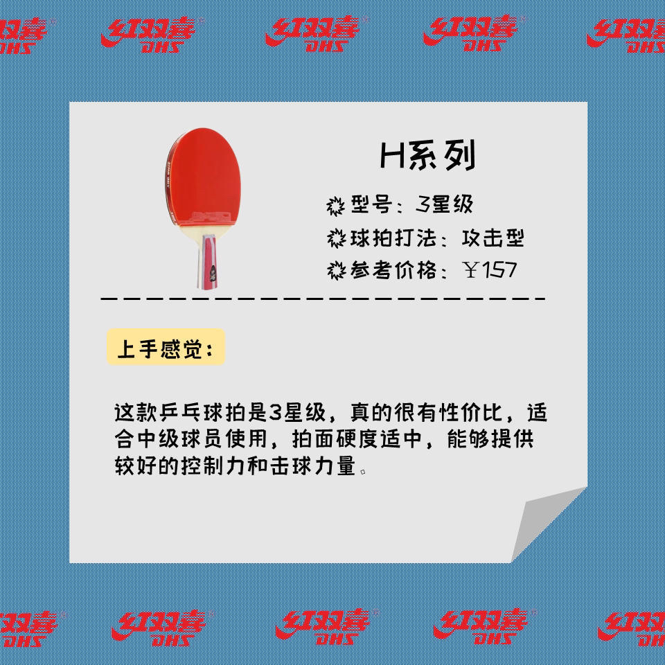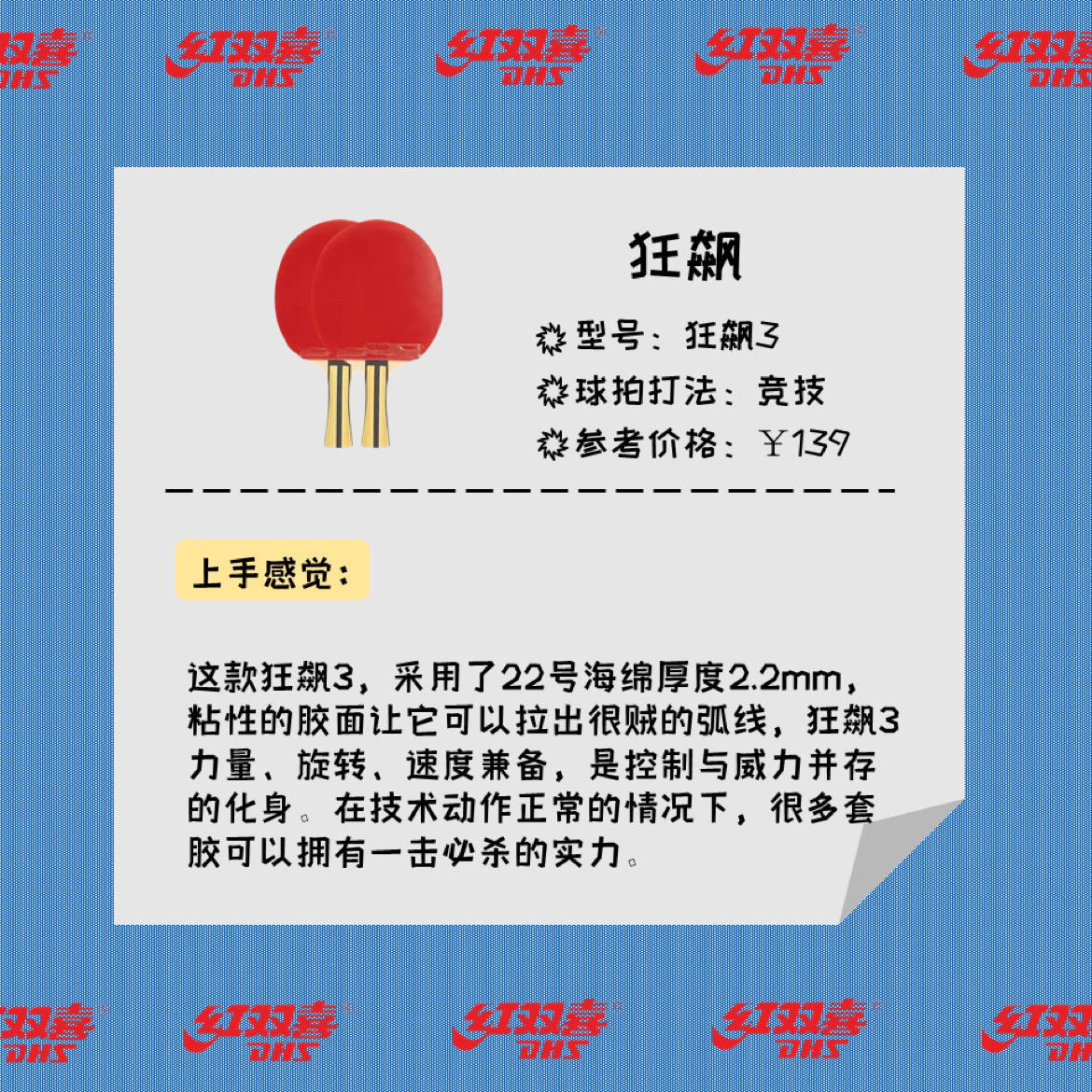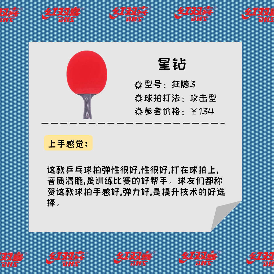 本篇笔记关联了DHS/红双喜 星钻系列 星钻黑耀 八星 纯木 横直 狂飚3 双面反胶 专业级 乒乓球拍 长柄横拍、DHS/红双喜 R系列 五星级 狂飙3 碳素底板 专业级 弧圈 快攻 全能型 碳纤维 双面反胶 乒乓球拍 横拍、DHS/红双喜 PG9 劲极系列 直拍横拍 乒乓球拍 直拍等商品,为用户提供真实的使用体验和购买参考。