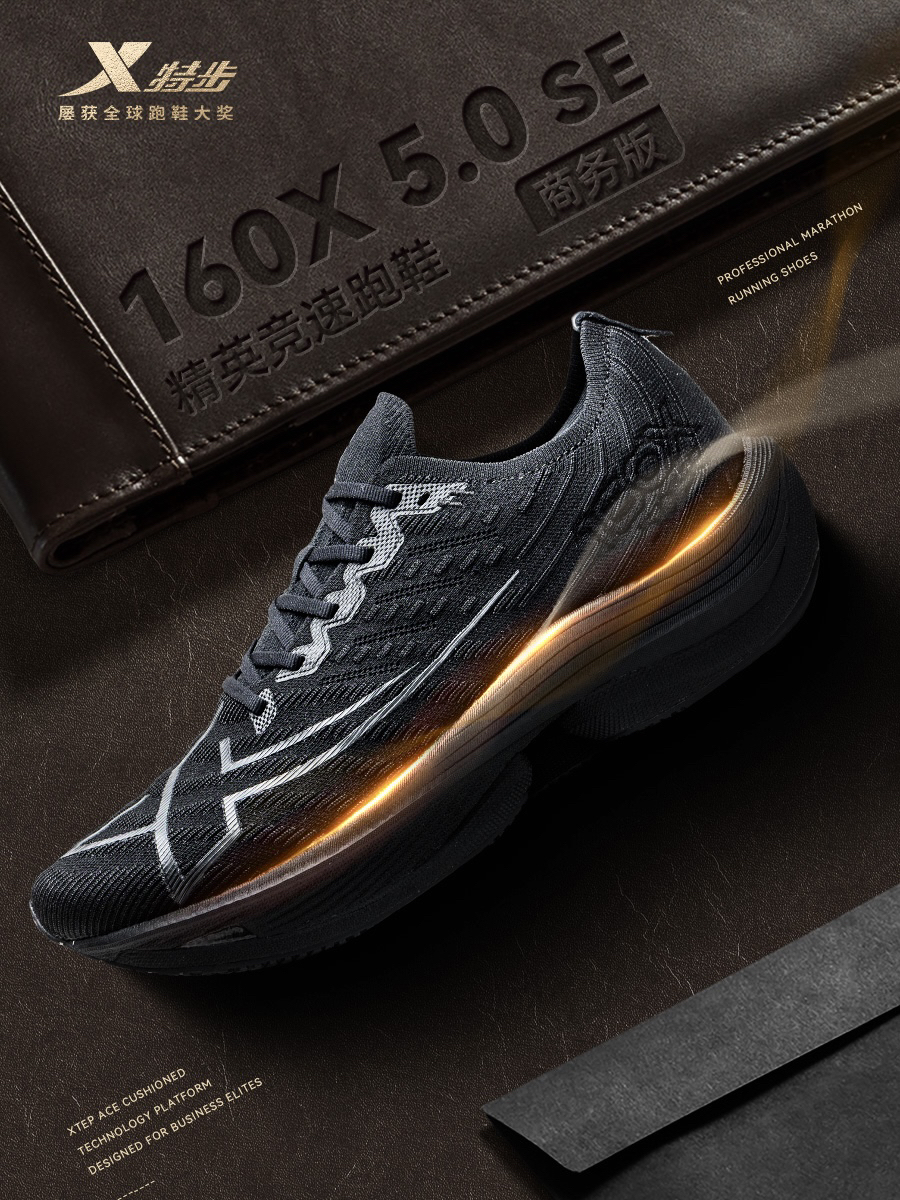 这个话题一直是有争议的 特步大胆的给出了他们的理解,把他们家次顶配的碳板跑鞋,出了一个商务版,160X5.0 SE 主打一个「上班商务精英,下班田径精英」! 我们看下配置和普通版有什么区别 鞋舌换成了一体飞织,可能透气性会减一点,舒服性好一点 除了鞋舌以外的鞋面、中底科技、碳板,这几个核心配置应该是没有变化 所以综合脚感应该和普通版接近,偏软弹,减震行程不算长,驾驭门槛低 外底不是CP...