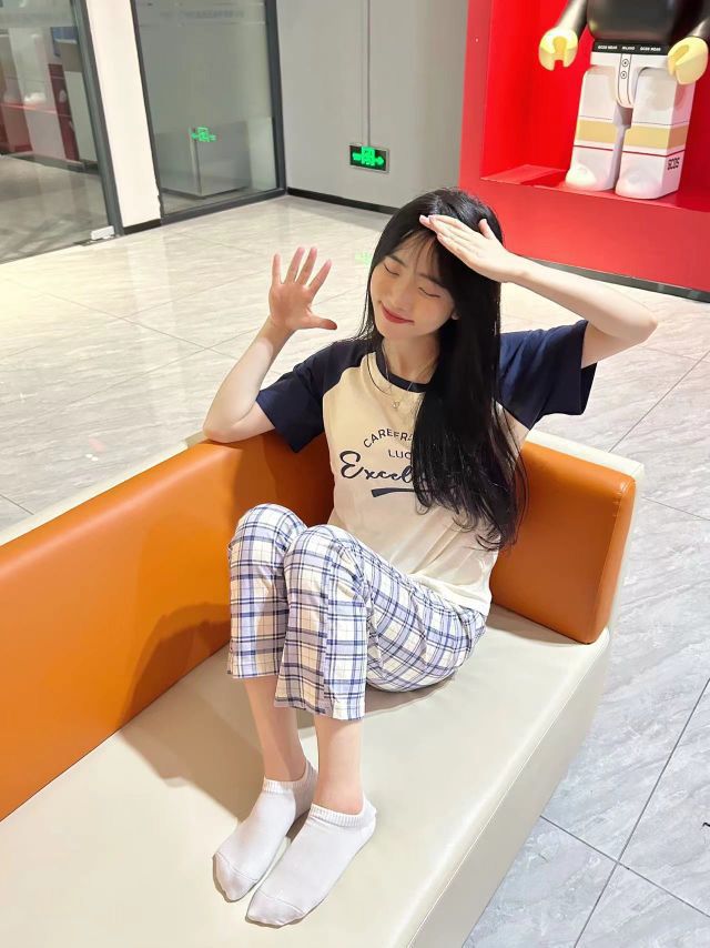 哈喽,家人们,今天的穿搭分享来啦,是一套入夏防臭袜子🧦穿搭分享~ 上半身: 蓝白色字母印花短袖 下半身: 蓝白格子阔腿裤+lee印花防臭袜子 一整套入夏臭袜子🧦穿搭get~ #夏日休闲风OOTD #女生夏日穿搭OOTD #宝藏短袖推荐 #好爱每一个风格的我 #出游进行时