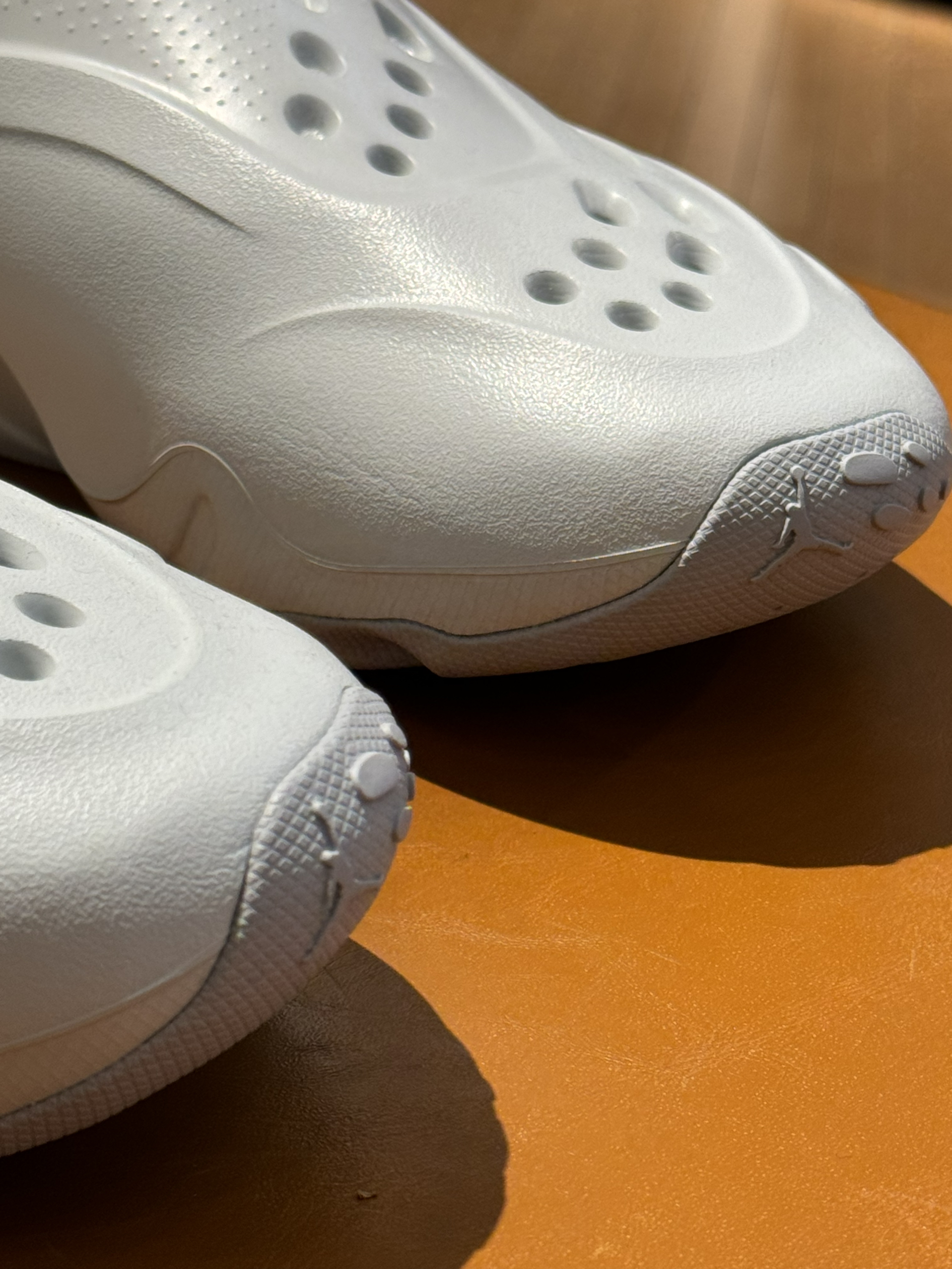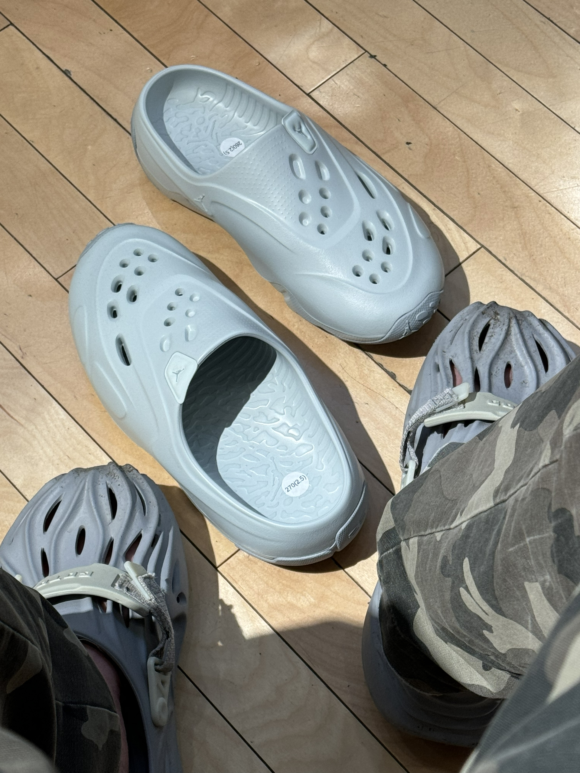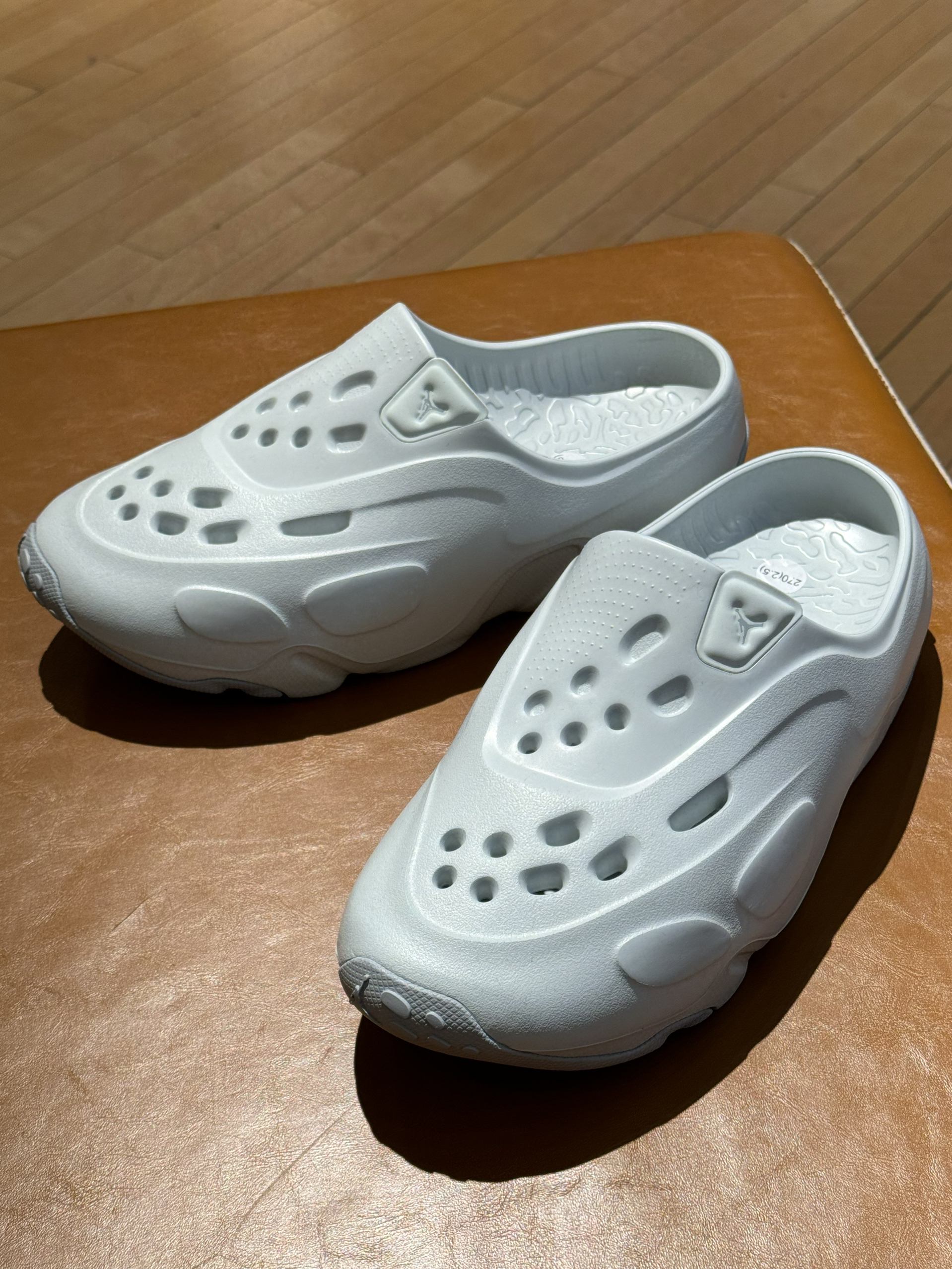 👟Jordan Roam 元祖灰配色拖鞋! 夏日第一期的拖鞋开箱,也是选择到了Jordan的全新系列的,今年度的拖鞋外观还是洞洞鞋的鞋型为主,同时拖鞋的表面也有几个透气的顺序排列的洞洞镂空,同时在拖鞋的后跟和鞋头,都有经典的23数字和飞人LOGO的标记。 在穿着过程当中建议尺码选择大一码,拖鞋类似于镶入式的鞋垫设计,在鞋底也是不错的防滑和抓地的横纹设计处理。夏日水洗也是可以滴。
