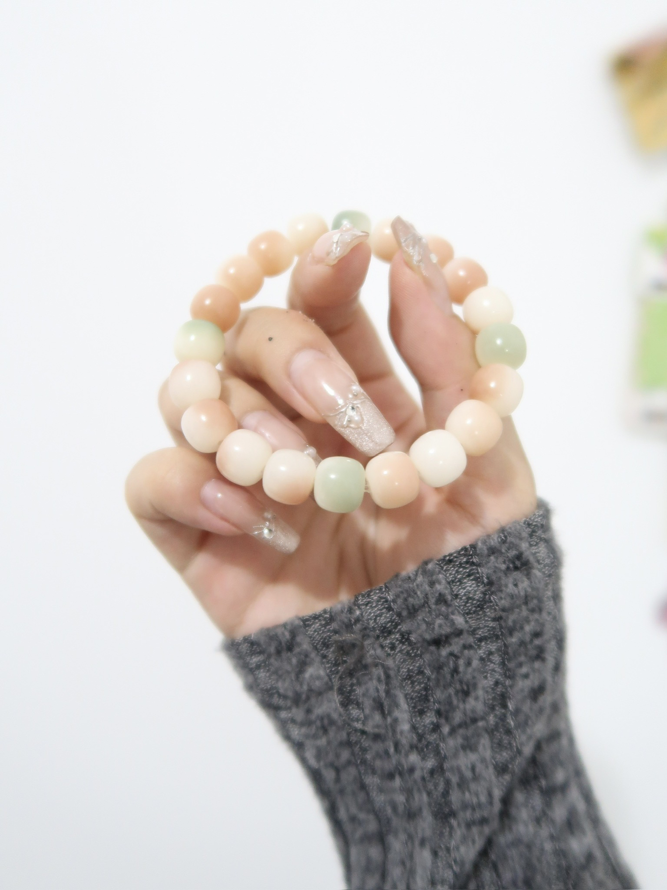 春日穿搭📖~ 我一直都很喜欢带珠串 但是家里的珠串颜色都很单调沉闷 直到我看到这款菩提串 真的好美 果断下单💕 拿到手也是没有让我失望 质感满满 孔道的做工也很细致 渐变的颜色很有春天的气息 每一棵菩提颜色都不一样 都是纯天然的色彩 很有特色 戴在手上也是很好看 各个年级段佩戴这款都很合适 时不时拿在手上盘 珠子还会变得更油亮油亮 更有光泽感 这个价格能有这样的体验我真的有被震惊到 我在学校里...