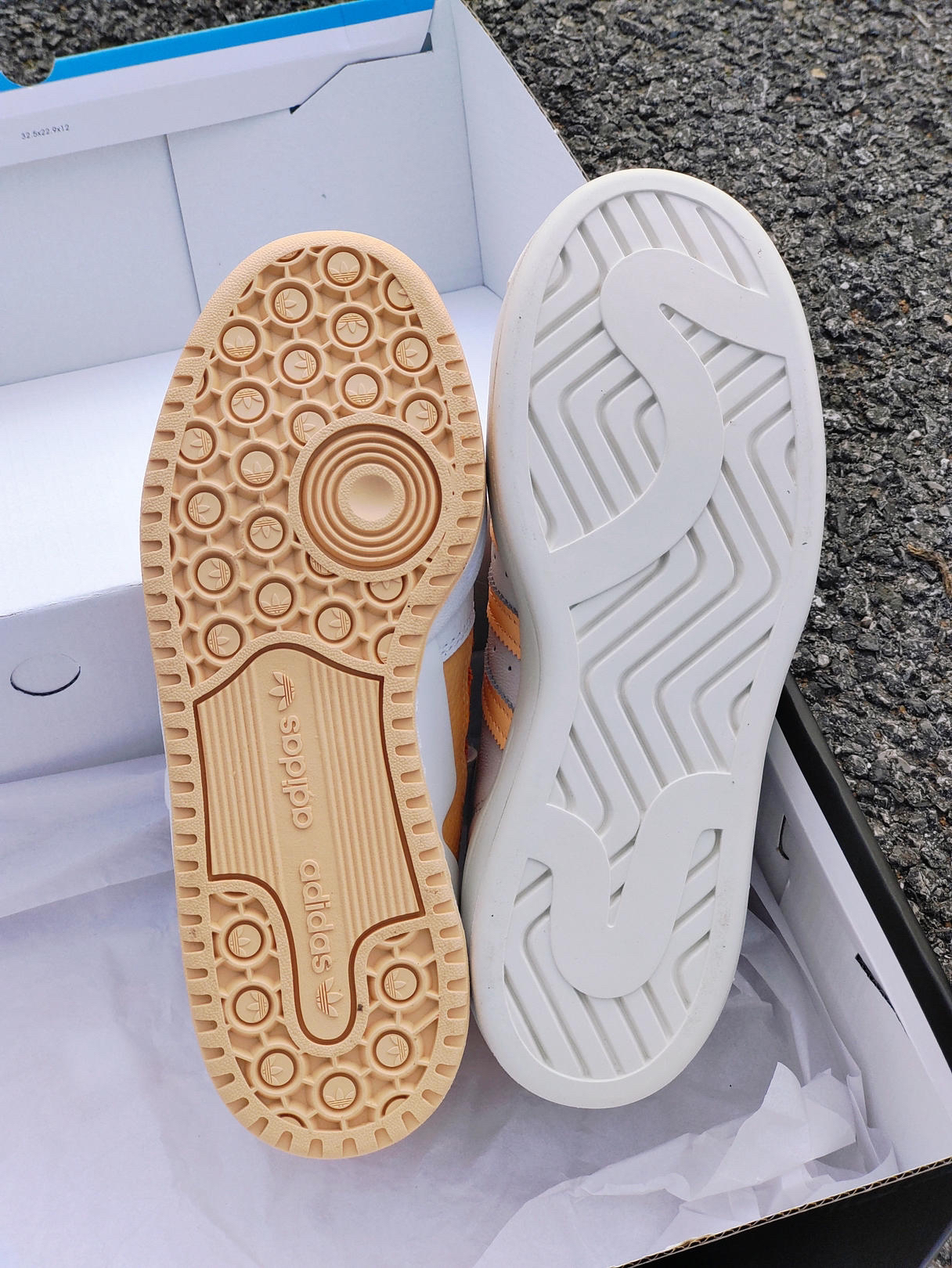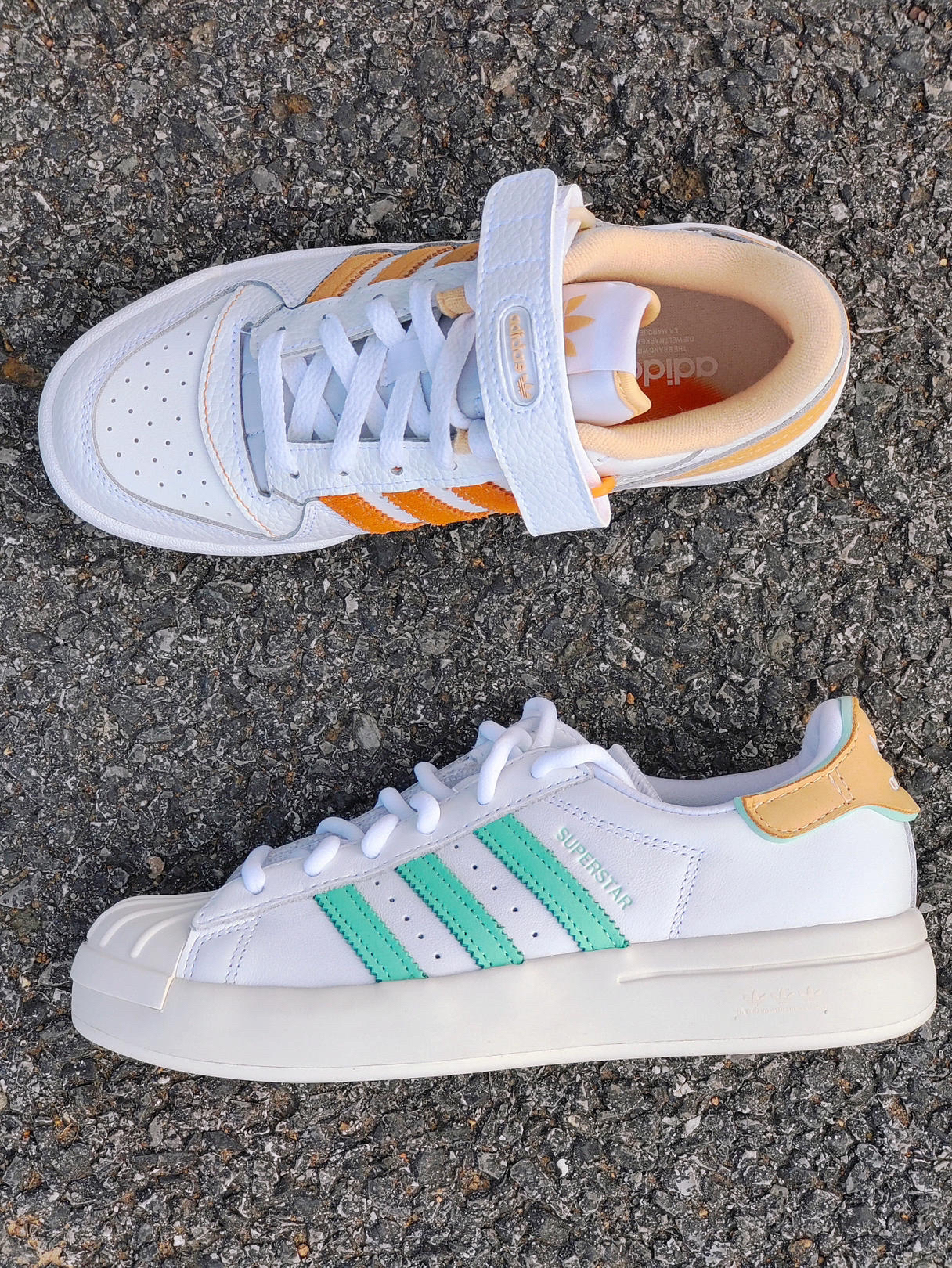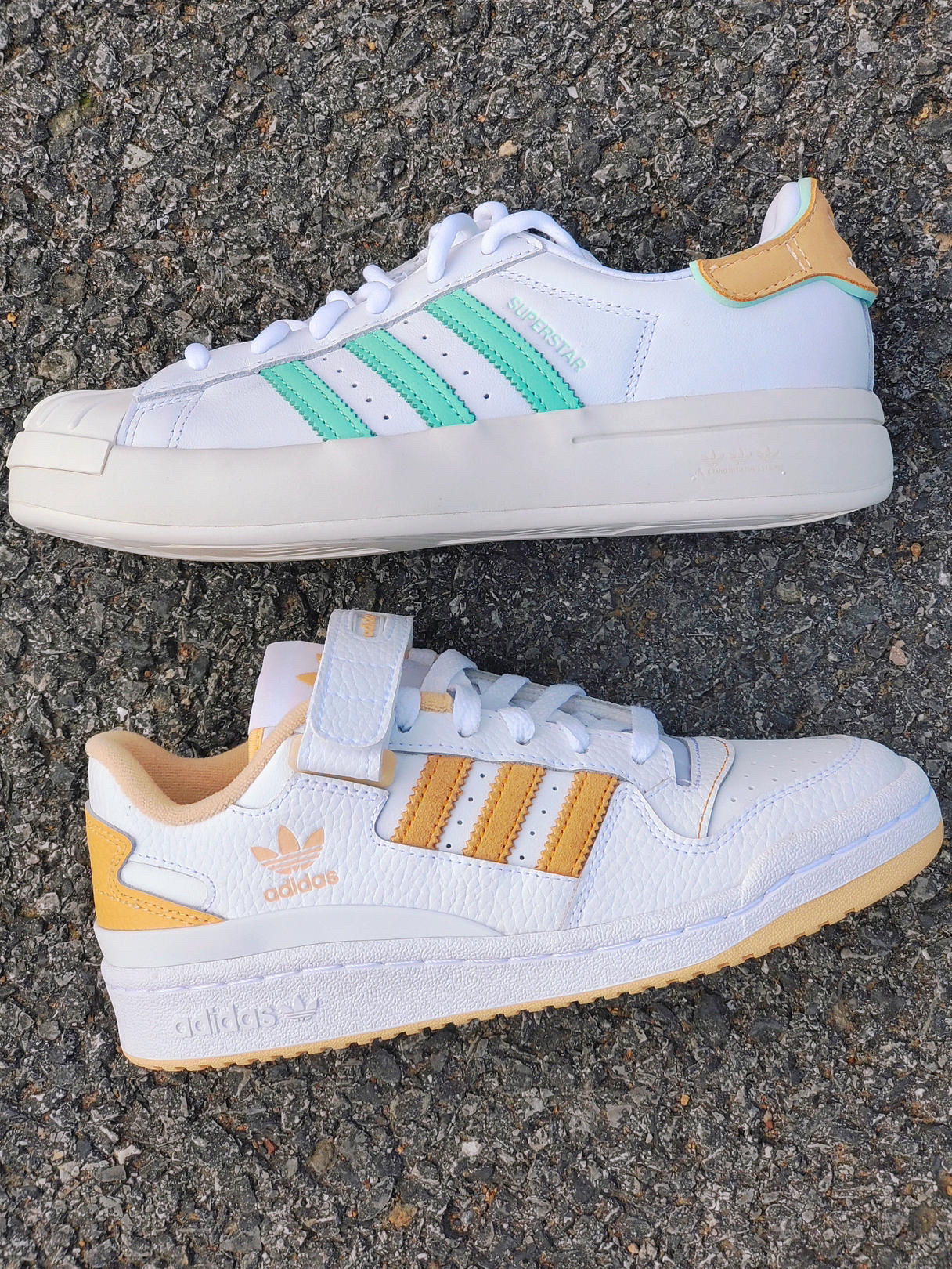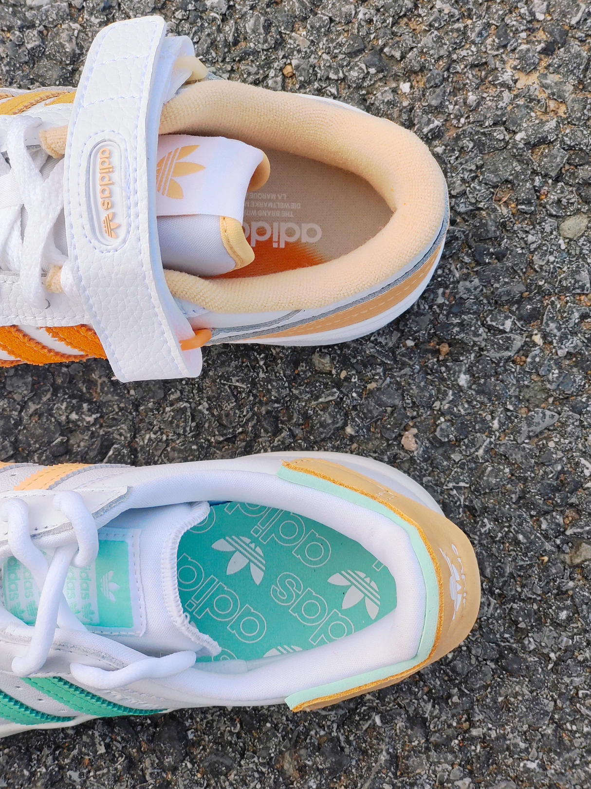 大家好呀,今天给大家介绍两双阿迪达斯的板鞋 第一双是Ayoon的鸳鸯板鞋,鞋外侧的阿迪三条杠是绿色的,鞋内侧的阿嚏三条杠是橘色的,就连鞋后跟的Logo所 在的那一块也是里层是绿色🥑的外层是橘色🍊的。这个颜色搭配还挺让人眼前一亮的,很好看哦。 第二双是Forum Low板鞋,鞋子整体是橙白🍊🥥配色的,很有春天🍀的感觉,充满活力,同样鞋外侧的三条杠Logo是橙色🍊的,鞋内侧的三条杠Lo...