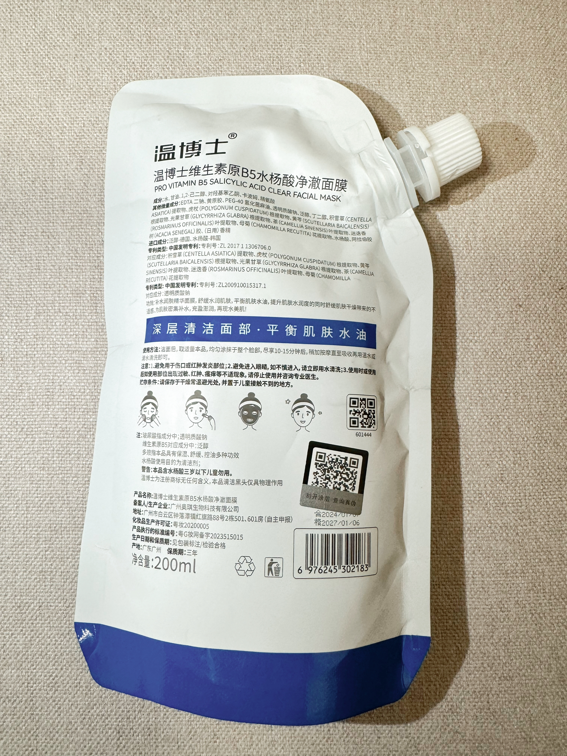 本篇笔记关联了温博士 维生素原B5水杨酸净颜面膜 去黑头闭口粉刺细腻毛孔 200ml等商品,为用户提供真实的使用体验和购买参考。