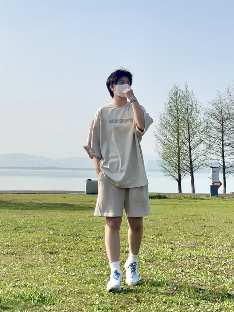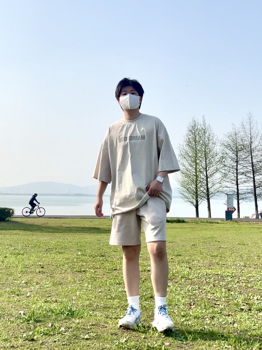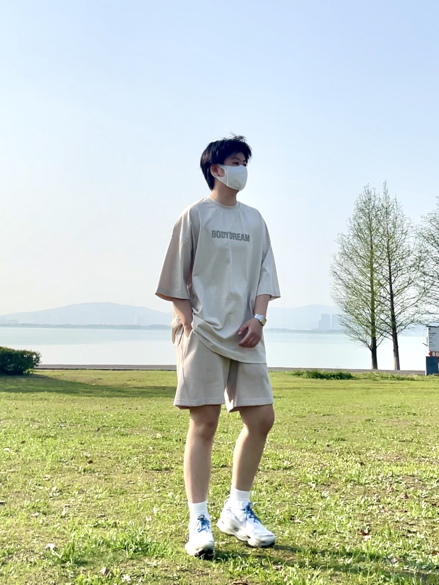 今日穿搭 米色T恤/米色短裤 bodydream nike气垫运动鞋 ————————————————— 👔夏日必备的美式风格T恤 凉感的面料让穿着的舒适度拉满 清爽舒适的米色也很适合夏天 重磅的克数让版型更加挺阔 随便穿上出门就很帅的一套look