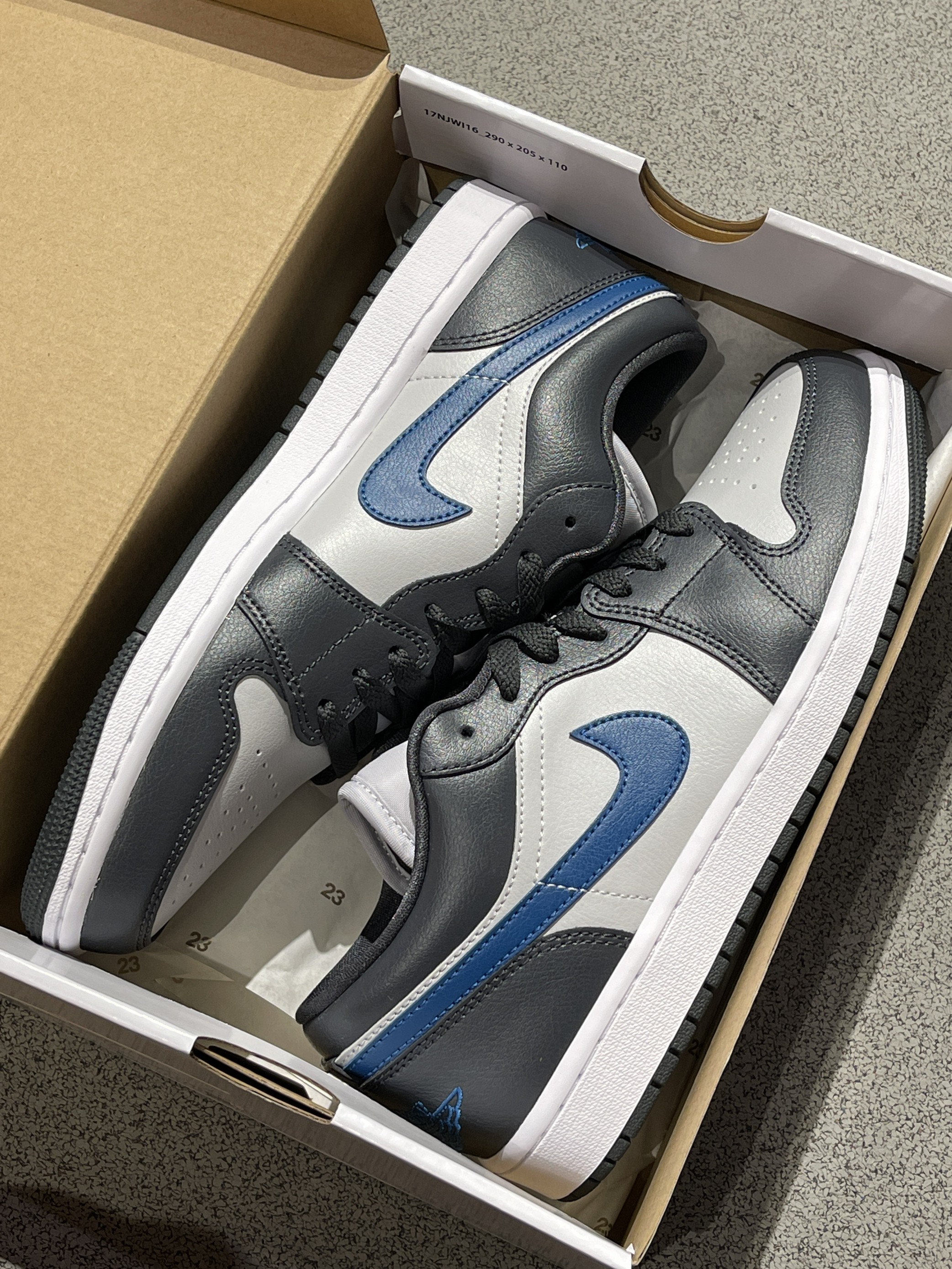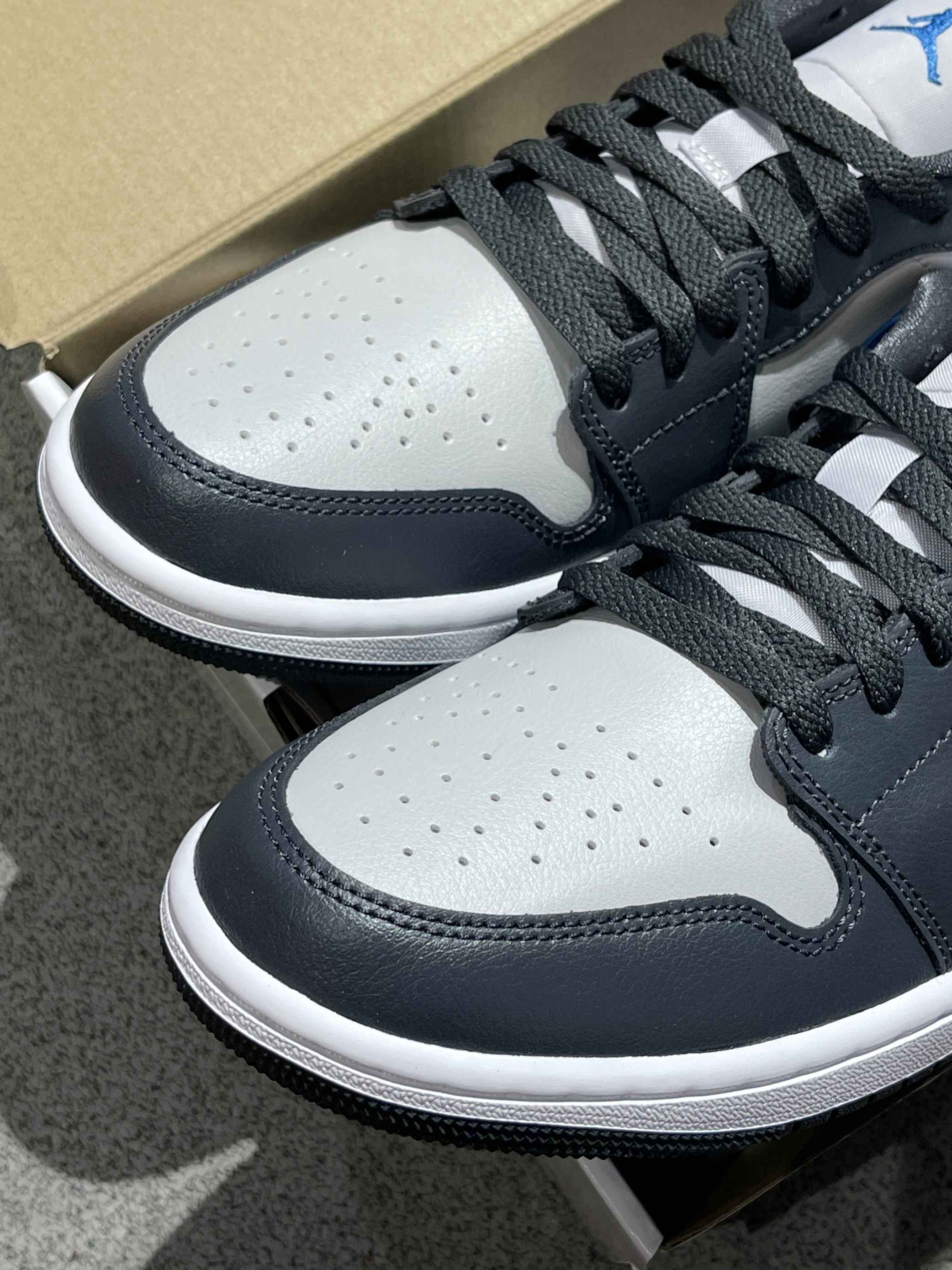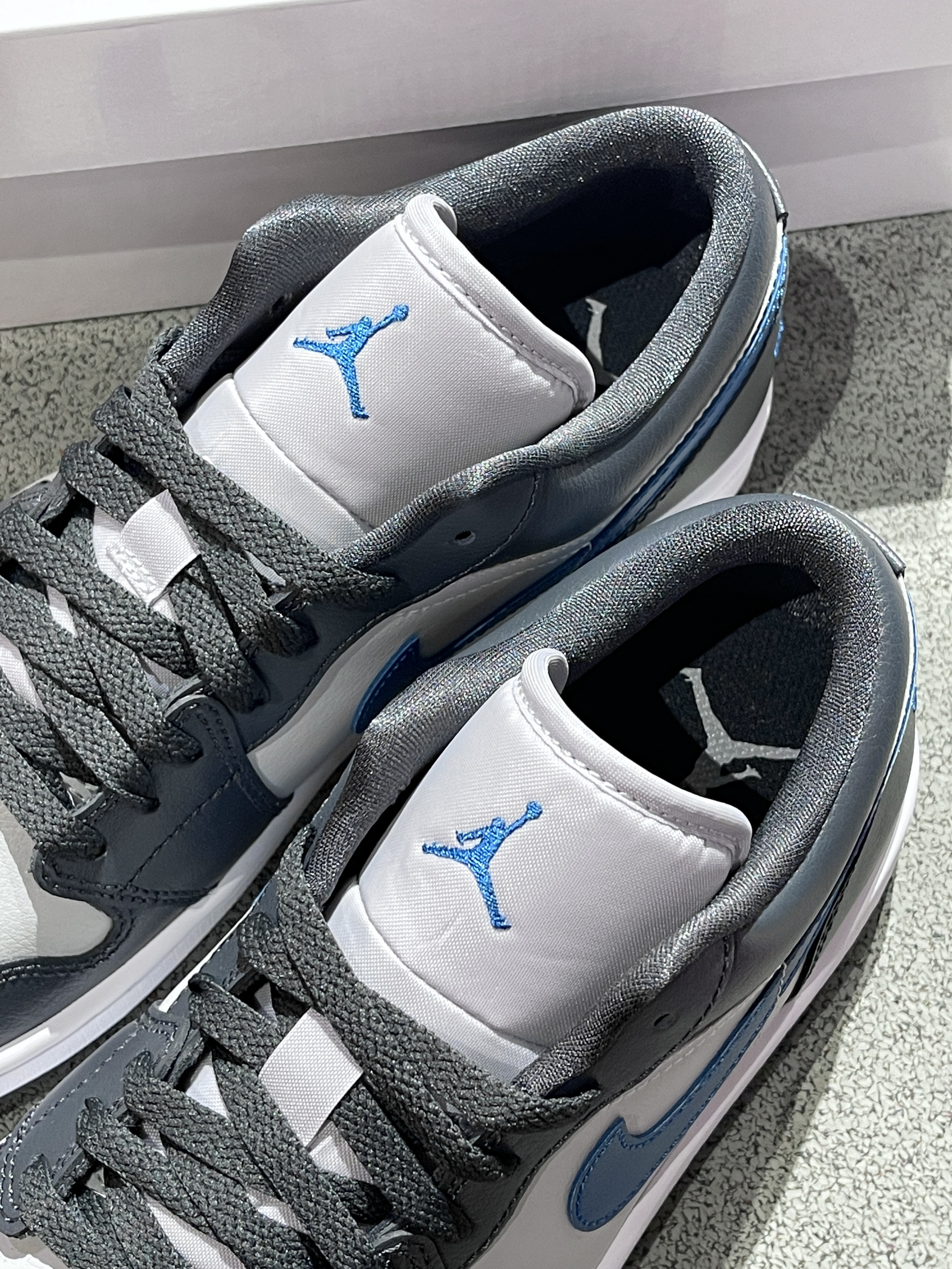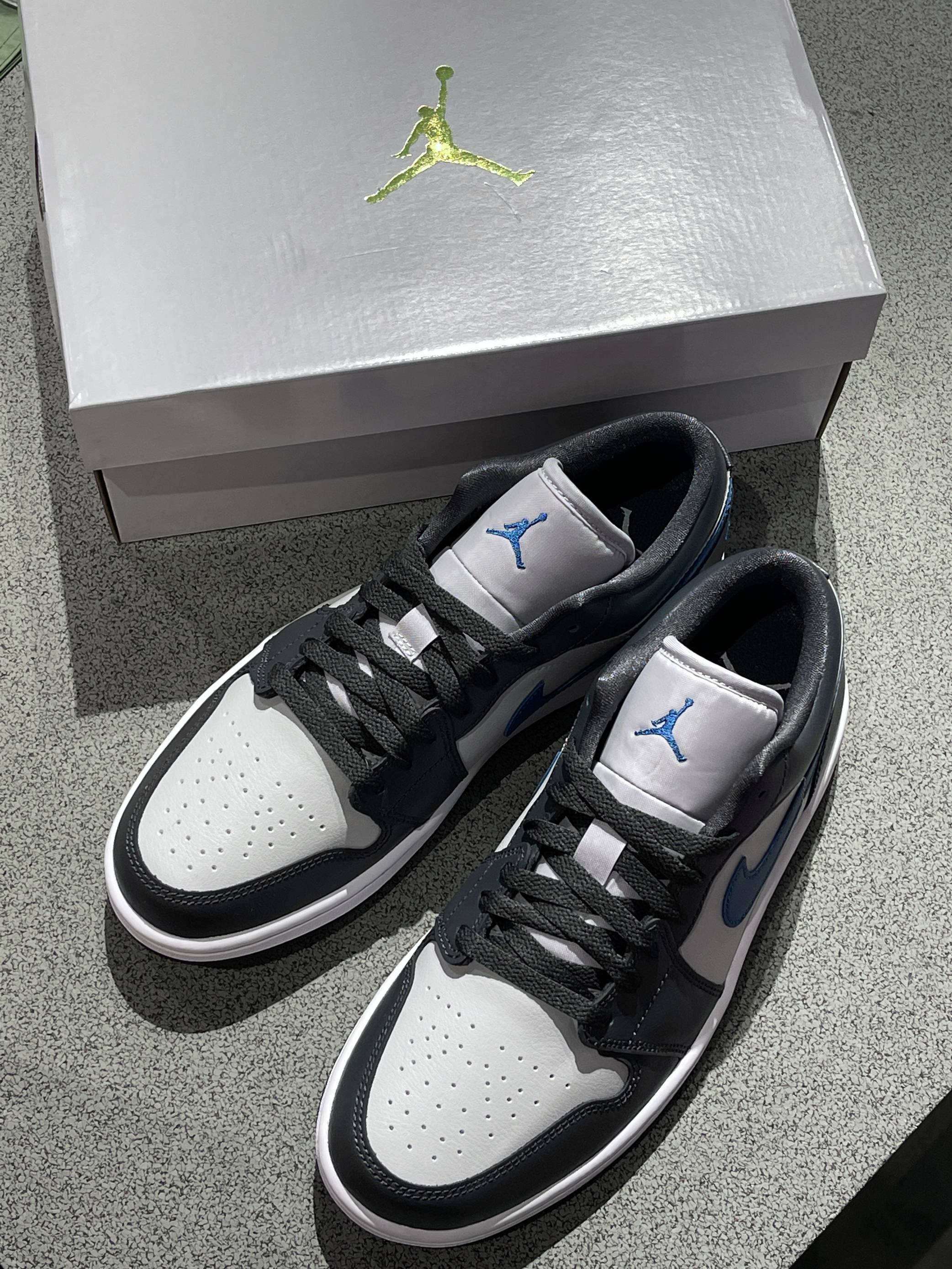 天气越来越热,选择一双低帮aj1low搭配你的踏春计划,岂不美哉~💙 Jordan|Air Jordan 1 Low 低帮复古篮球鞋“黑灰蓝”✔️,经典复古的低帮aj1low鞋型,鞋面采用黑灰蓝三种颜色进行拼接,中底Air Solo气垫加持,会有一定的脚感改善~☑️