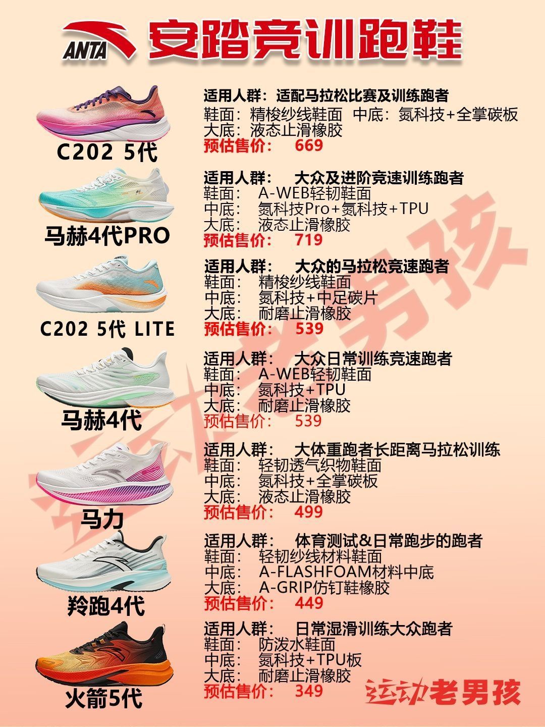 ⭐以上就是整理安踏跑鞋矩阵分享,其部分可能有误,如果大家有详细资料,可以写在在评论区,一起分享!