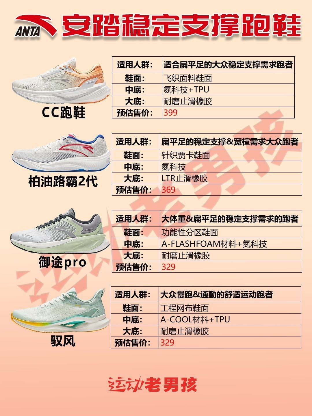 ⭐安踏跑鞋,这边大致划分几个分类,这样归类可以方便跑者们简单而又清晰的对比和选择