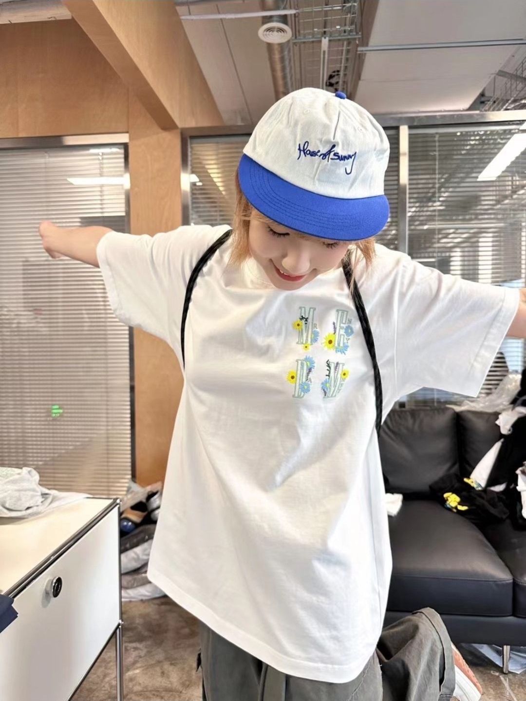 😽😽MEDM 小雏菊四字logo创意纯色透气刺绣短袖T恤 👏👏身高:173cm 体重:47kg 参考尺码:2码 T恤+长裤的搭配我永远会爱!!! 穿上秒变纸片人🤲🤲 宽松的版型对身材的包容性比较大 前的人物印花真的超酷 很适合去拍照😽😽😽😽