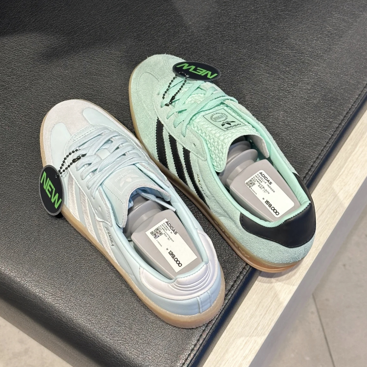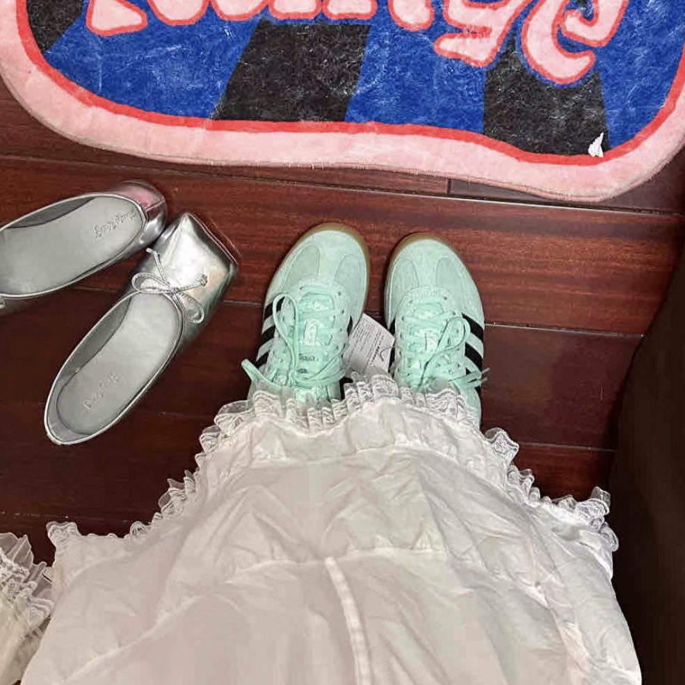 薄荷蓝的配色跟春、夏绝配了 介于蓝绿之间很清新🩵🩵 两双都很深的人心 春夏清新鞋款 超级好看的阿迪达斯德训鞋