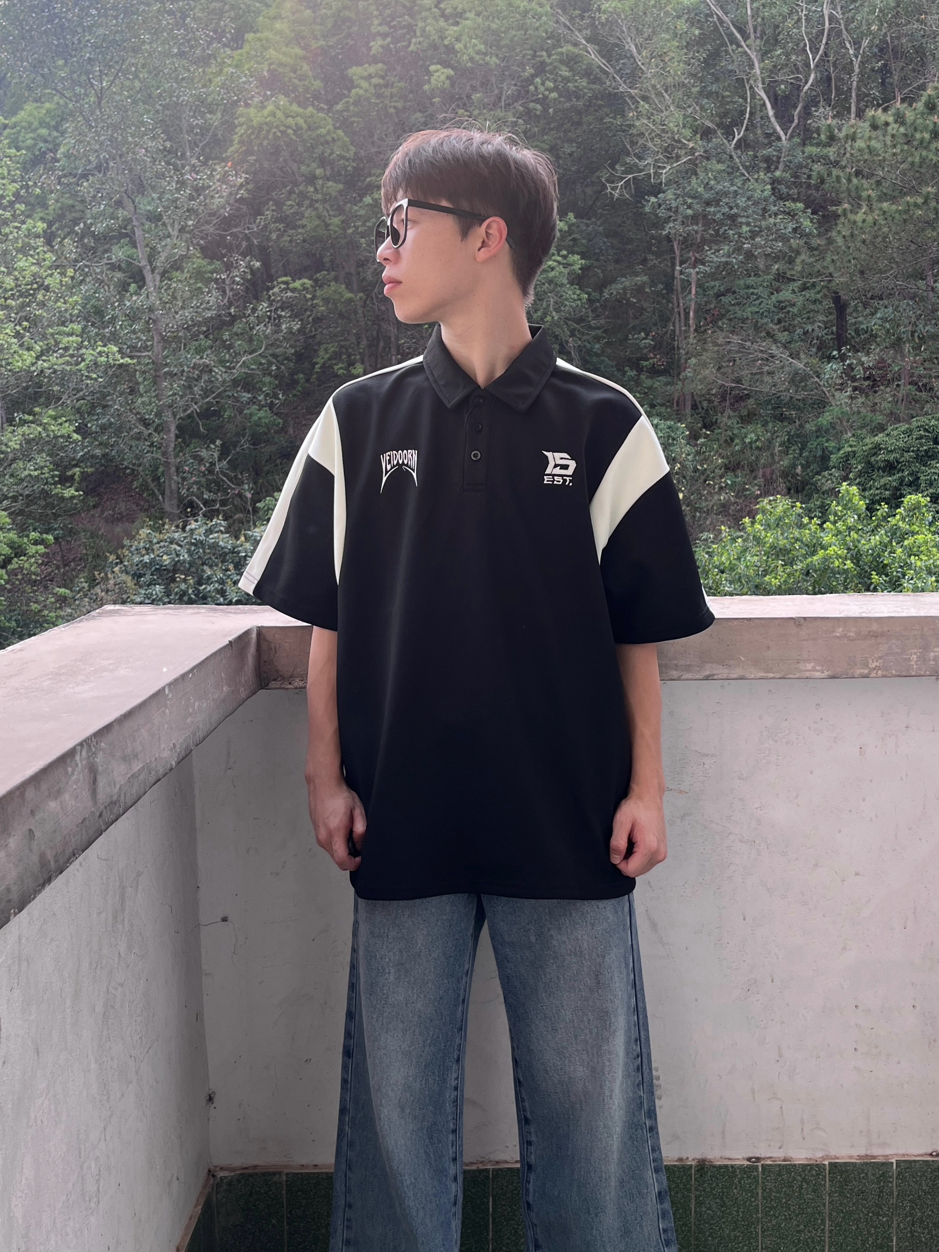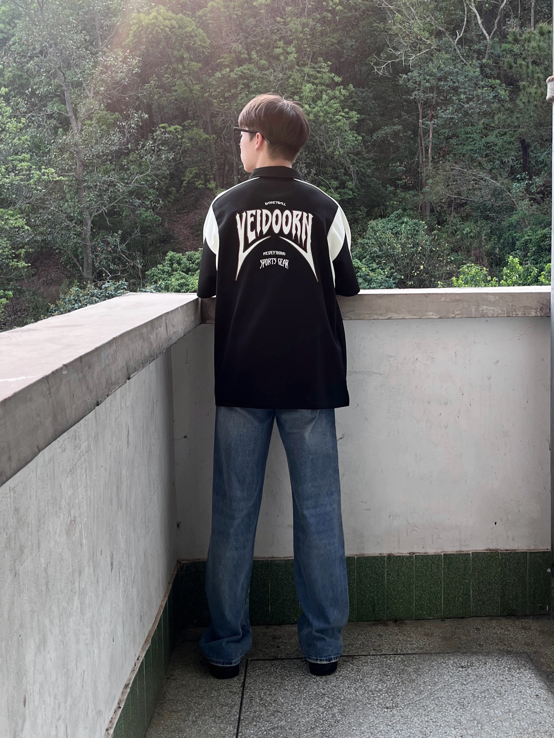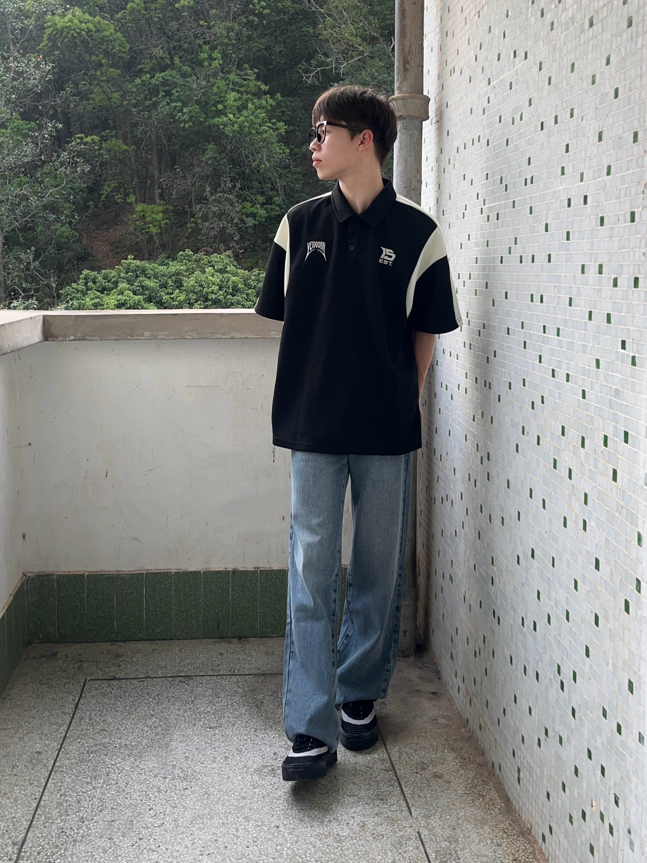 春日出走穿搭分享look👀 衣服是 维动 VEIDOORN 的极夜黑配色休闲polo衫 颜值简约时尚 背后的字母印花设计潮酷风十足 搭配上一条蓝色水洗风牛仔裤修饰腿型 版型直筒又显瘦 最后黑色飞织板鞋点缀 一套下来 春日出走轻松驾驭美式风