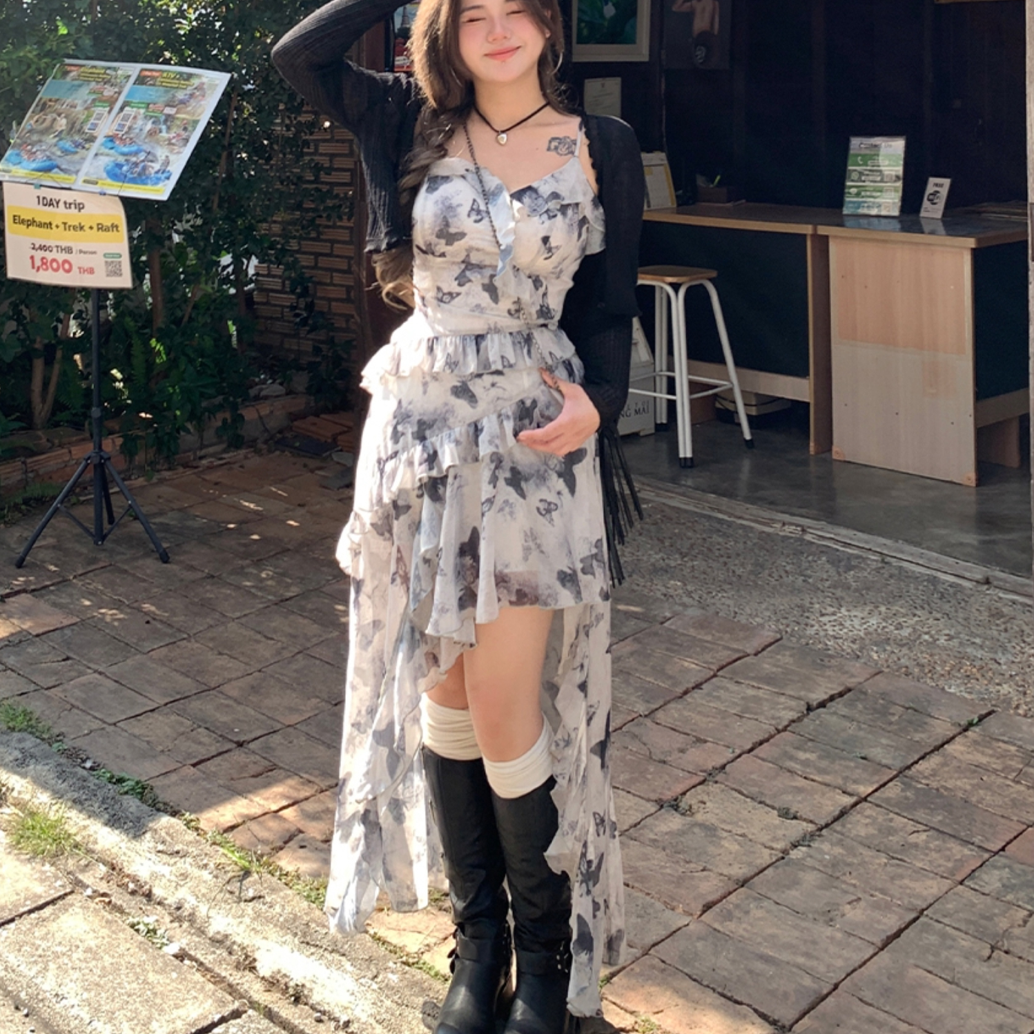 🌈一眼被惊艳到的吊带连衣裙 蝴蝶🦋碎花好好看呀~法式复古感十足 🌈版型收腰设计的 穿起来显瘦显比例 下摆不规则设计 上身很显瘦显高 小个子高个子都很合适 日常约会或者去度假穿都很合适滴 🌈绝了!!一定要试试这条吊带裙 回头率好高! (图片来自博主:洋**渔)