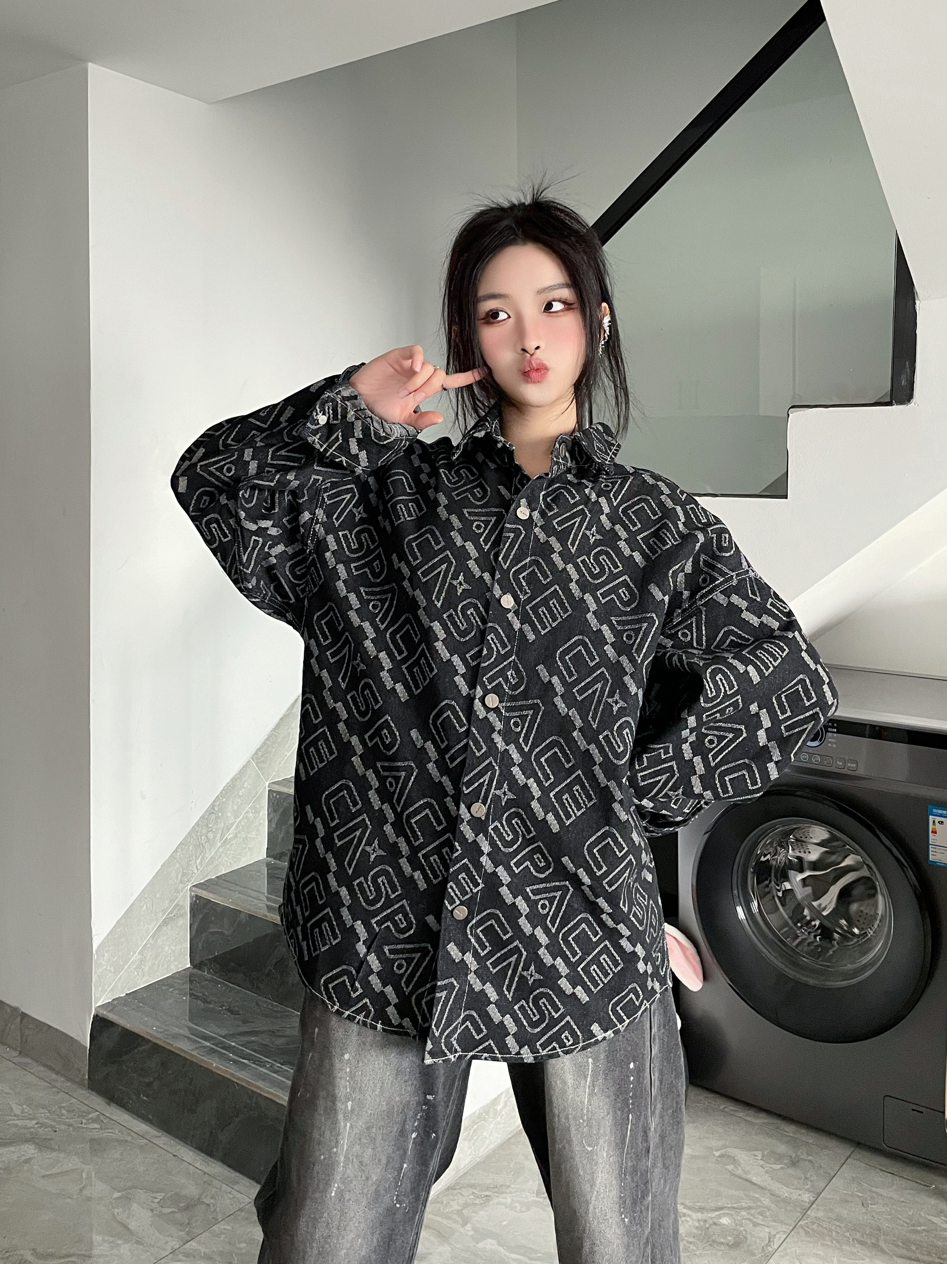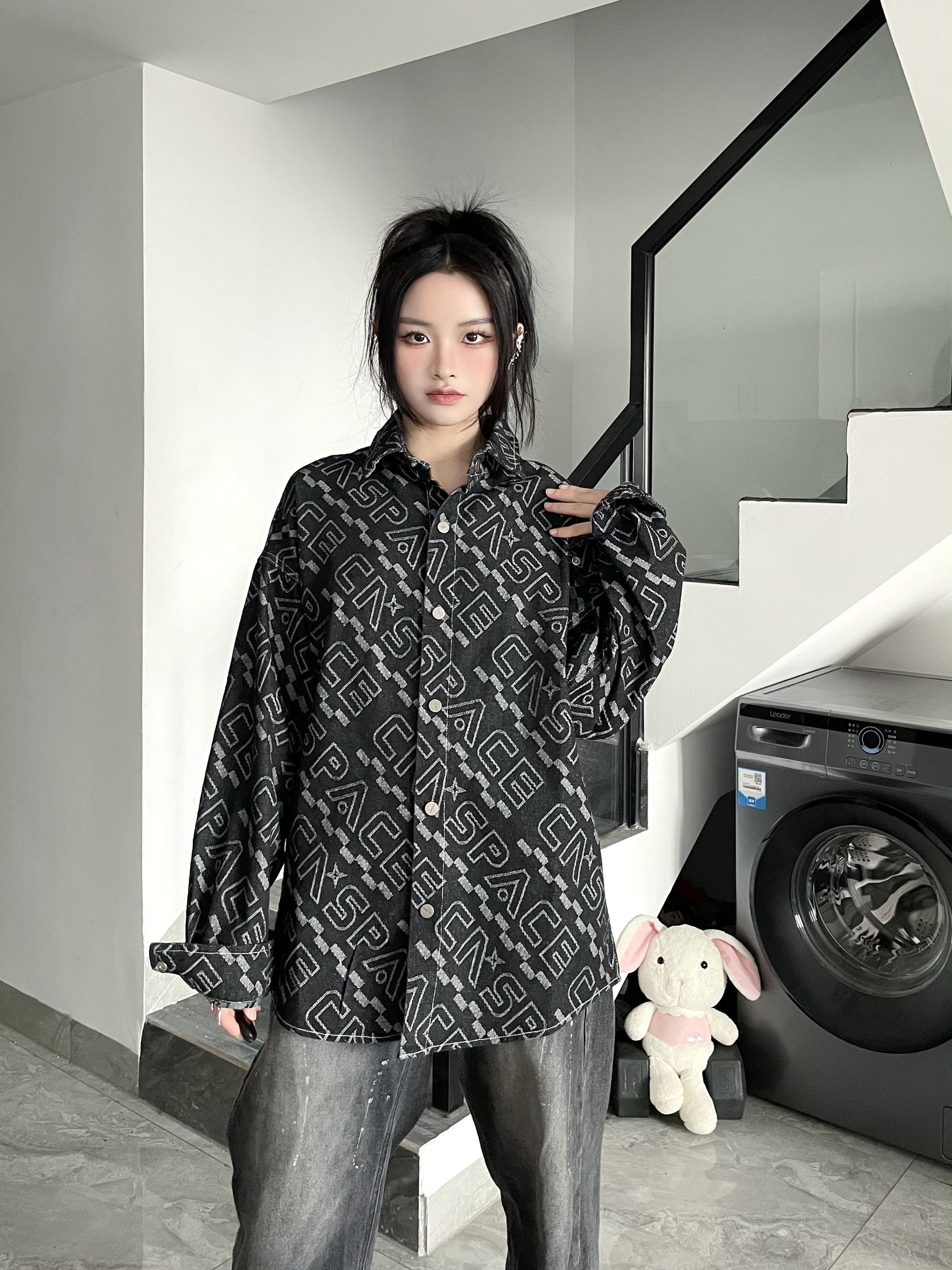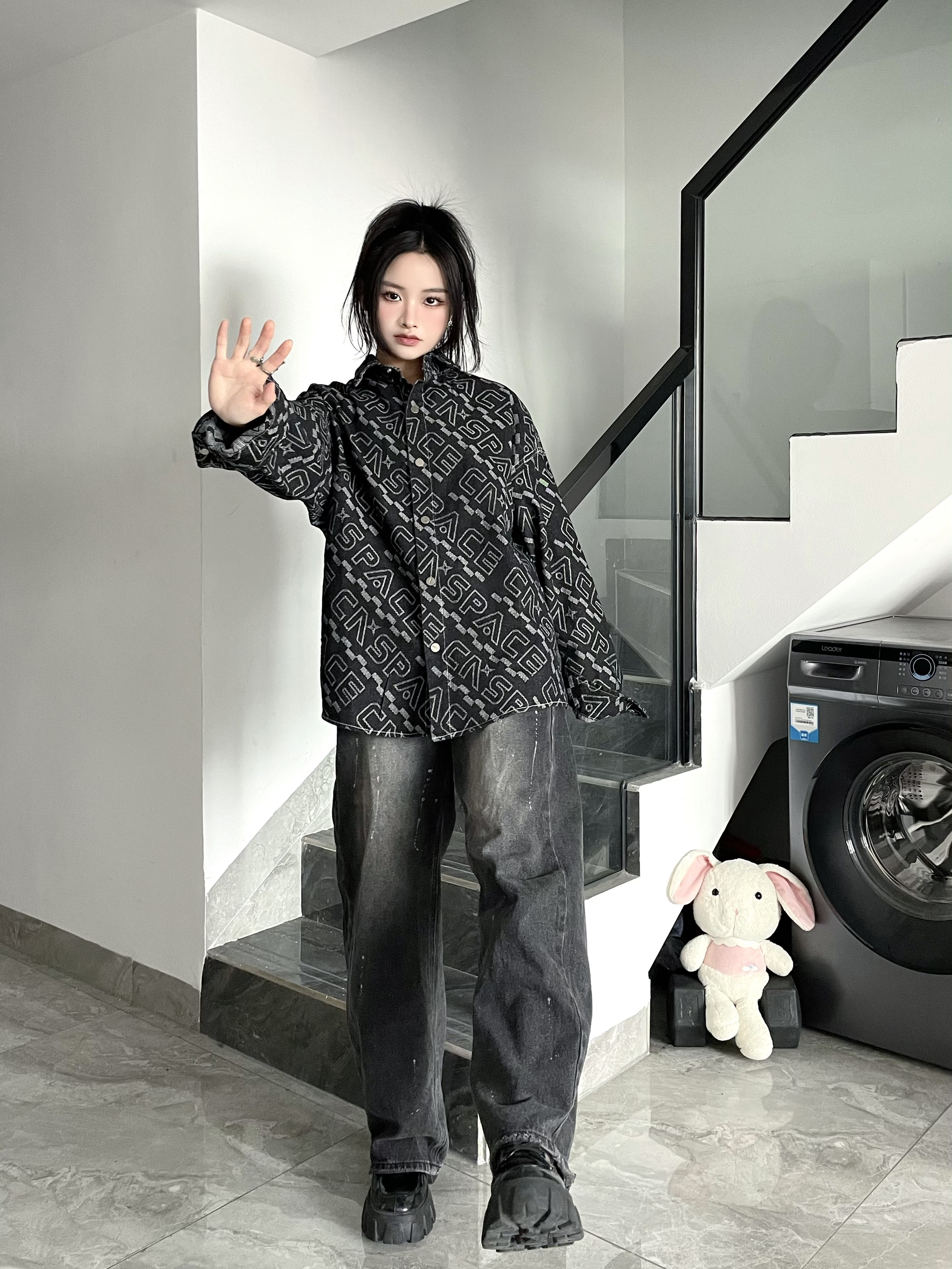 Hello这里是身高162cm体重48kg的七秒😍 👔中国航天 👖DangerousPeople👟达芙妮 穿搭思路∶ 一套休闲潮酷感穿搭🤞🏻,满印开衫➕泼墨牛仔慵懒感在线😇,再来一双漆皮厚底增高🤓,扎个高马尾很显个子的一套! 亮点是这件满印logo衬衫!微茧型版型很遮肚子肉肉哟~下摆是有点波浪形的设计细节拉满☺️,潮酷girl出街噜!