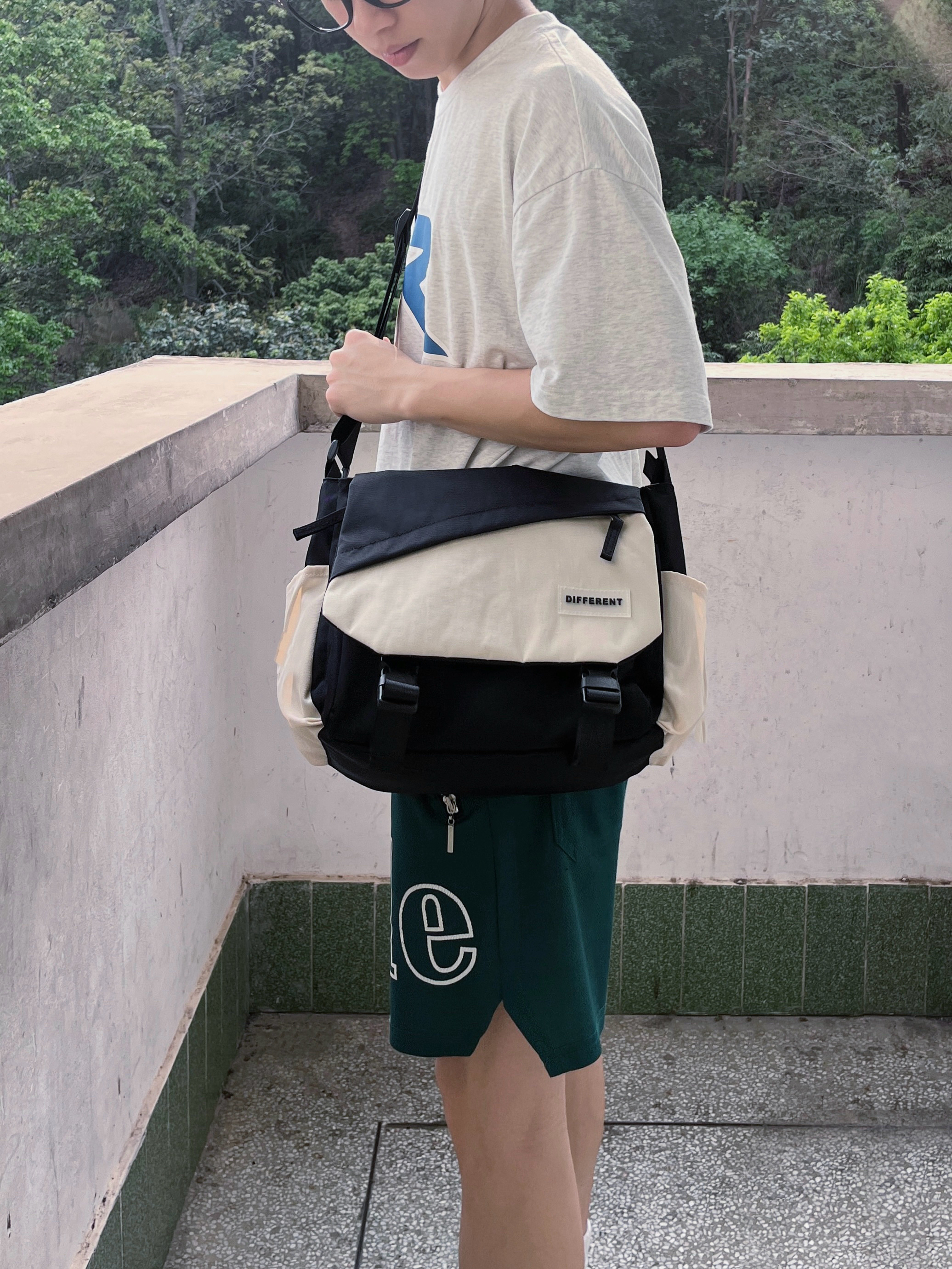 今天分享一款 森马 家的超百搭斜挎包 包身整体的黑白拼接配色显得颜值很高 采用尼龙材质 摸起来质感很棒 内部容量也很大 无论是日常通勤还是户外出行都可以背
