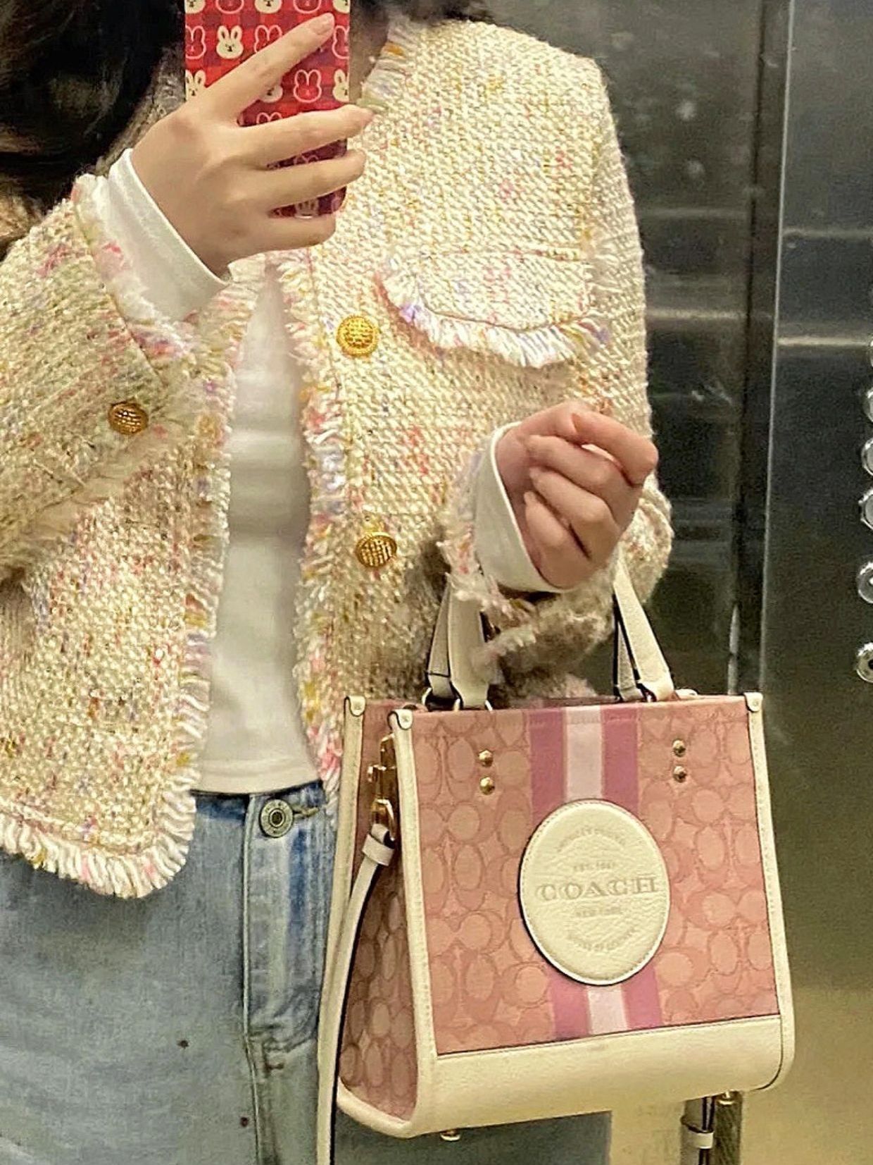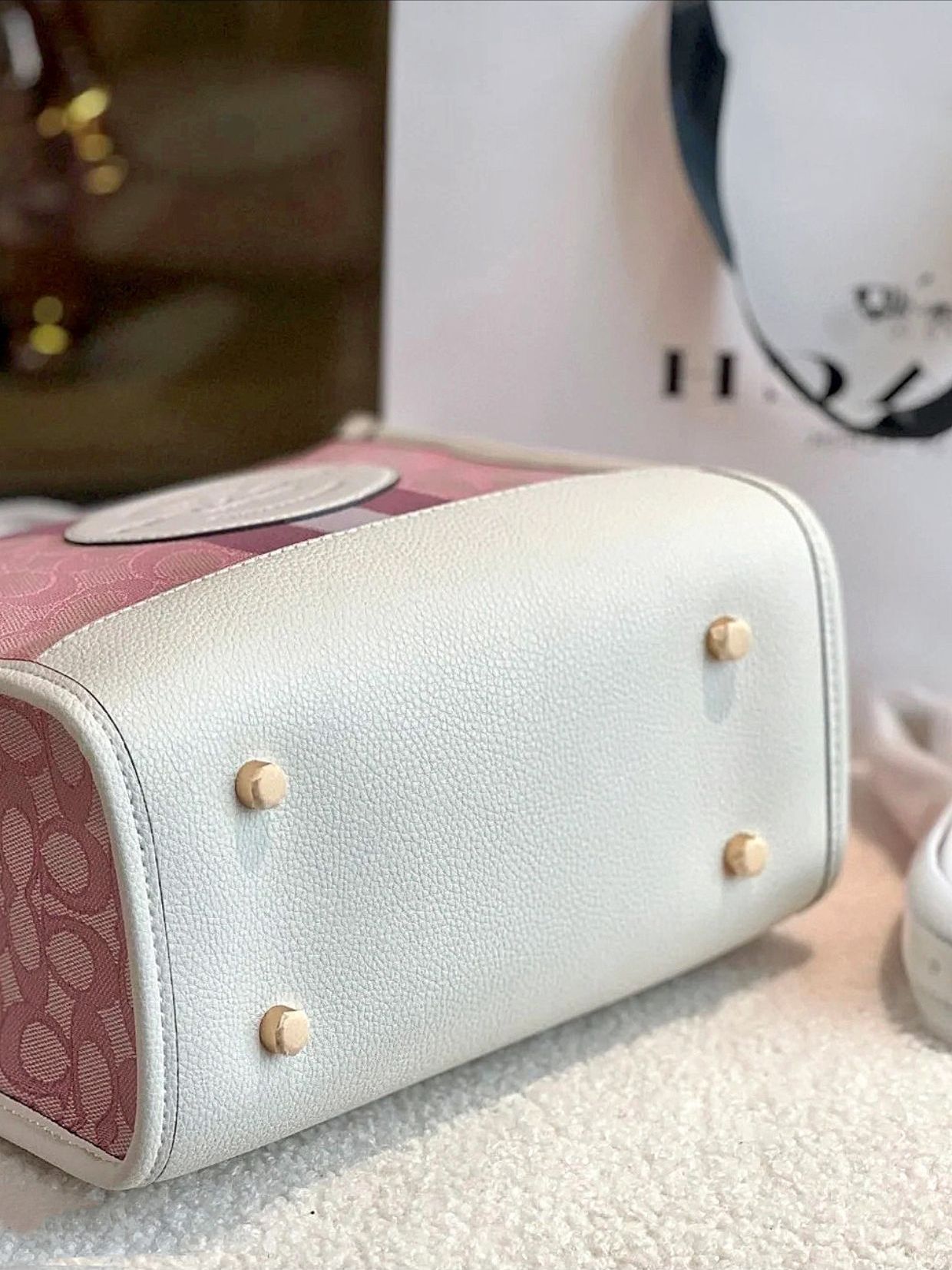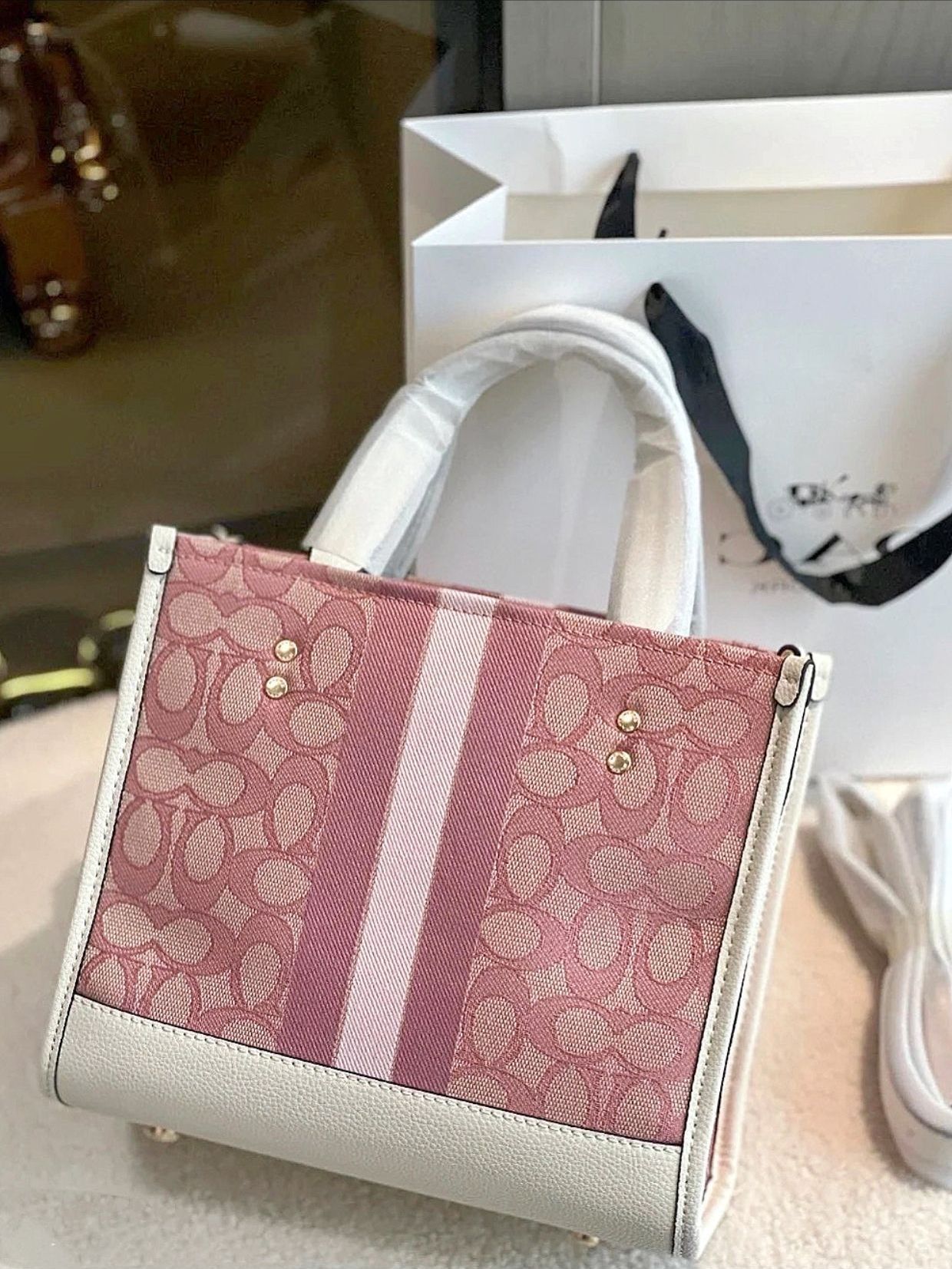 本篇笔记关联了【情人节限定】Coach Dempsey 30 大号 鹅卵石纹老花精致织物托特包单肩斜挎手提包 樱花粉色等商品,为用户提供真实的使用体验和购买参考。