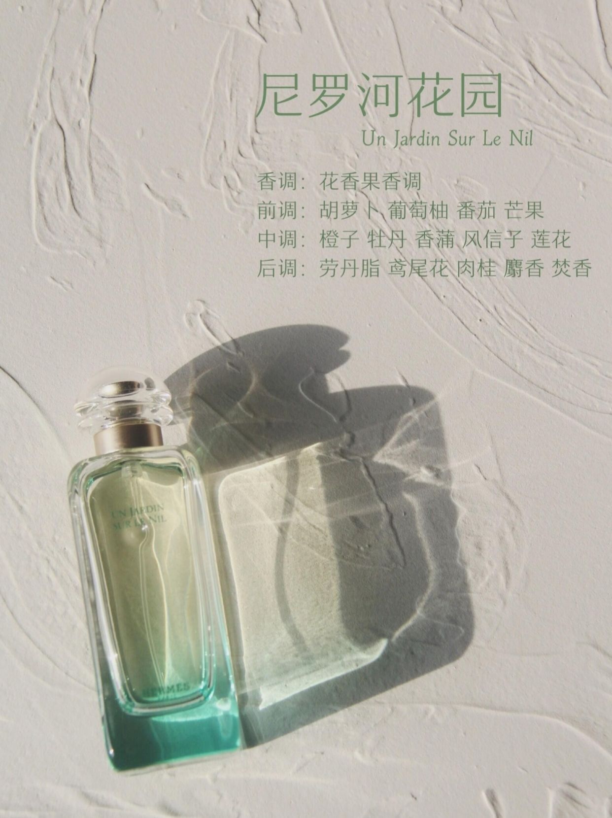 能把商业香做出沙龙品质的香水品牌, 在我心里有两个, 一个是爱马仕Hermes, 一个是希思黎Sisley。 不知道爱马仕家的花园系列是多少人的入门香,反正对我而言是这样。 爱马仕花园系列全线6款,除2019年的新款泻湖花园出自Christine Nagel之手,其余5款皆来自 传奇调香师Jean-Claude Ellena,简称JCE。以下顺序即我心中排名。 . 🔳尼罗河花园 前调:胡萝卜 葡萄...