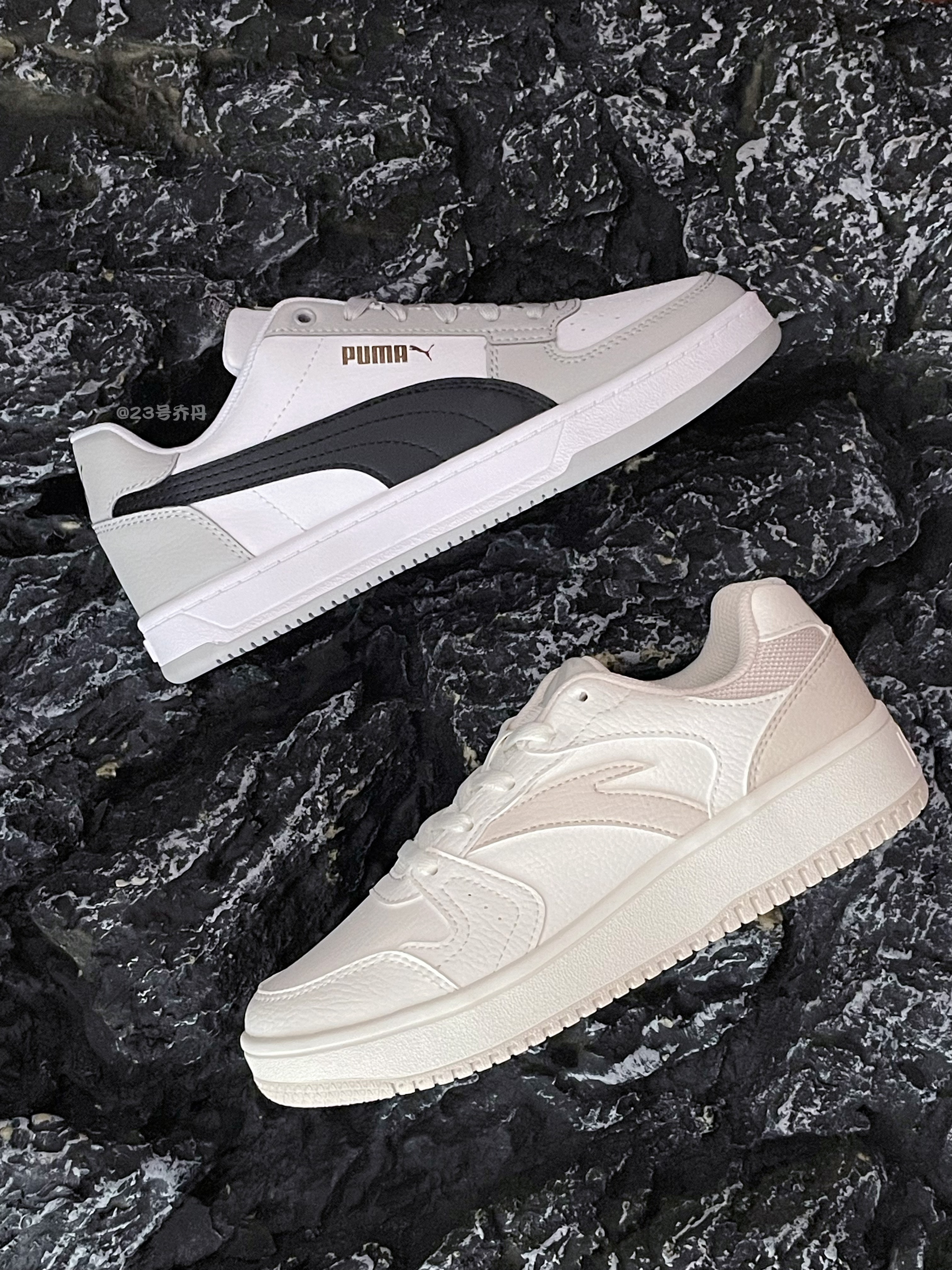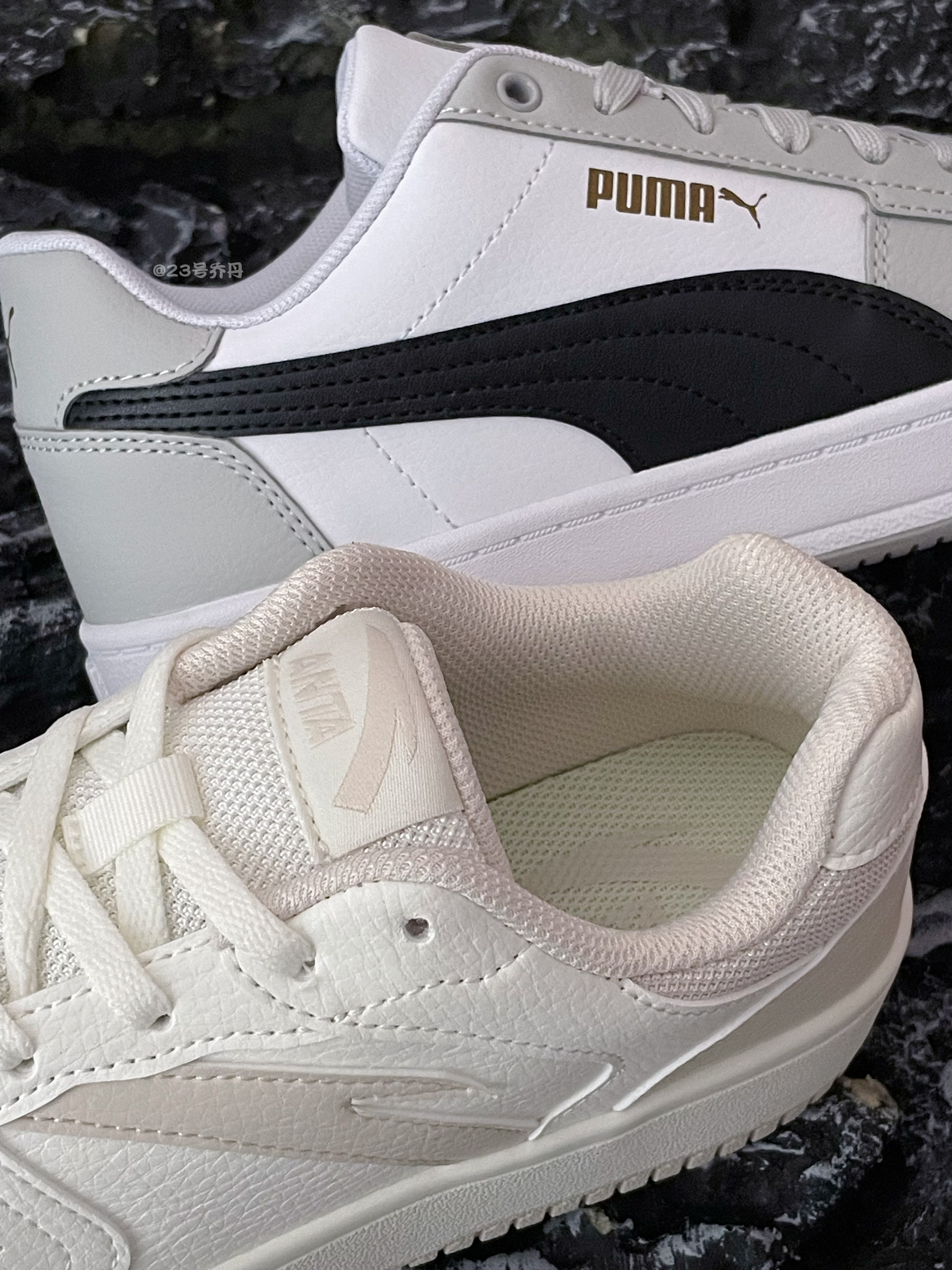 今天给大家分享两双颜值和性价比都不错的 Anta安踏&Puma彪马『白灰』小板鞋👟 鞋款分别由米白/浅灰和白色/灰色/黑色搭配 鞋面选用了质感到位易于打理的荔枝纹路皮革 鞋头的透气孔设计保证了一定的透气性 鞋舌/鞋垫/鞋尾等均呈现有品牌Logo图案 中底部分3️⃣公分的增高可以有效修饰腿型 最后由浅灰和灰色的多纹路橡胶底收尾 整体来说这是两双颜值挺不错的小板鞋👟 简约高级 百搭耐看 适合春夏日常休...