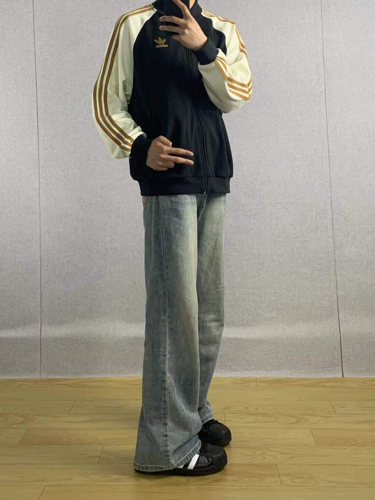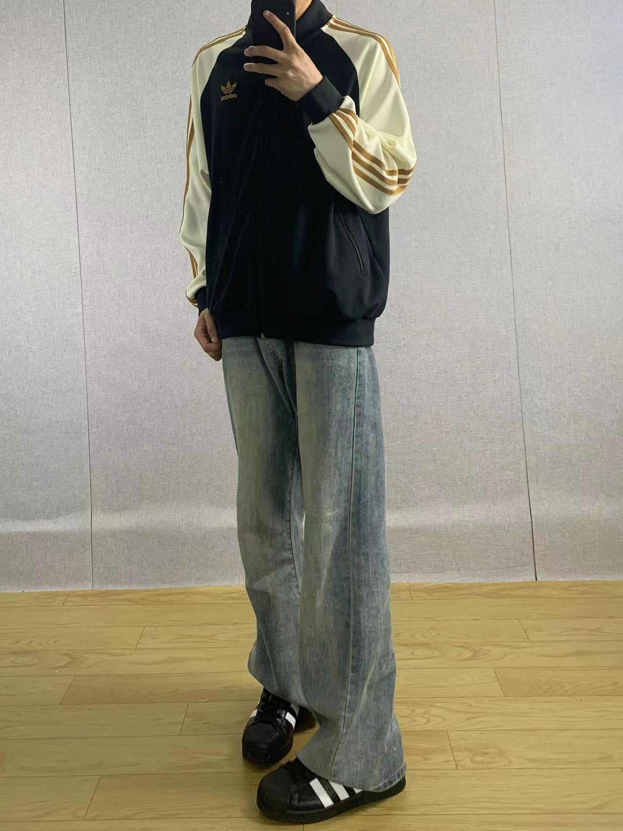 其实这样穿搭我也是随便搭配的 看着挺好看的 衣服普普通通 裤子的话可以看见还是有那么一点小帅的