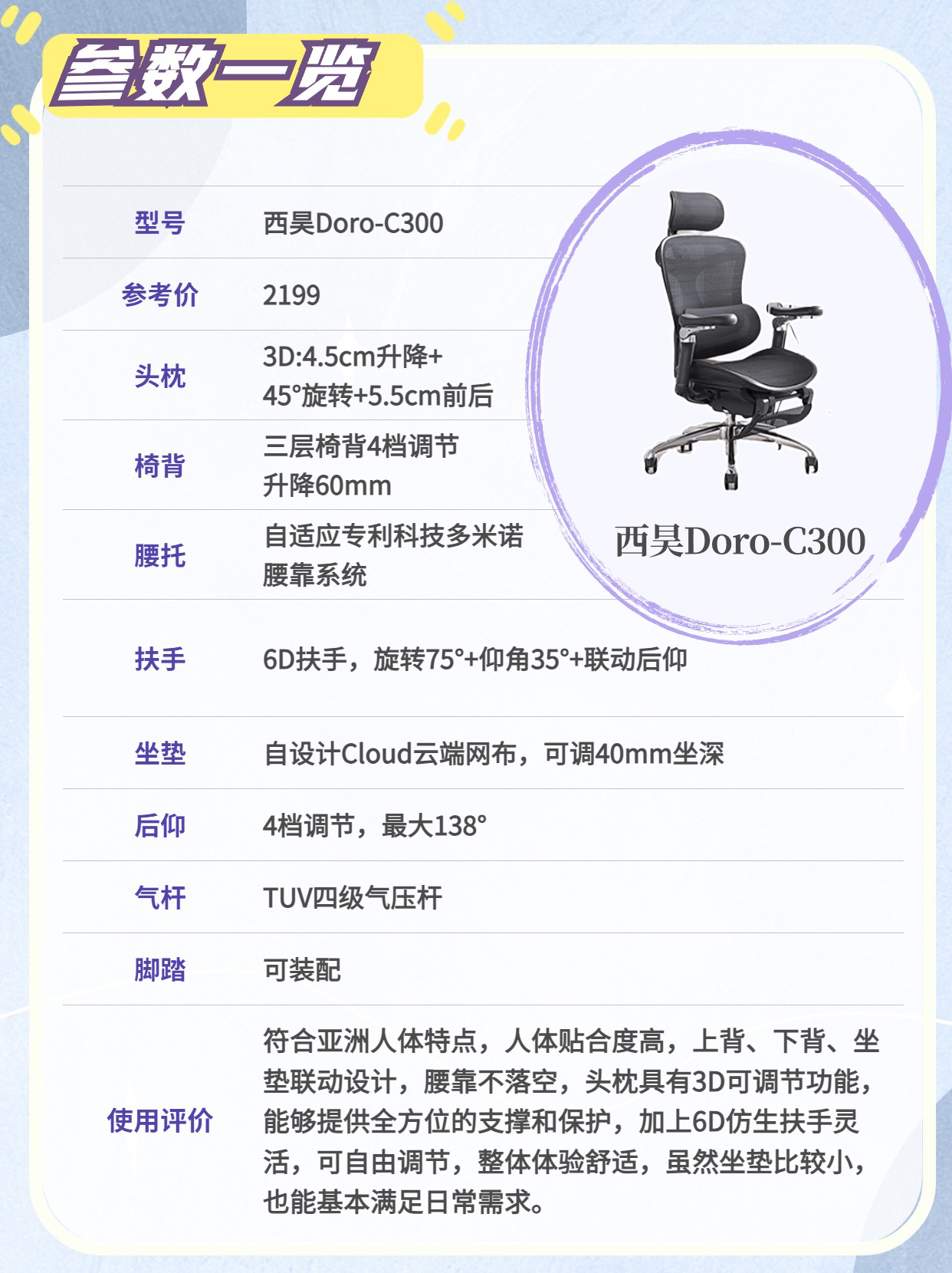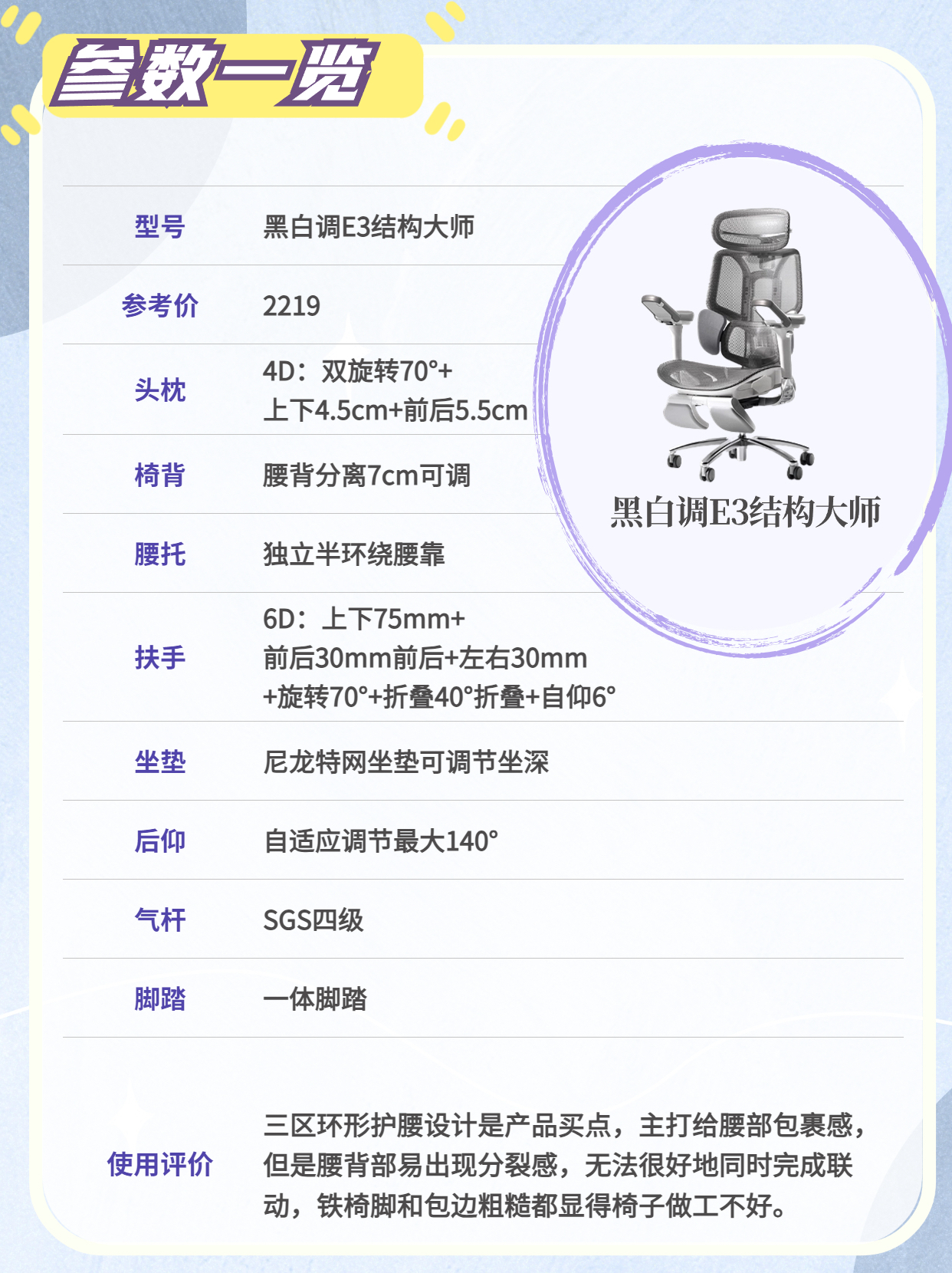 本篇笔记关联了SIHOO/西昊 Doro 人体工学椅 C300 久坐撑腰可躺书房 白色/6D扶手/网布坐垫/无脚踏、Hbada/黑白调 E3 Air 人体工学椅 84863 久坐无脚托 耀黑/4D扶手/特网坐垫/无脚踏等商品,为用户提供真实的使用体验和购买参考。