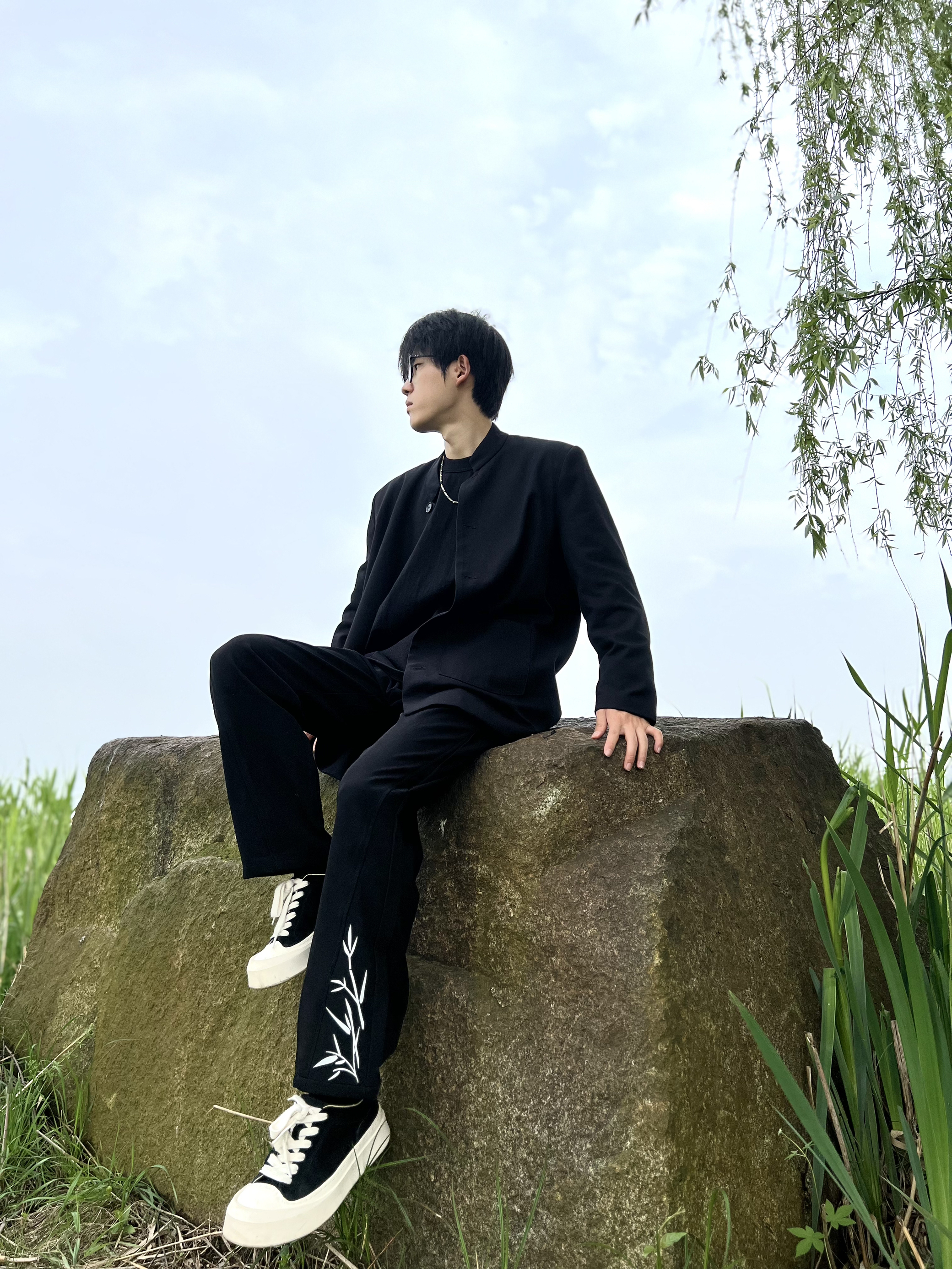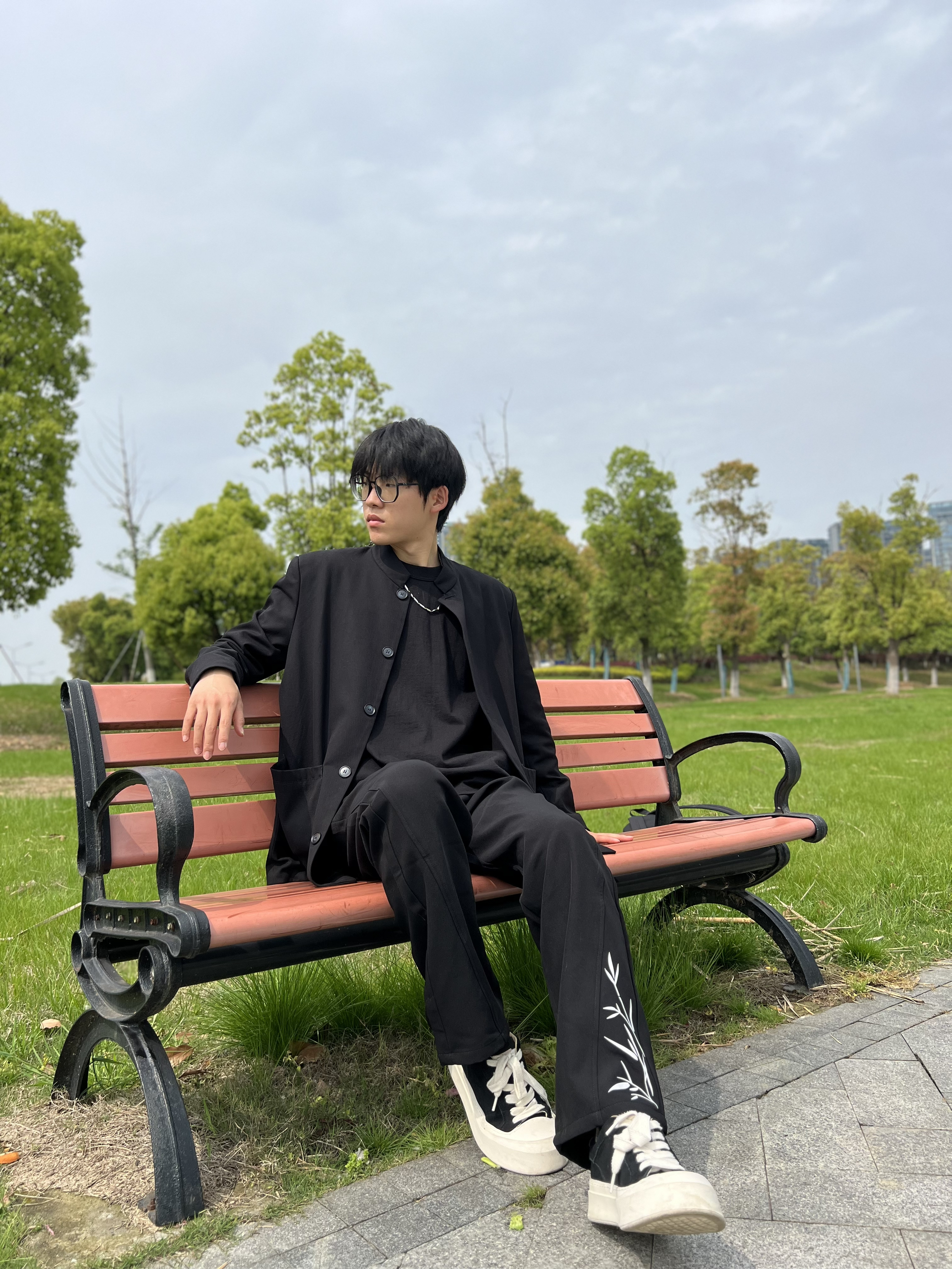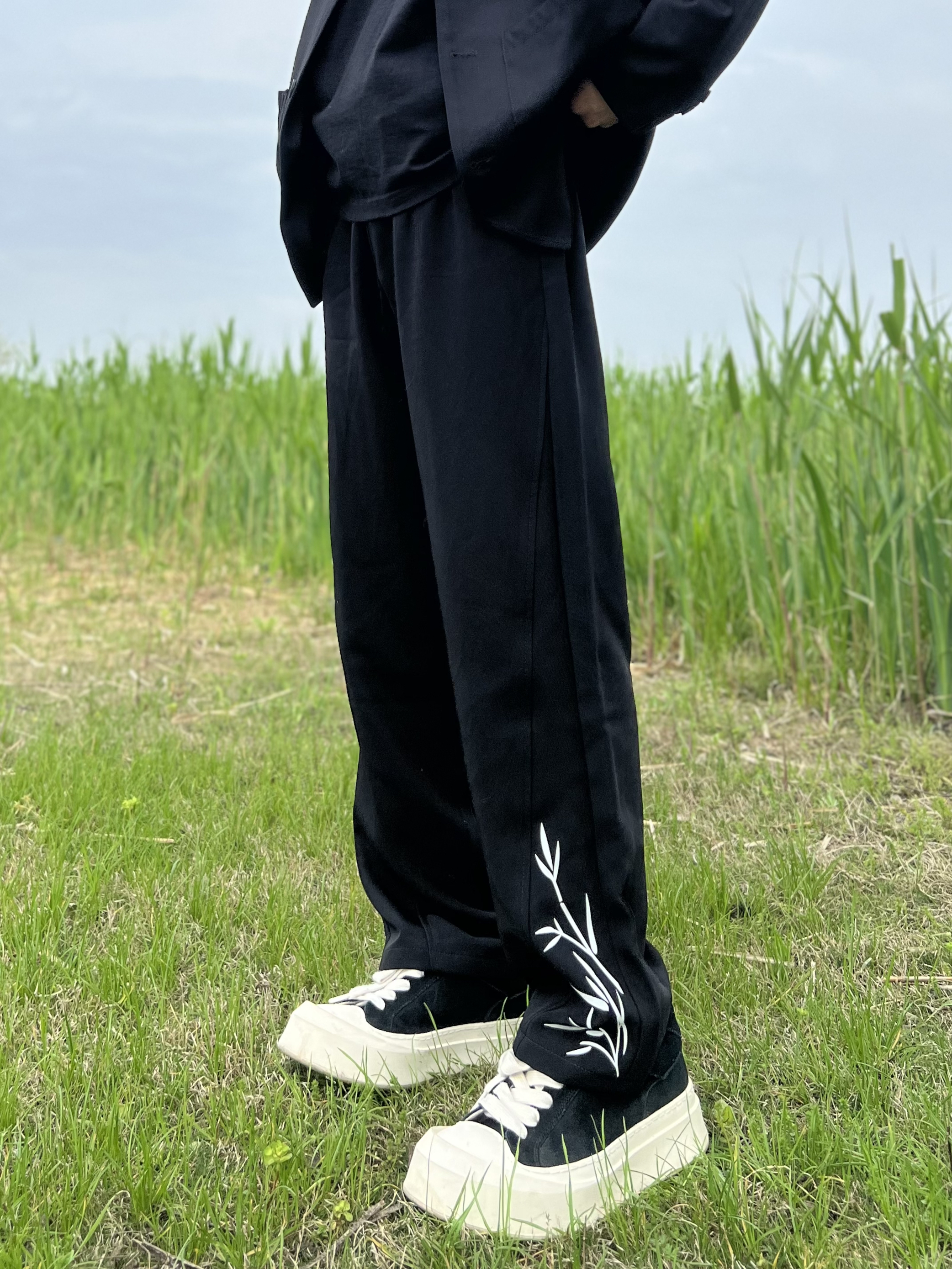 春意盎然🌱去户外散散步 搭配了一身新中式风格 休闲又板正上身效果帅到我了 - 西裤上的竹子印花是个小亮点 给整体增加了些点缀不单调~ 垂感也不错 穿着比较舒服 搭配双黑白板鞋就🆗啦 春日出游选择新中式搭配帅帅! - 🙋:178 120 衣服L 有问题评论区留言哦