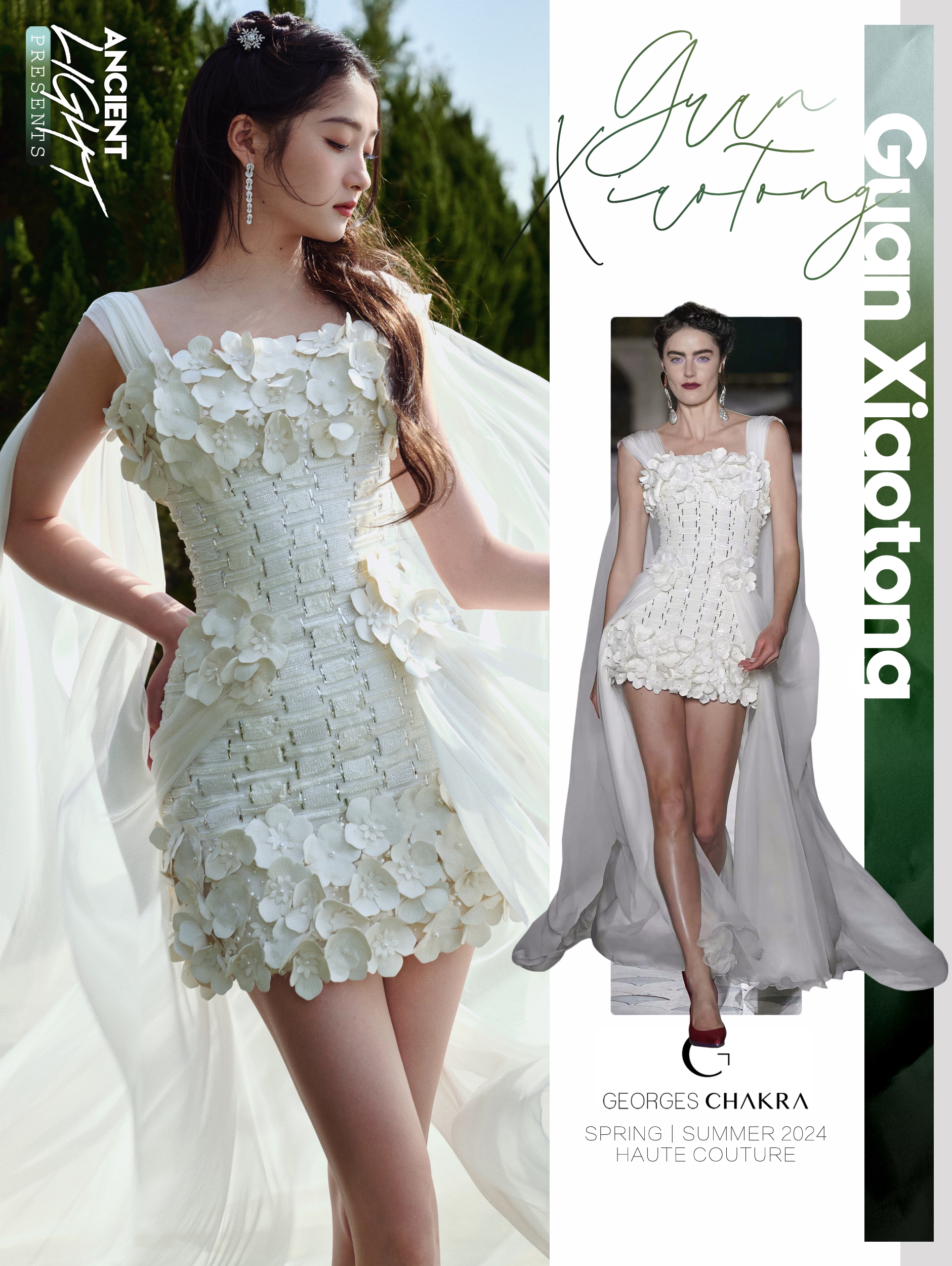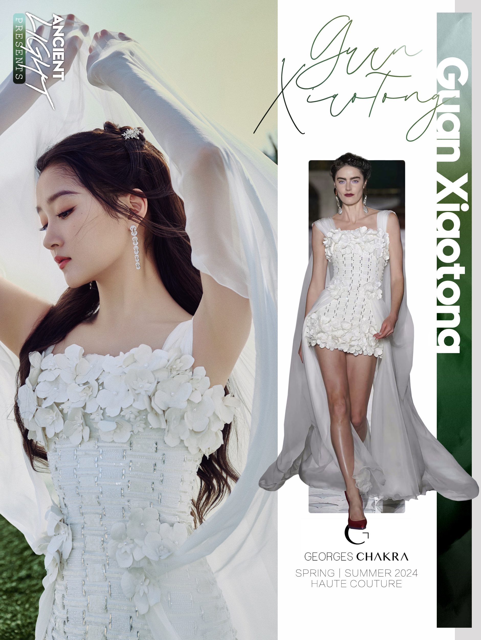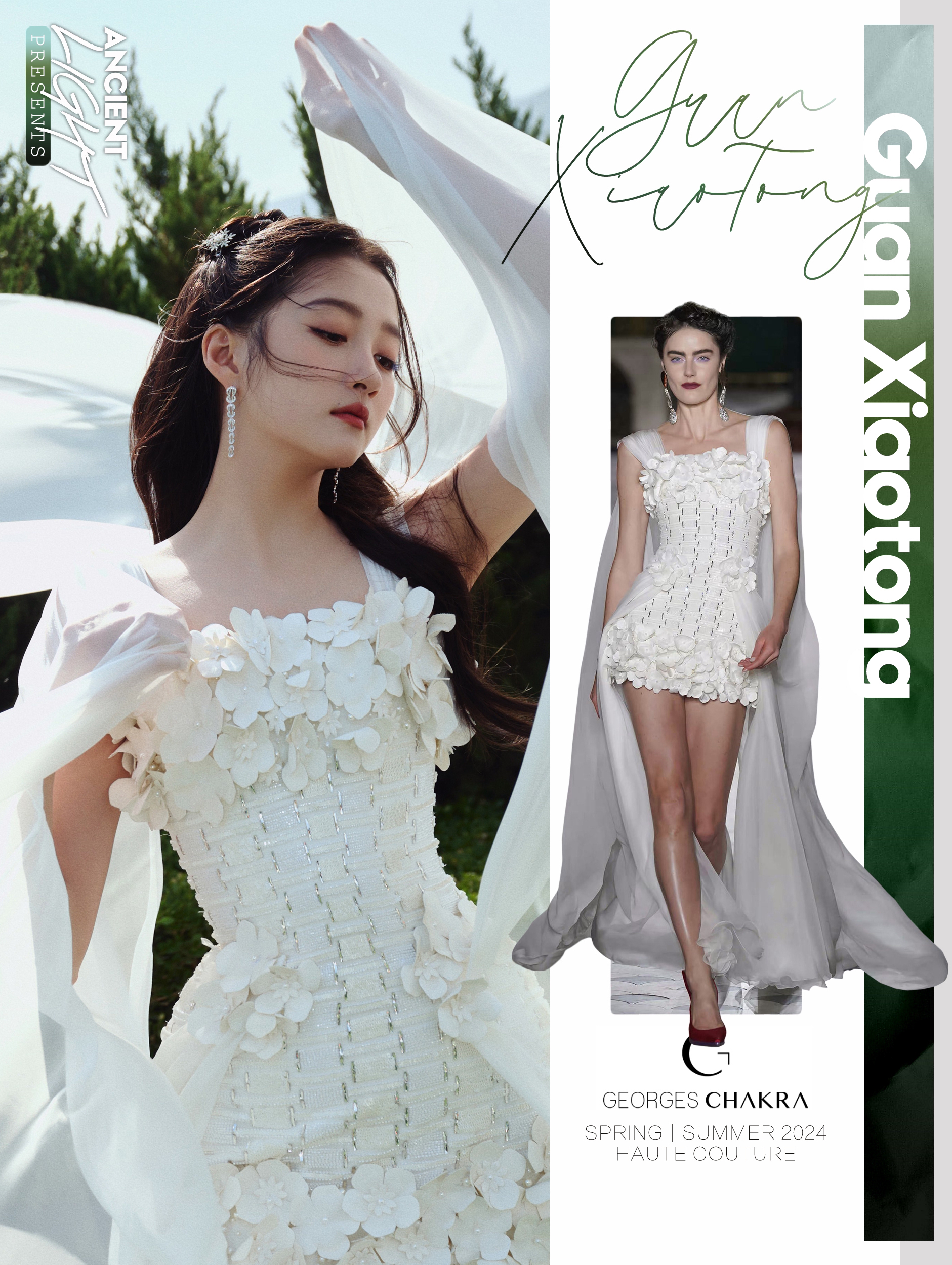 身着白纱高定的关晓彤亮相北京国际电影节开幕式红毯, 佩戴Force 10系列及Chance Infinie系列高级珠宝作品,摇曳生姿。 服饰|GEORGES CHAKRA SPRING/SUMMER 2024 HAUTE COUTURE