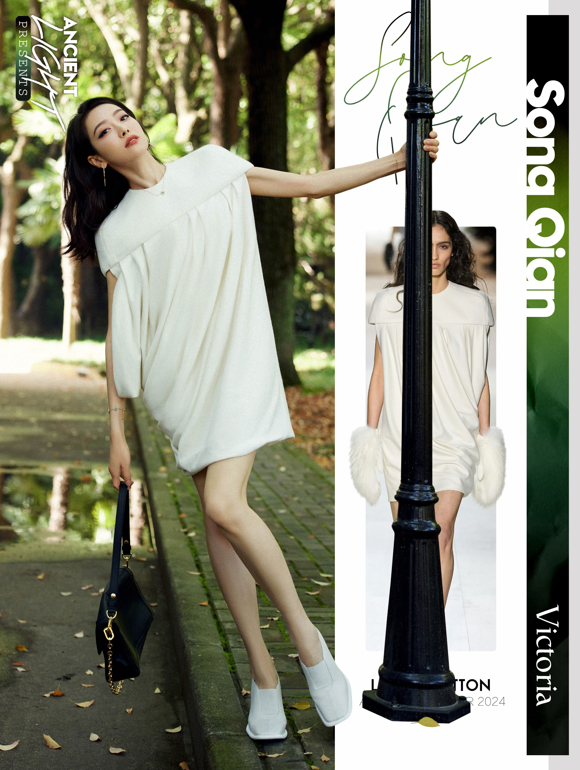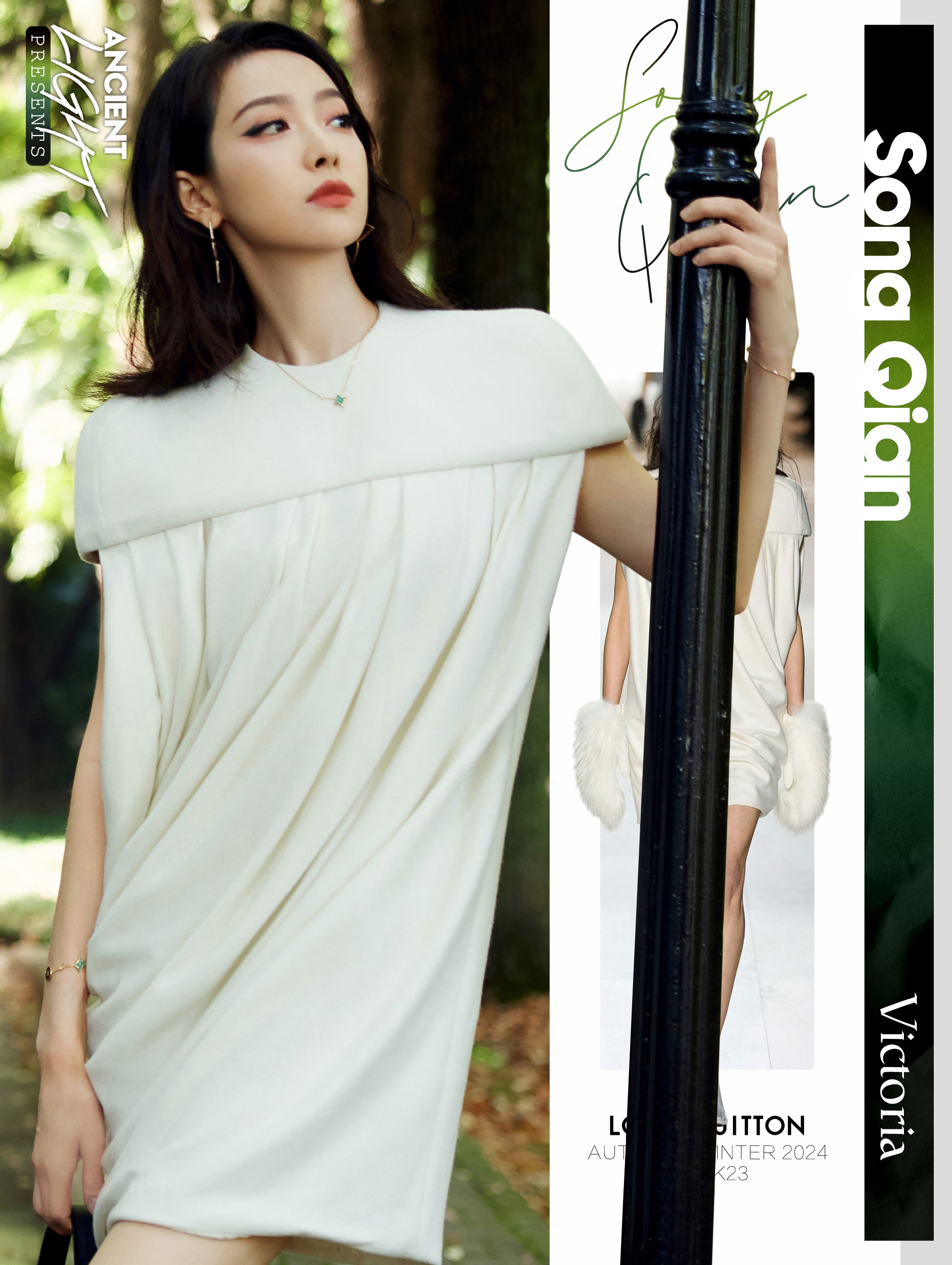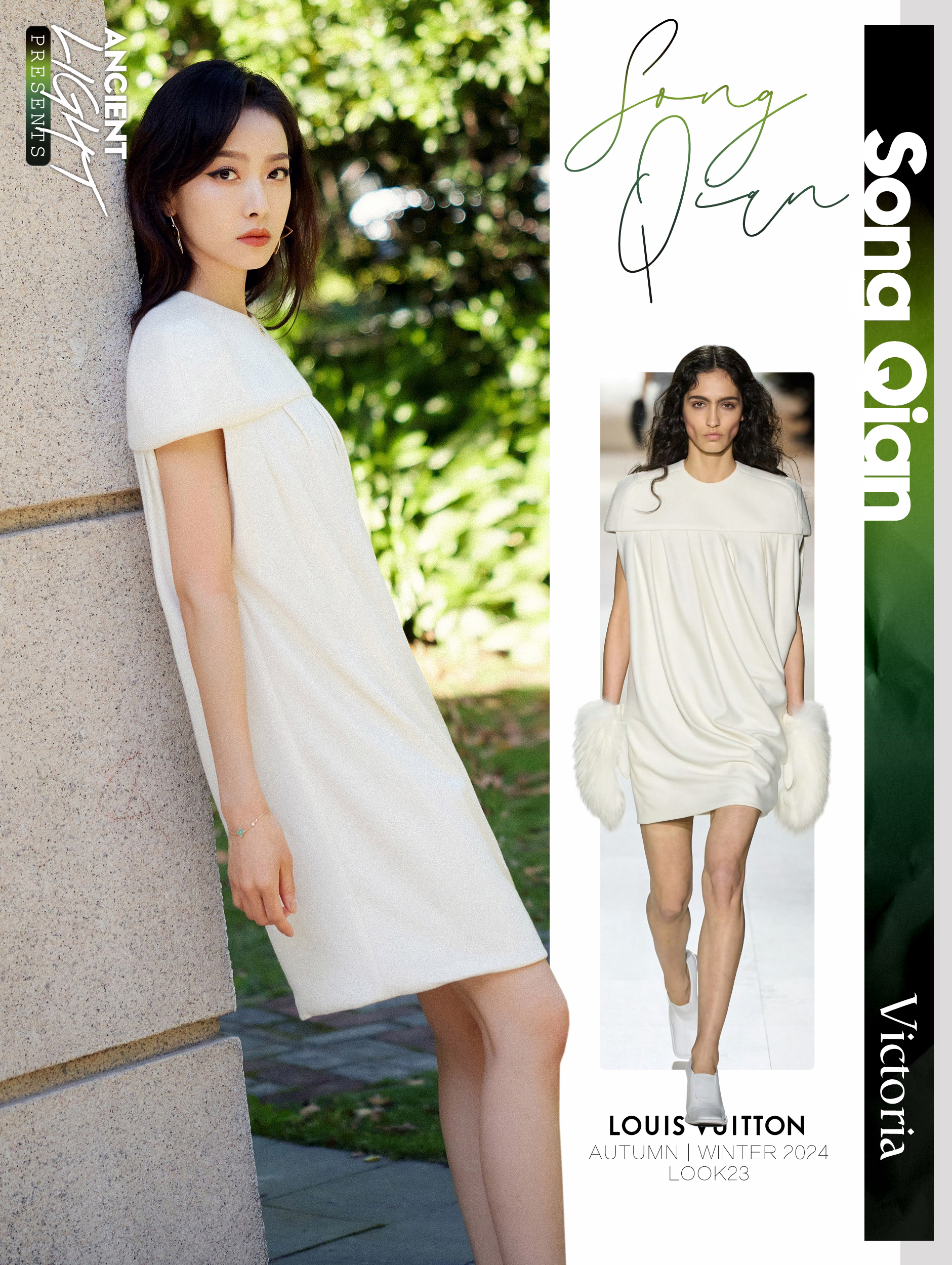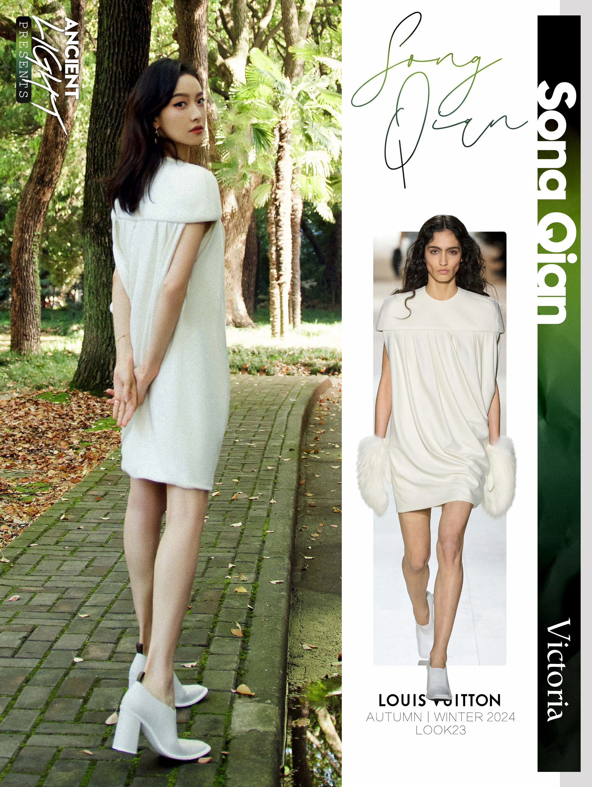 大秀直击,宋茜身着亚白色披挂裙前卫兼具未来设计感裙装亮相LV上海早秋大秀,御姐妆容与流苏手套细节有种冲突感的和谐美,好美的女性力量。 服饰|LOUIS VUITTON AUTUMN/WINTER 2024 LOOK23