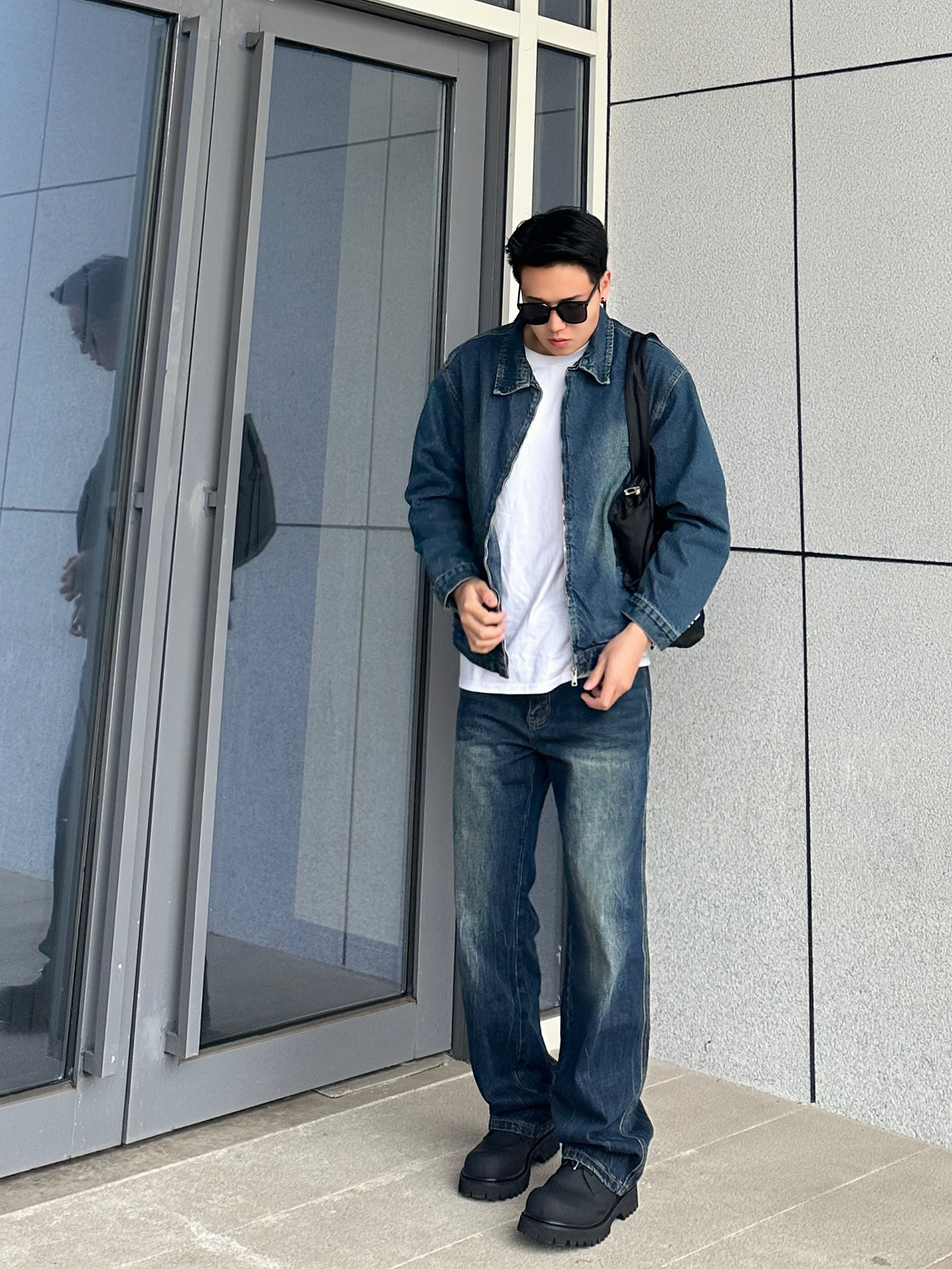 这一套深蓝色牛仔我真的太爱了!! 👔:新因素 底特律夹克上身真的超帅! 版型宽松显瘦,复古水洗牛仔面料很有质感 很适合春秋穿,天冷内搭一件长袖层次感十足! 👖:RHRB 搭配一条复古宽松版型的牛仔裤绝了! 同色系的深蓝色上身百搭时尚 直筒版型宽松显瘦,面料舒适垂坠感满满! 👟:KREATE 再来一双圆头德比鞋简约干净! 牛皮革材质质感超棒,上脚舒适柔软 大厚底增高对于矮个子的友友真的超级友好 一整...