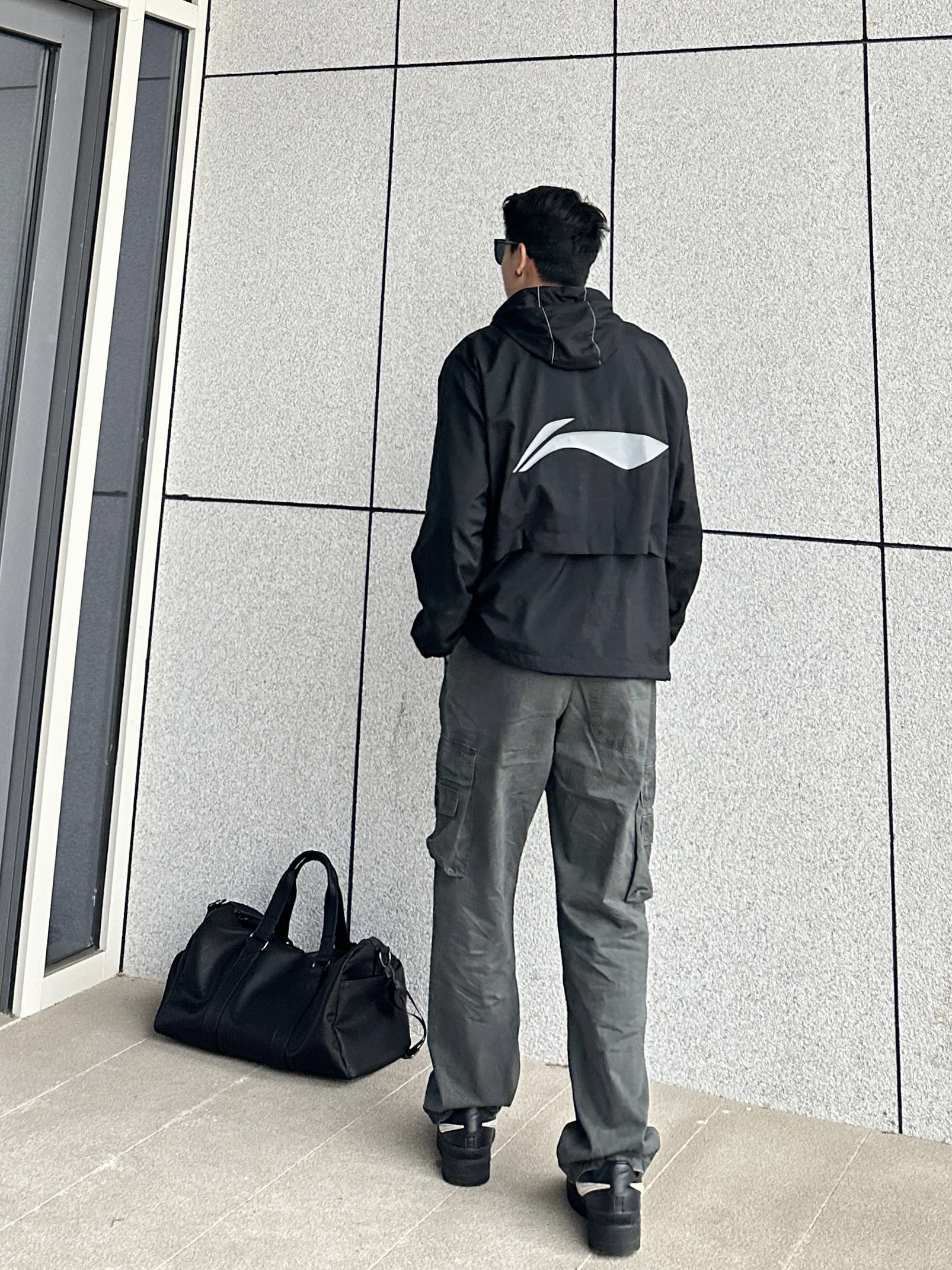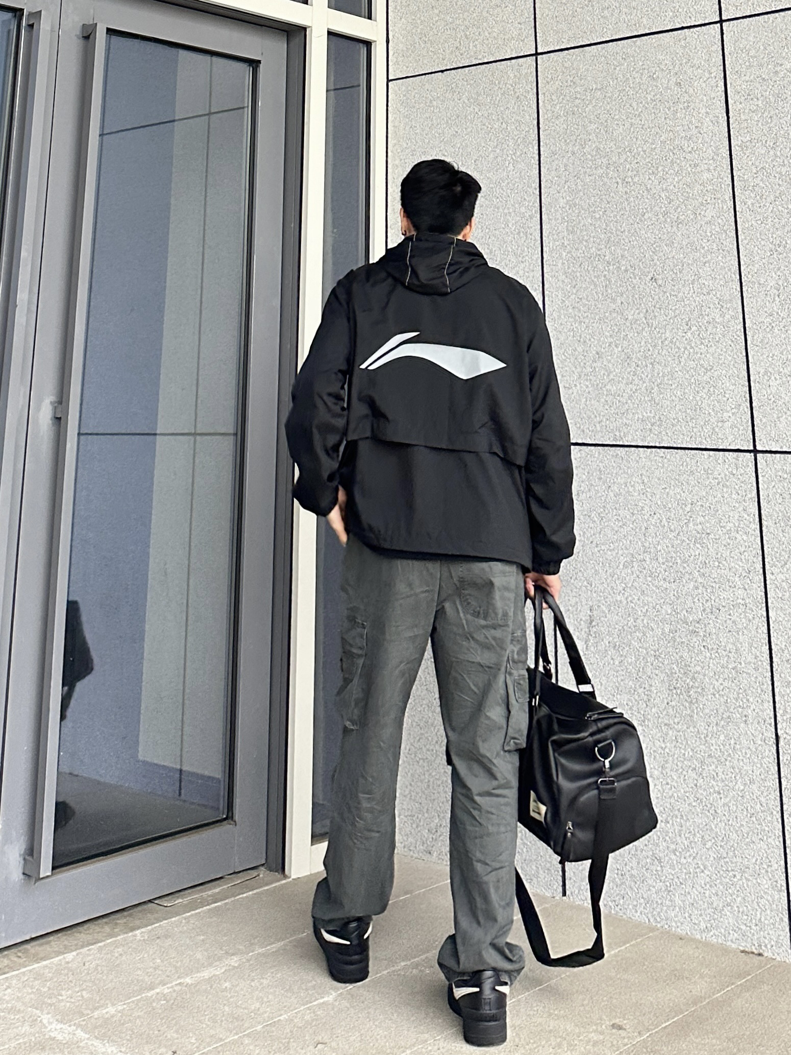 👔: 李宁 上身穿着一件黑色连帽夹克! 简约休闲的版型完全不会出错 防风防泼水面料真的是一衣多穿,实用性特别高 整个上身很轻盈舒适,春日出游穿这身太帅了! 👖:RHRB 裤子搭配一条灰色工装长裤! 多口袋褶皱设计工装风拉满 直筒版型很好的修饰腿型,显高显瘦 面料也很舒服,日常搭配起来很帅气! 身高|体重:180|160 衣服|裤子:XL|2XL