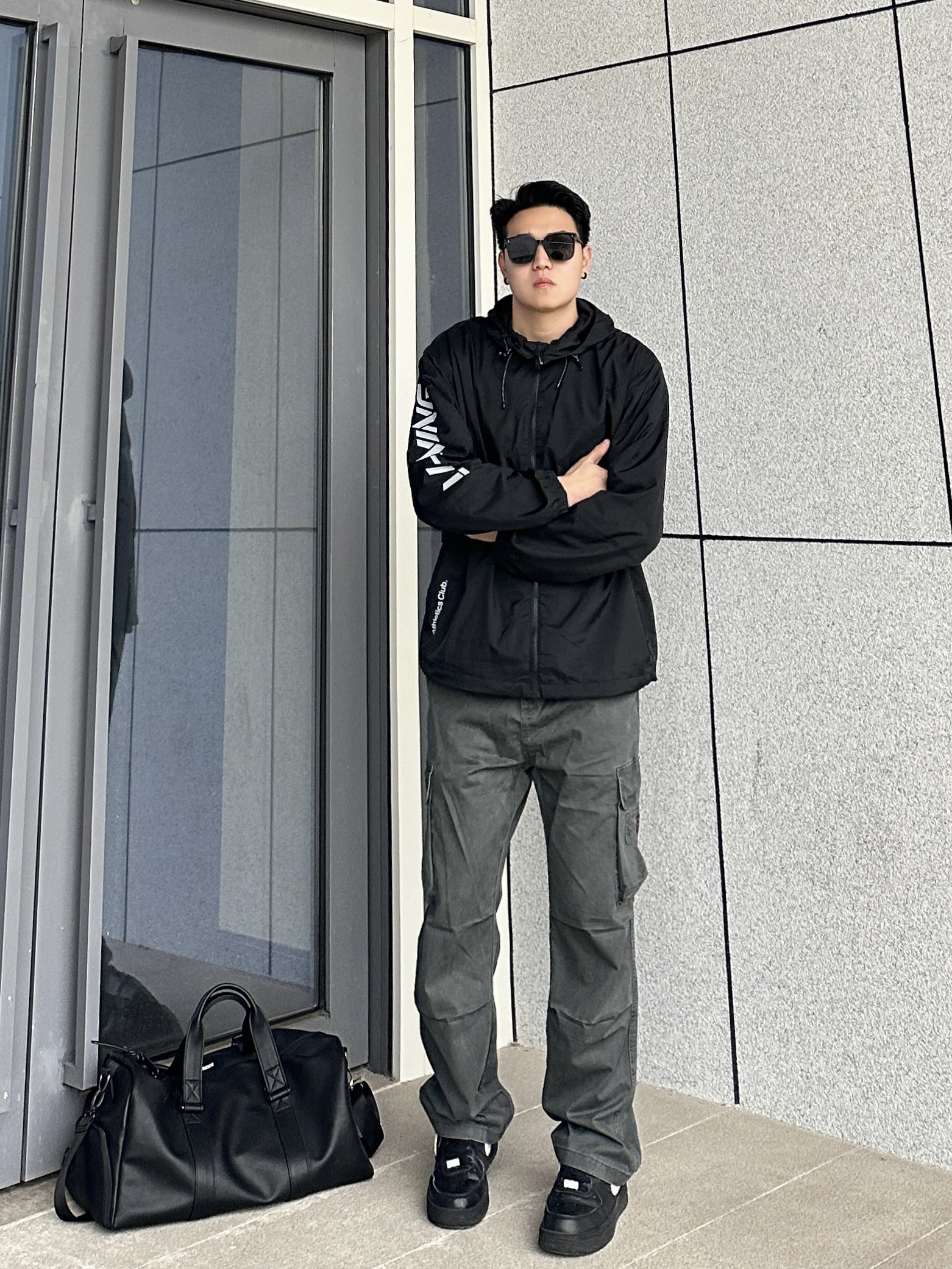 【Ootd男生穿搭|黑色连帽夹克➕灰色工装裤!】,由用户 小聂爱喝白开水 分享,来自江西。这是一篇来自识货社区的真实用户分享笔记。
