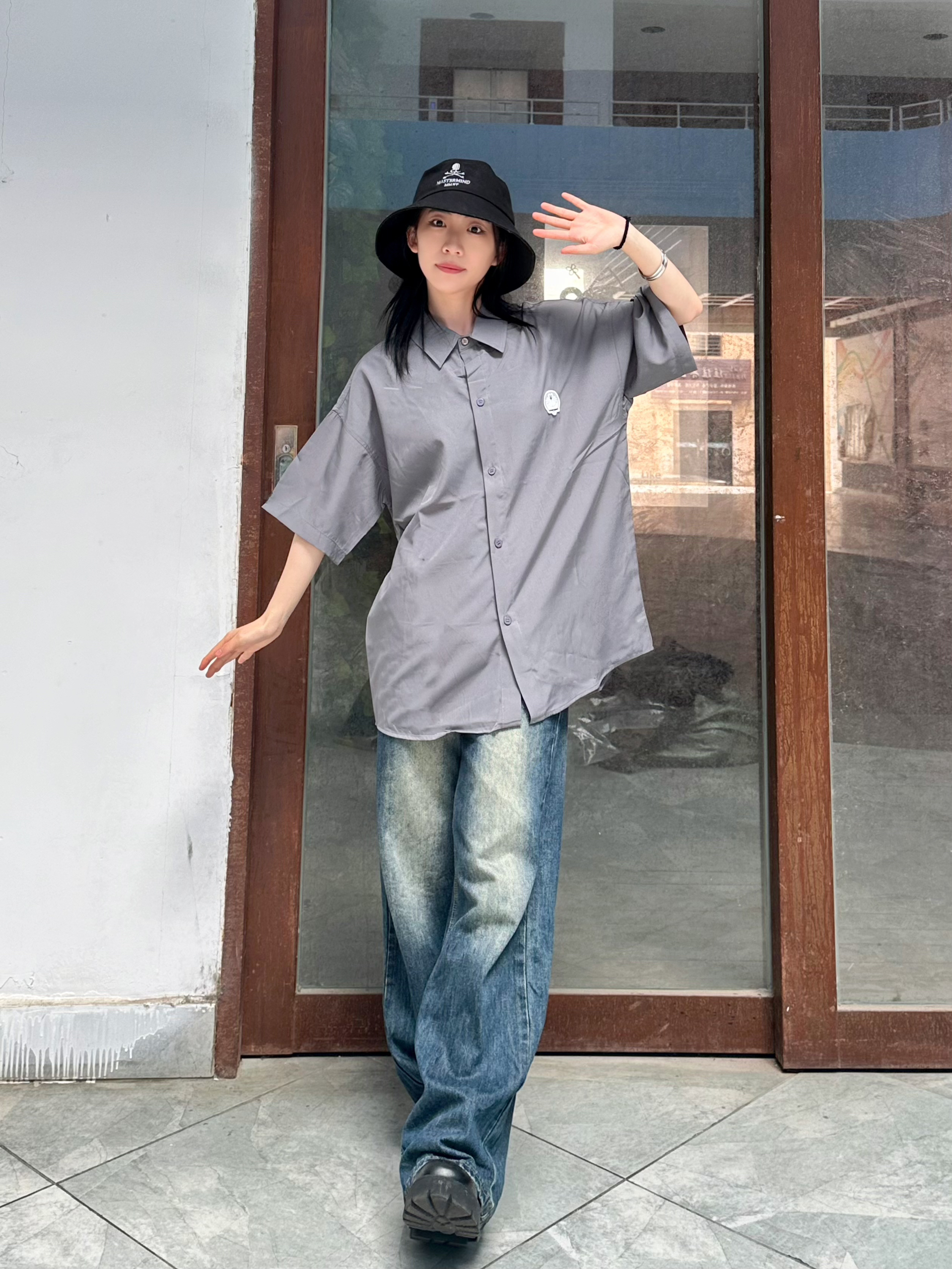 一眼爱的日系衬衫 休闲随性又百搭🥯 宽松显瘦版型,很好的修饰身材比例! 小个子也能完美驾驭🍅