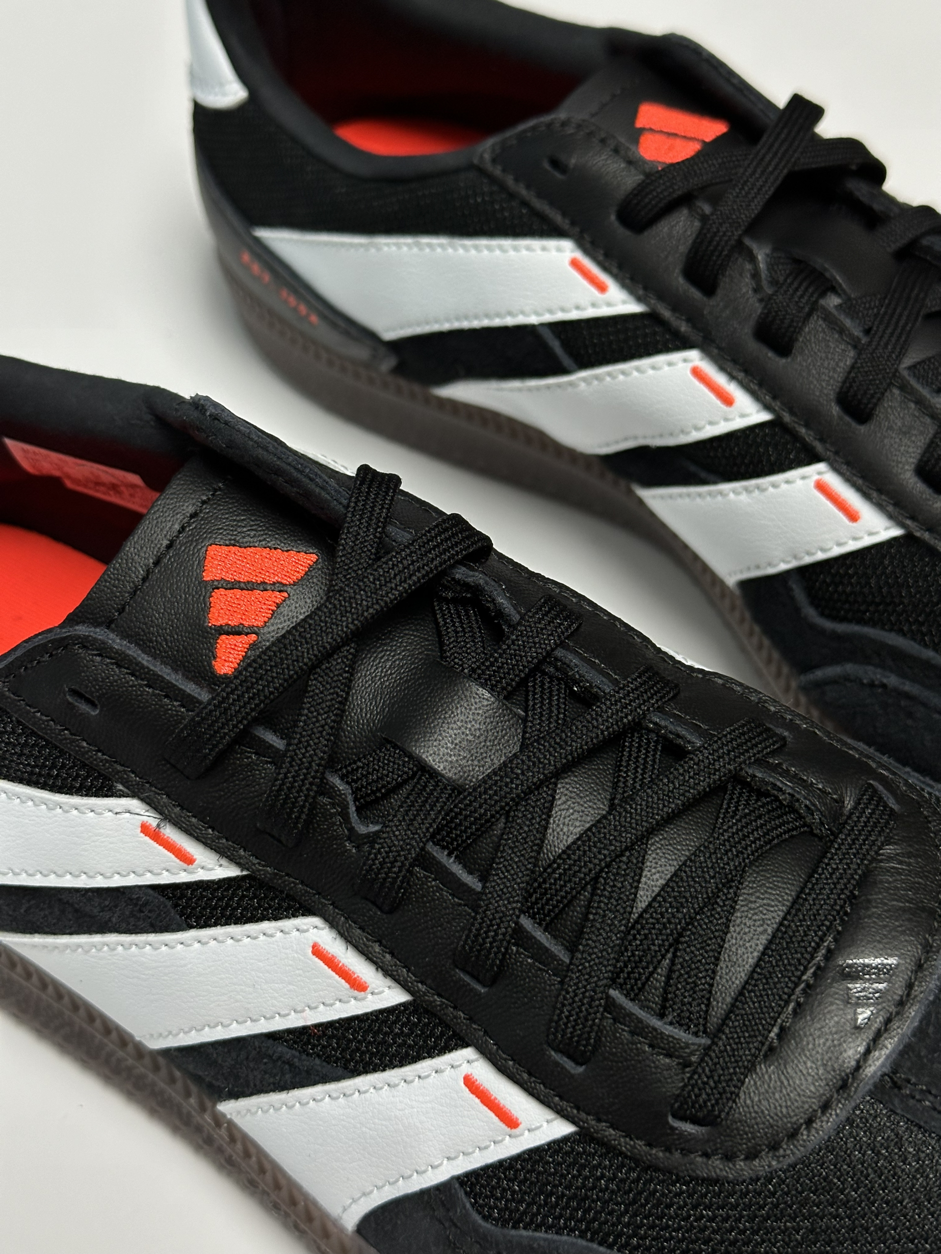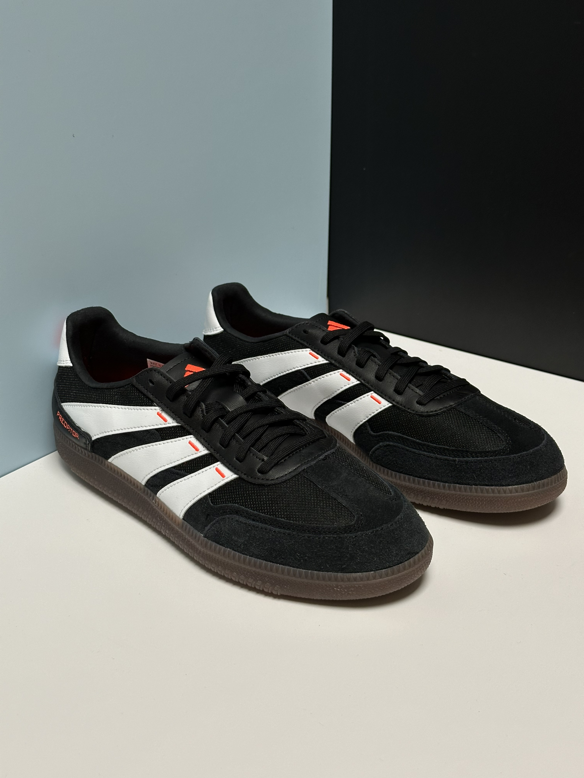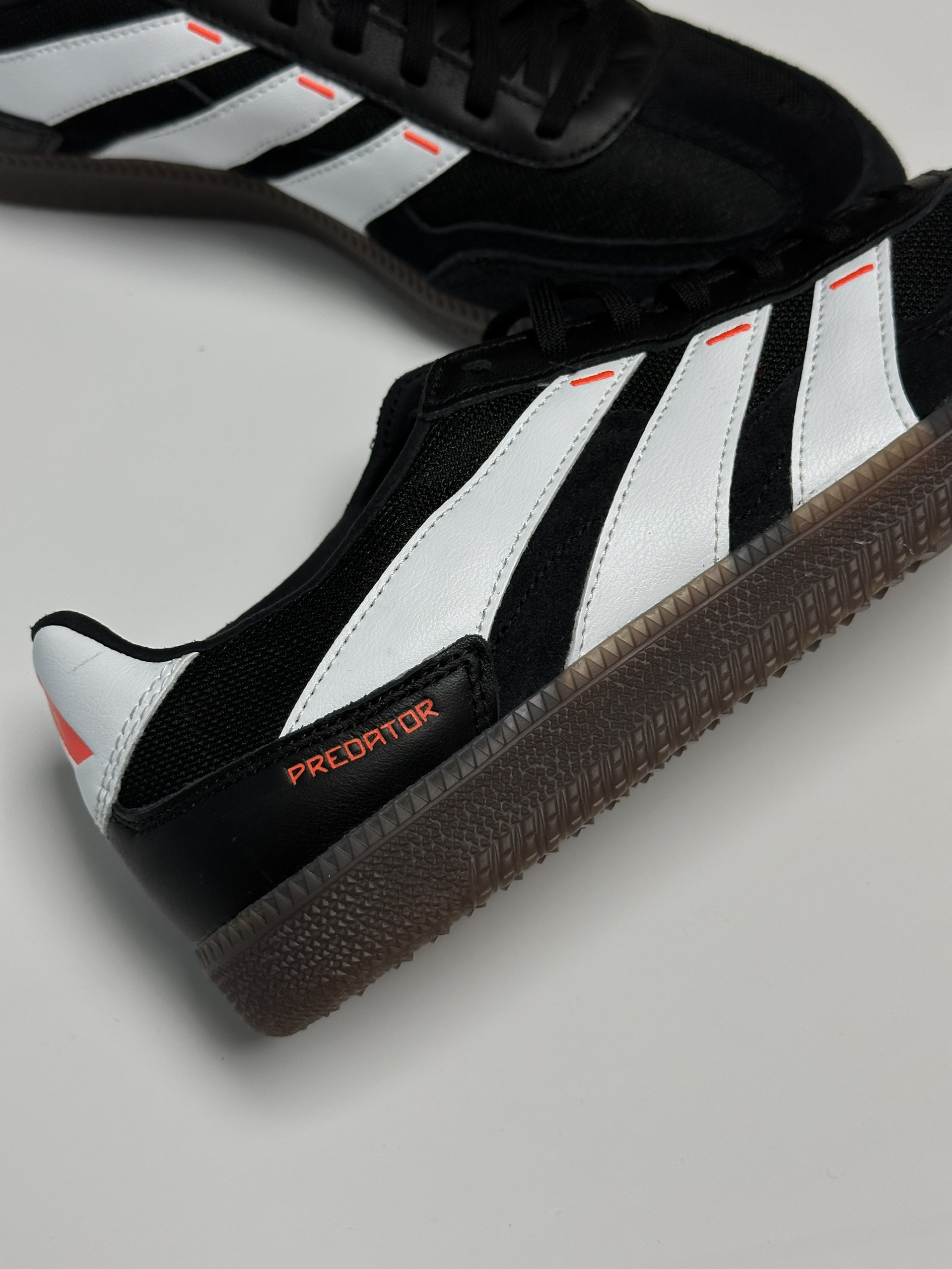 融合了predator足球鞋设计风格的一双德训鞋,辨识度更高,而且还用了更透气的织物➕麂皮拼接鞋面,穿了几天,脚感确实不错