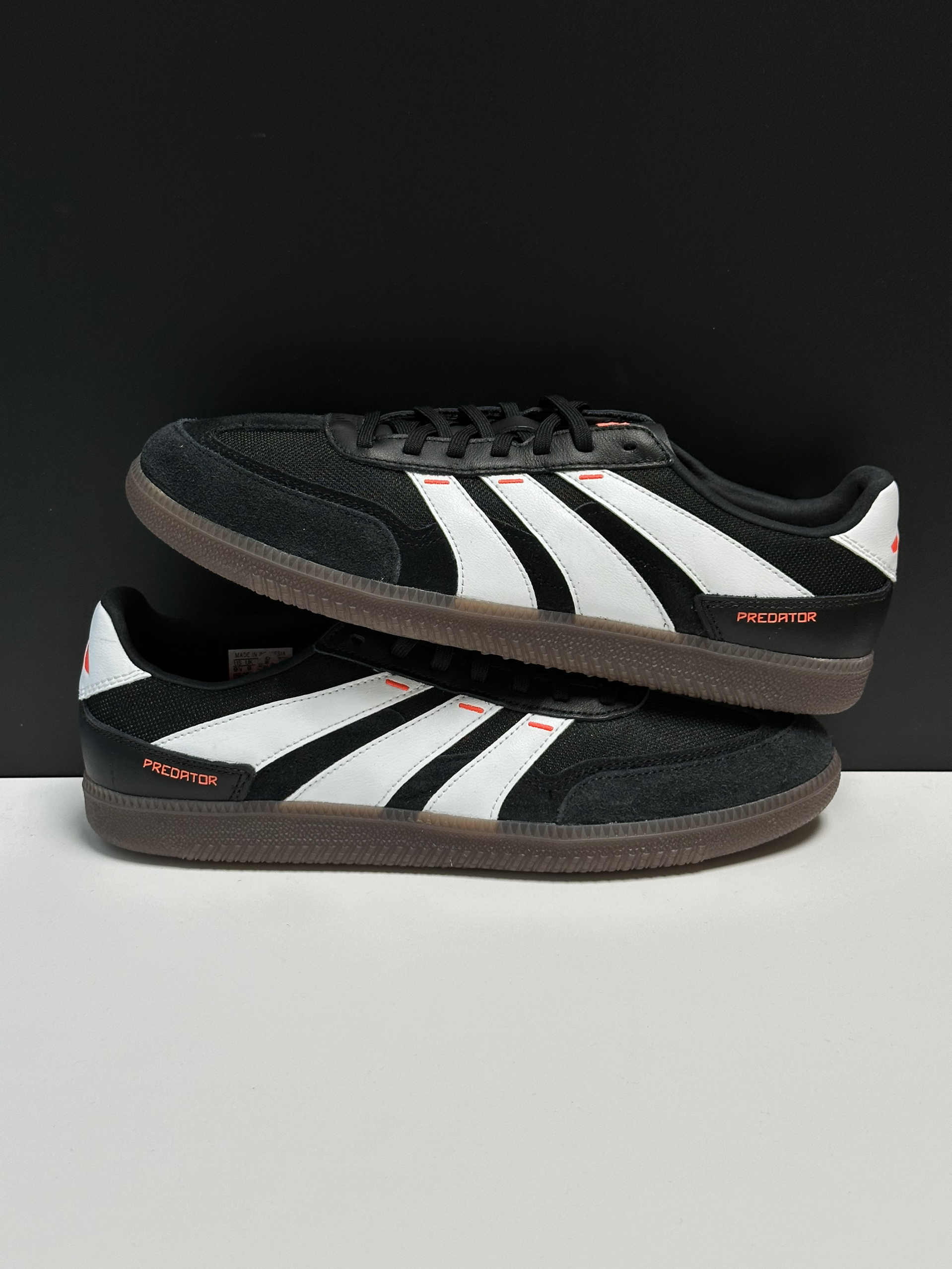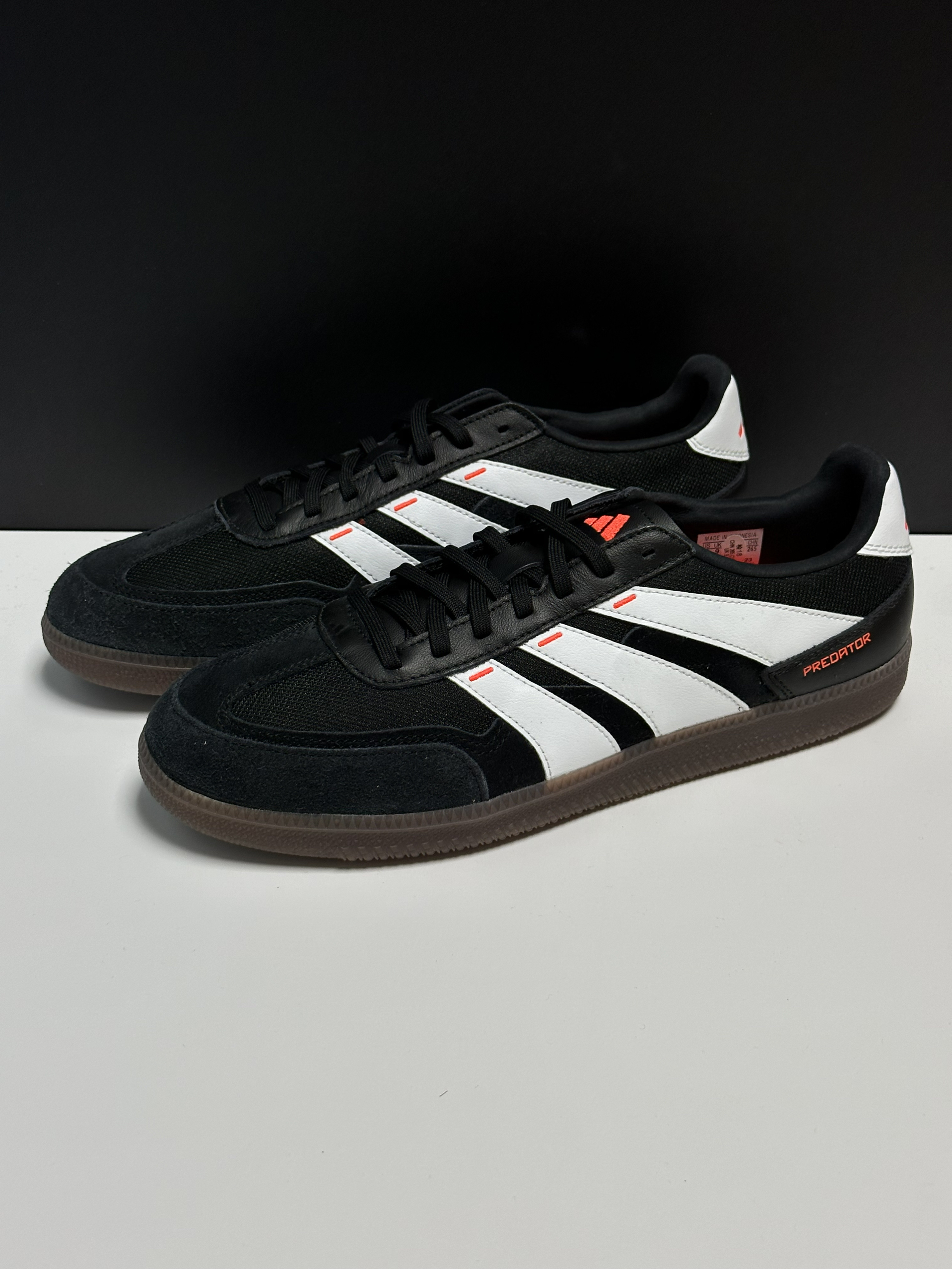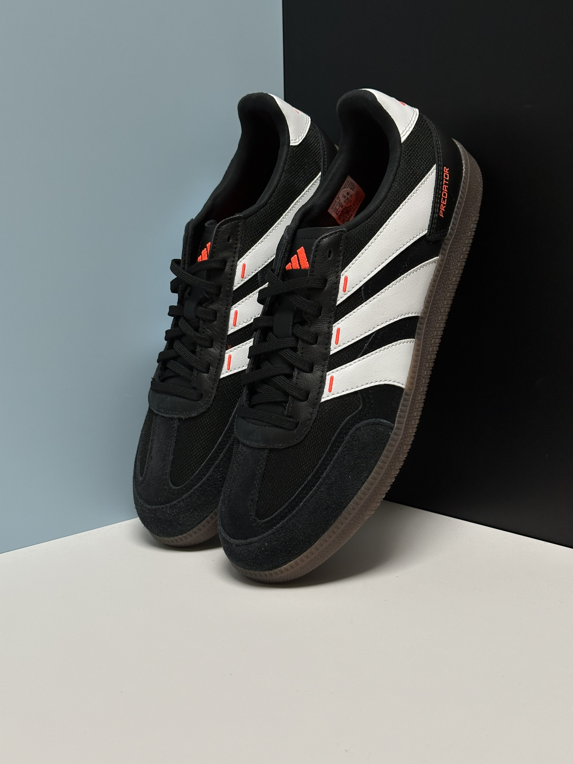 融合了predator足球鞋设计风格的一双德训鞋,辨识度更高,而且还用了更透气的织物➕麂皮拼接鞋面,穿了几天,脚感确实不错