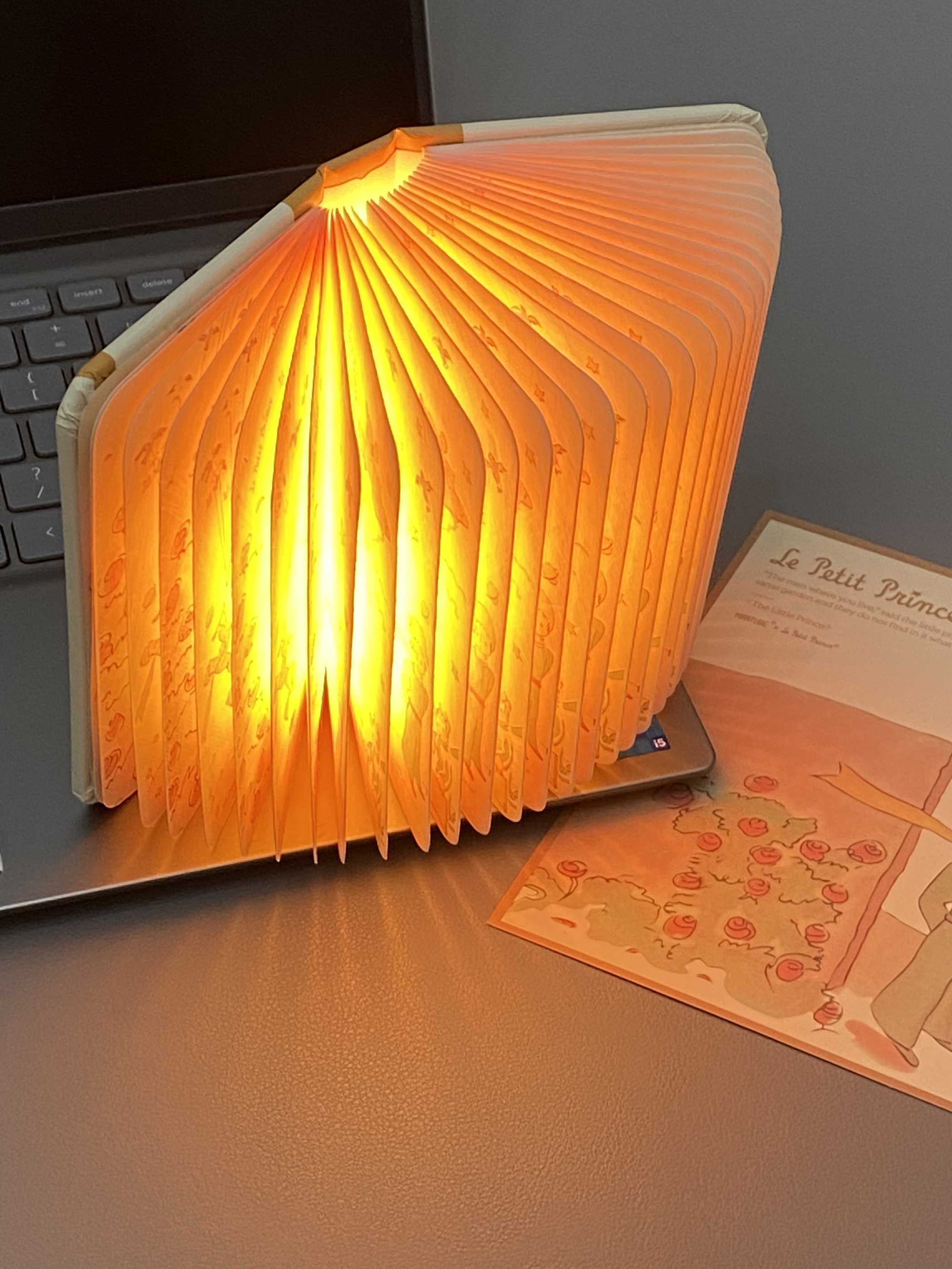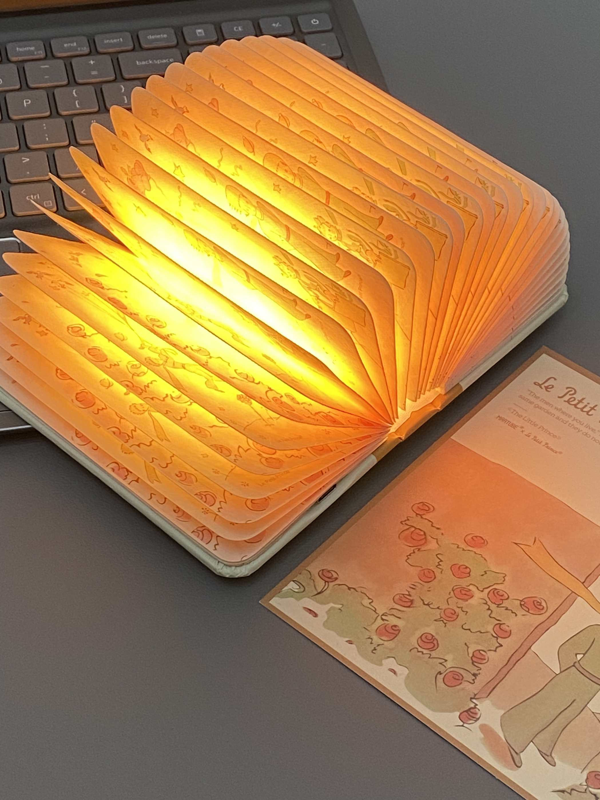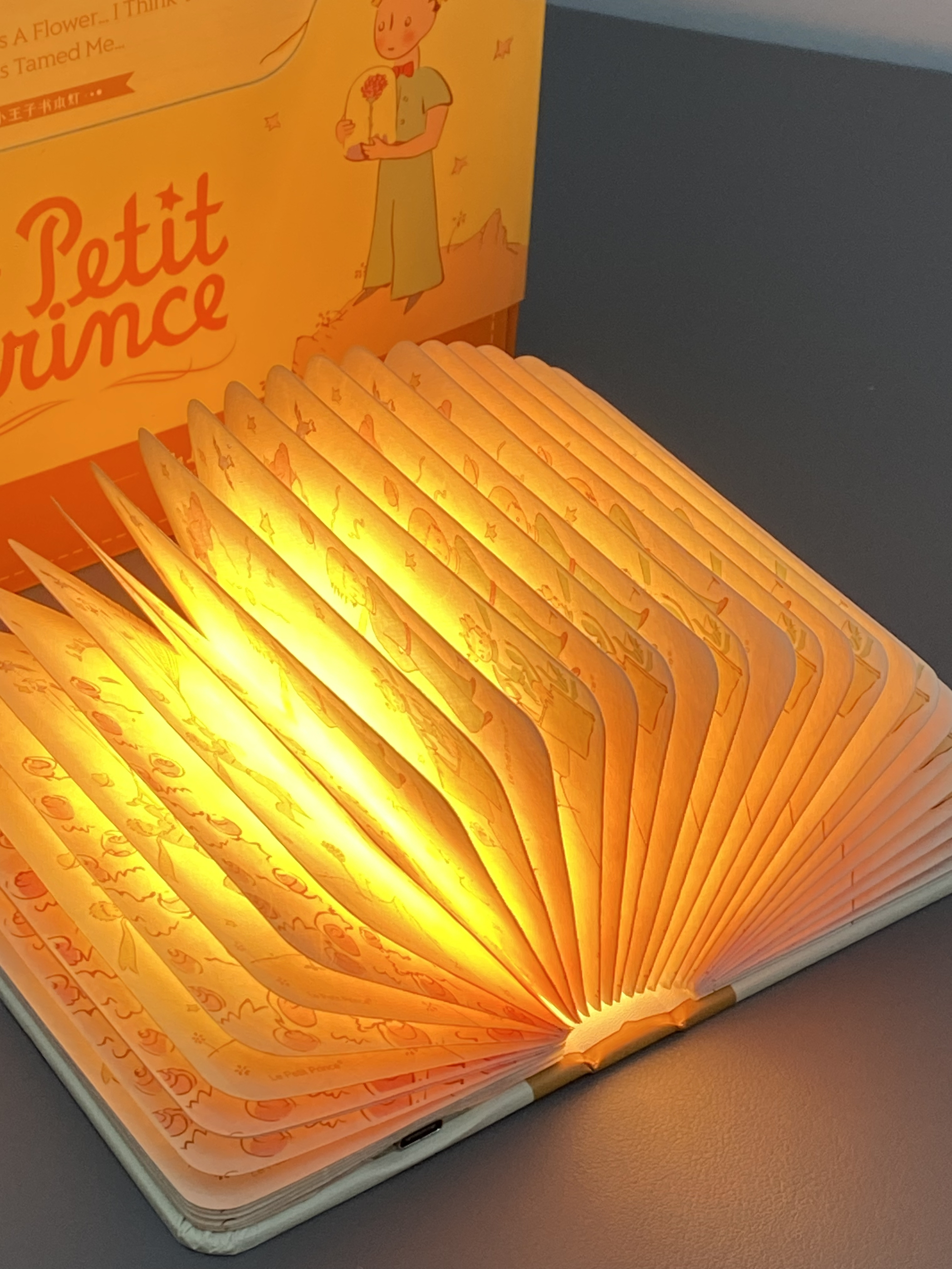 尊嘟爱了是马克图布和小王子联名的书本灯 一打开氛围感就来了还有三种灯光能够切换~书本背后还带有磁吸吸在铁板上立体书吼吼看!翻动书本每一页都是拿着玫瑰花的小王子送这样浪漫的礼物给男友他尊嘟hin喜欢!