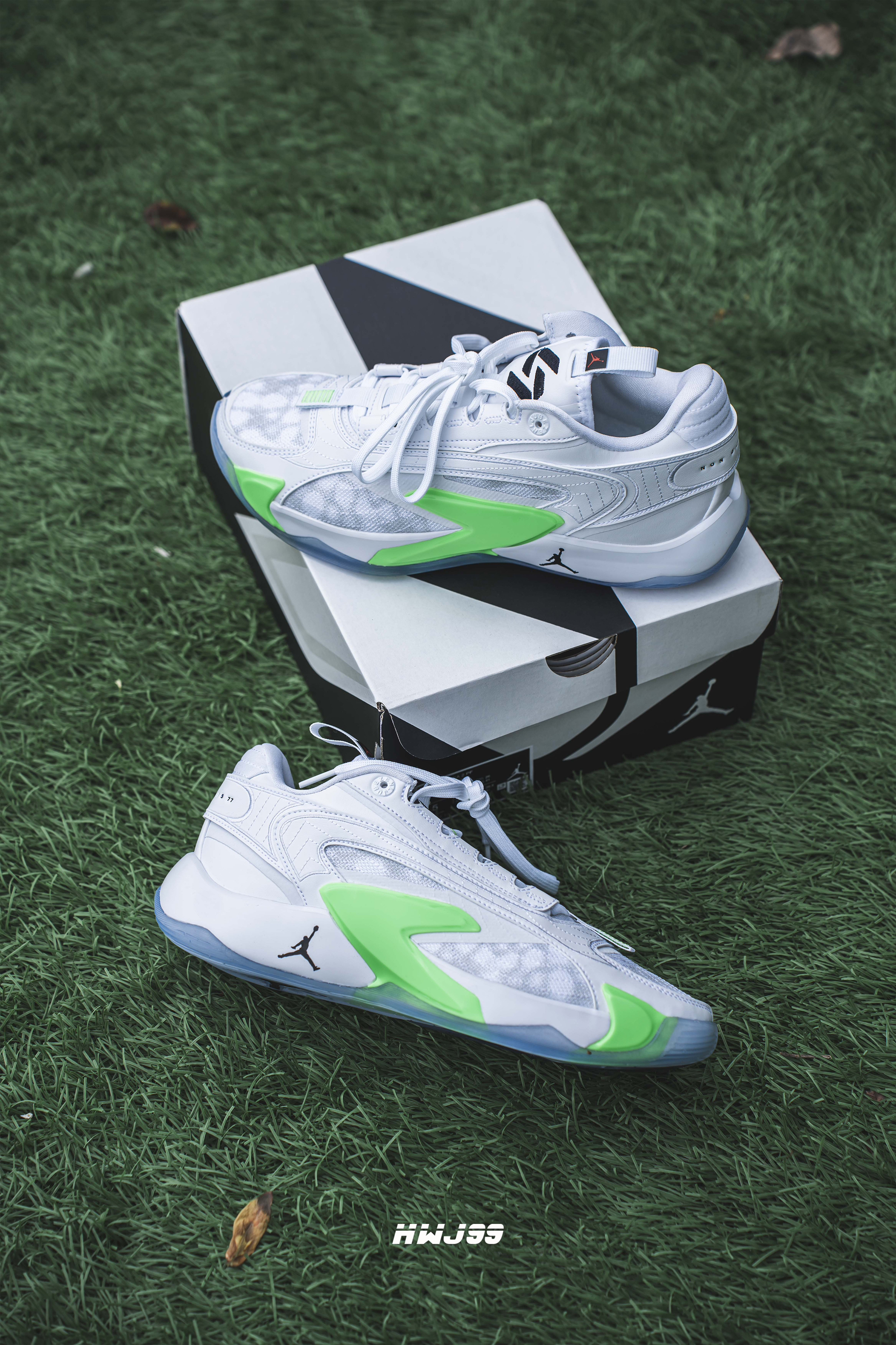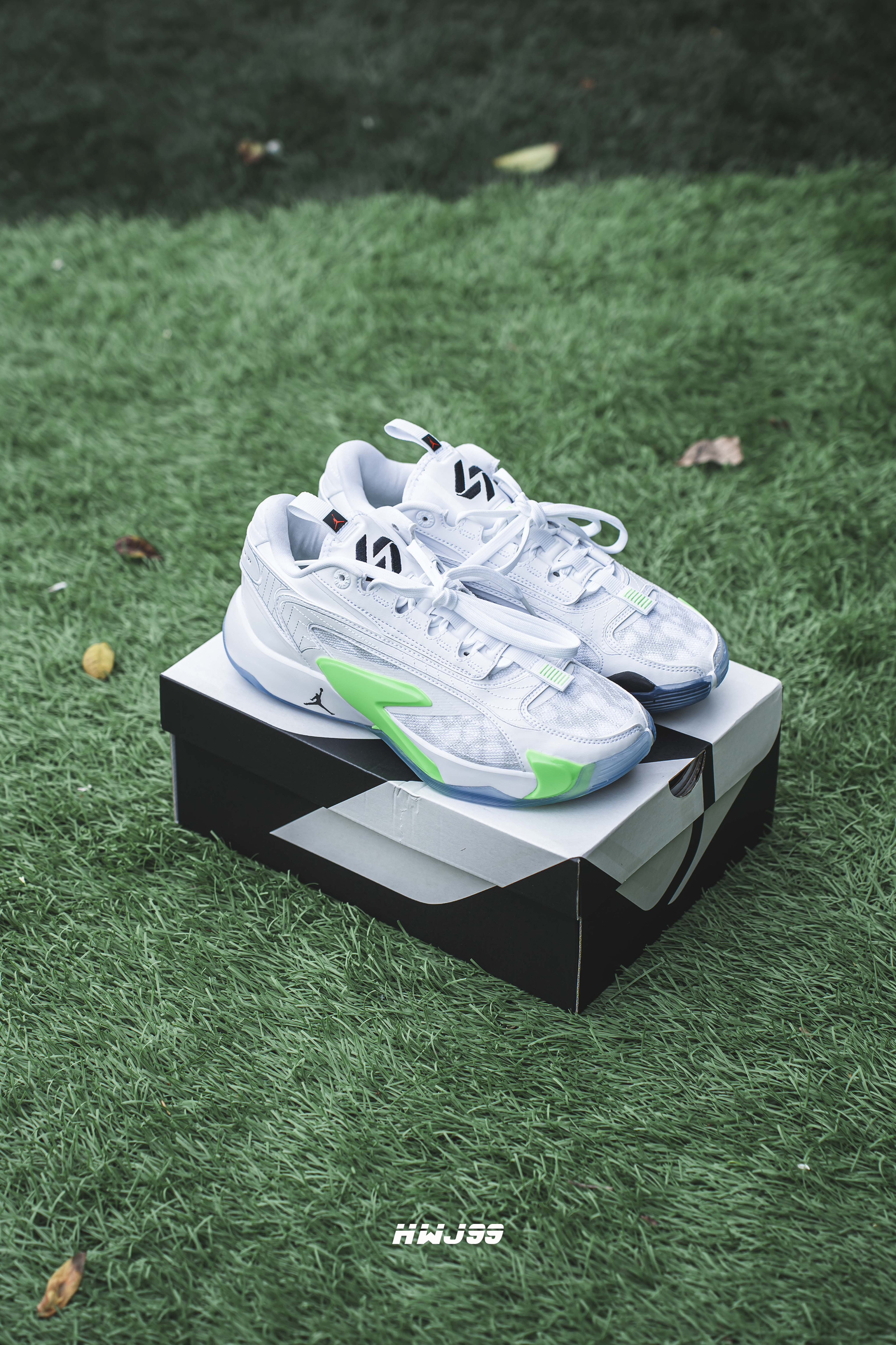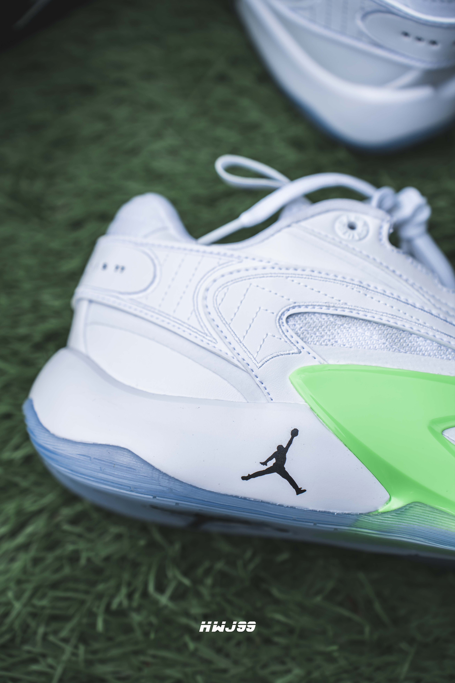哈喽👋大家好 我是99 今日给兄弟们分享的是Jordan Luka 2 这款是白绿配色 配色还是很清新的 鞋子的包裹感和稳定性都挺不错 这次采用了水晶底 抓地力也很ok 耐磨性我觉得一般吧 总的来说这个配色不管是实战性还是穿搭都挺在线