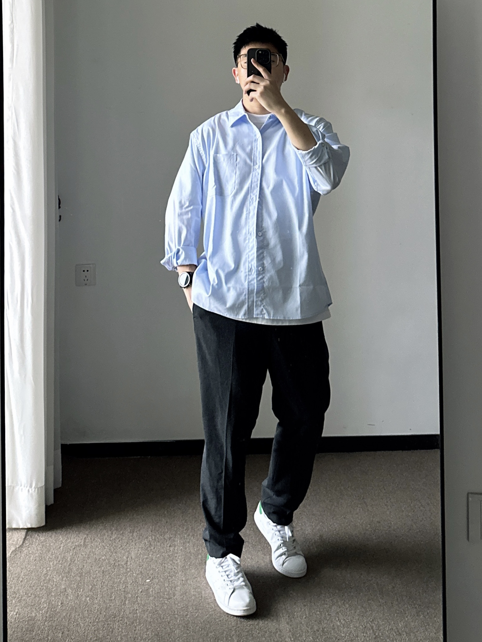 小白鞋搭万物真的太绝了! 搭配西裤 干净利落 而且还显腿长 太棒了👏
