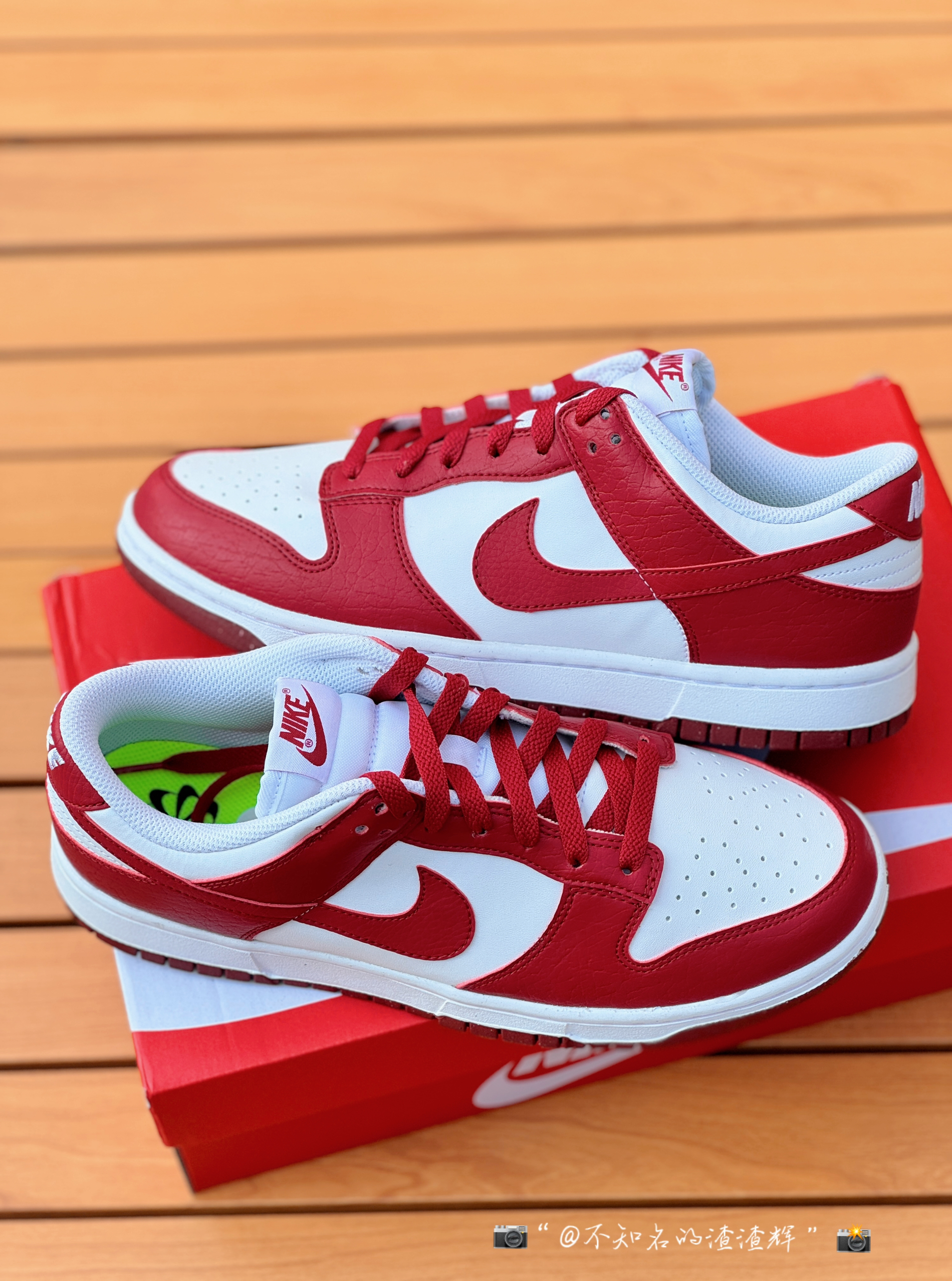 🏖️:Nike Dunk Low Next Nature “University Red”可回收材料 防滑耐磨轻便 低帮 板鞋 白红 🏖️:这双鞋子整体以白红色为主色调,比较喜庆的配色,个人最喜欢的配色,鞋面采用优质皮革材质,质感丝滑细腻,鞋底采用橡胶材质,防滑耐磨都是不错的哦 🏖️:很好穿的一款Dunk,适合春夏季节穿,结婚搭配情侣鞋也是非常不错的选择哦! 🏖️:尺码推荐:正常尺码