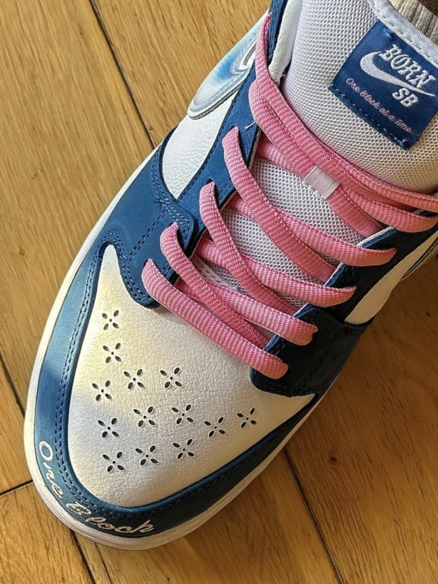 哈喽👋大家好❕这里是鞋匠公社✨ 😍今天是 分享的这双鞋是23 年发售的 dunksb 三方联名款,在我心里已经是 top1 的存在咯!✨ 🎨配色方面,整双鞋采用大面积头层牛皮,还有增厚很软的牛巴革鞋舌,鞋跟带有凸起的字母。鞋尾印有“BORN SB”的字样,鞋面孔采用全新的打孔方式,这种方式我从未见过呢。整鞋以白色为底,搭配蓝色,超好看!😎 🤩这双鞋从里到外都是细节满满,做工质量都不是一般的可以...