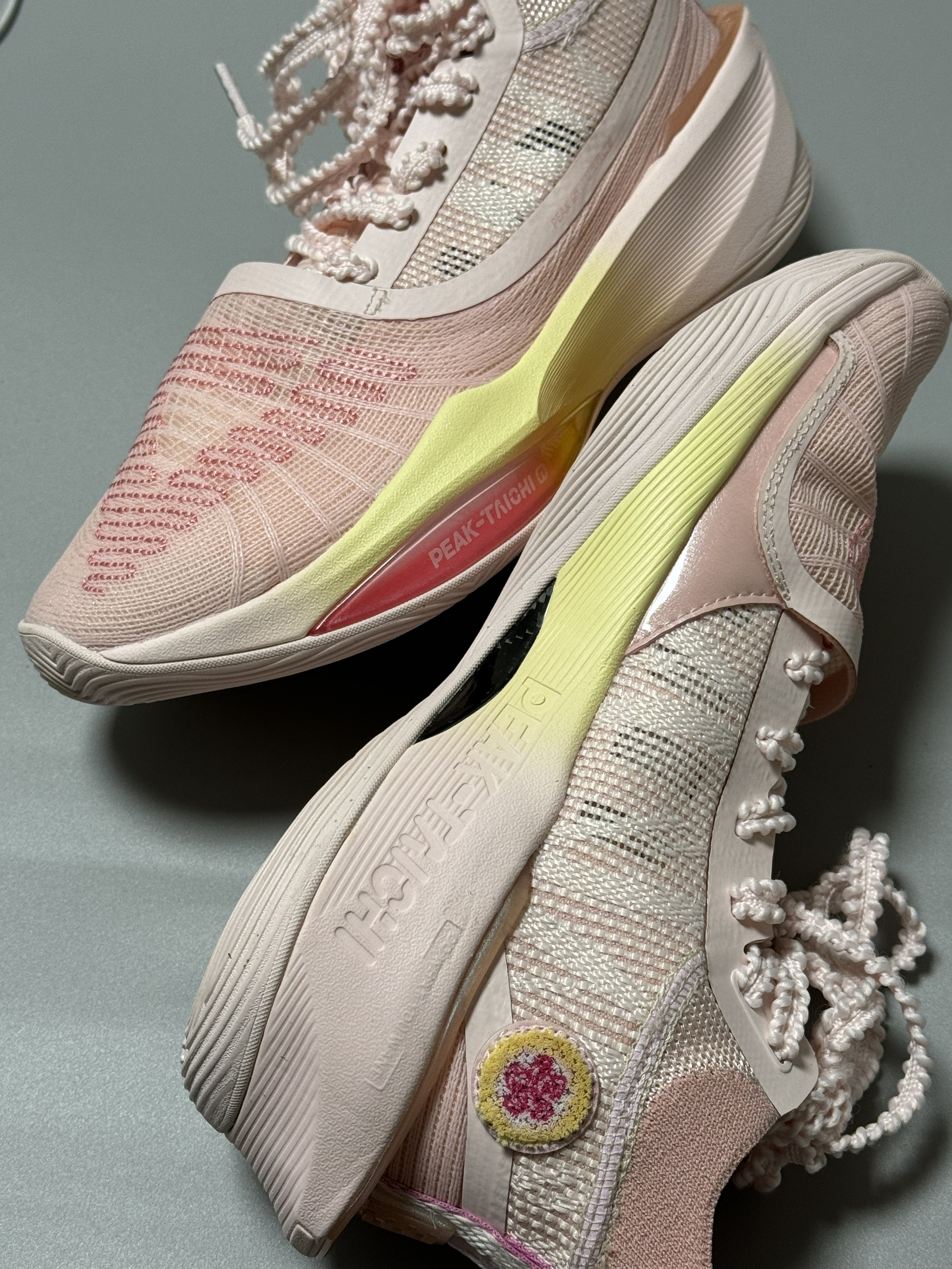 halo 阿迪来了,本期分享的实战鞋是这双最近get的匹克实战鞋!没错,就是这双态极大三角pro 整双鞋采用粉嫩的“樱花🌸”配色,鞋型的外观给人很强的力量感!鞋头包覆罩面由水绣、绞综双工艺相结合,肌肉线条纹理,力量美学! 而且相比前代,整体的线条处理要更加的棱角分明,再搭配上流畅的鞋型设计,让这双球鞋整体的颜值表现还是挺不错的。 这就是一双具有大三角家族式设计风格又有设计创新的新产品。 这个鞋子初...