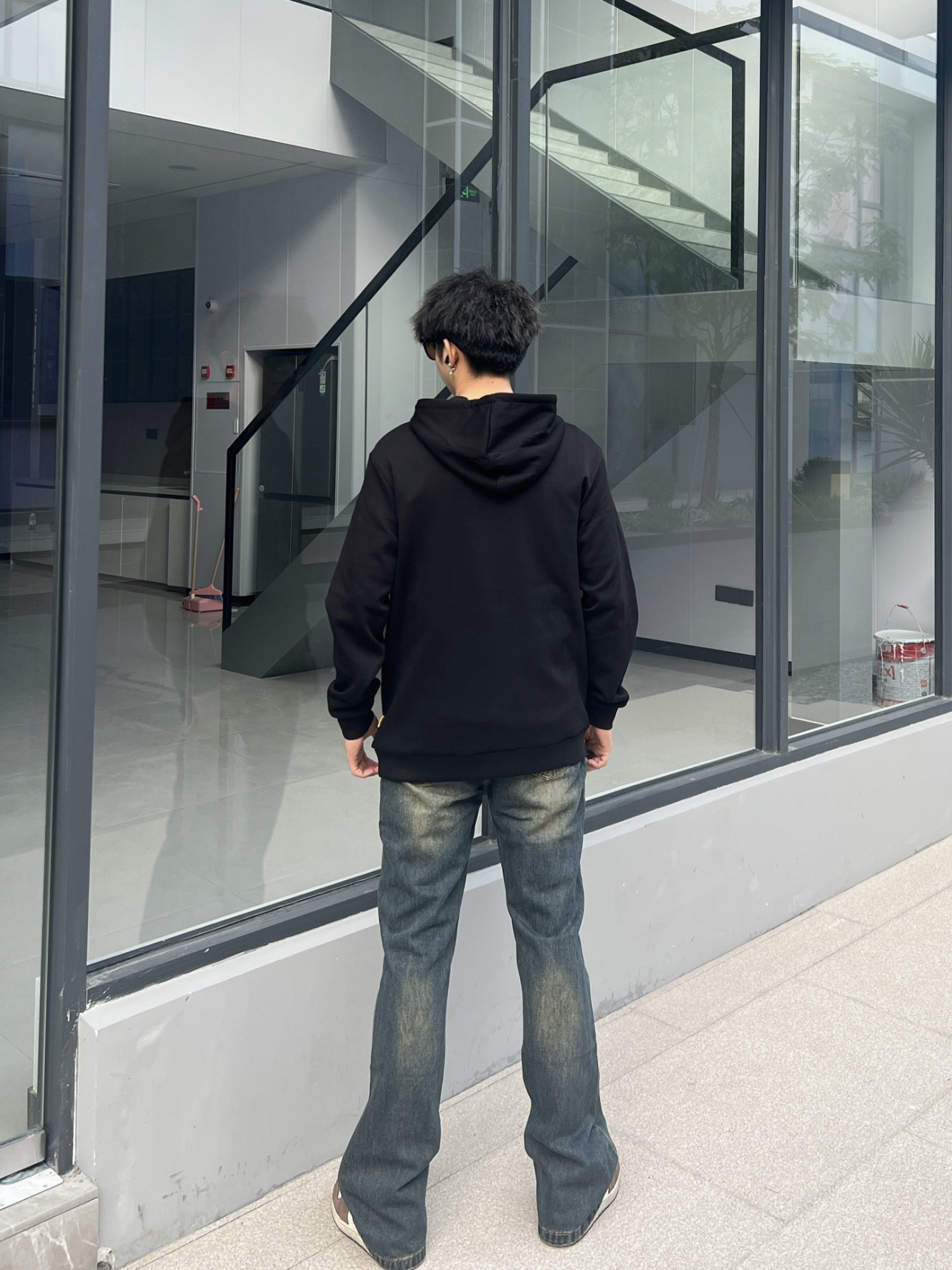 参考183cm/75kg 相信我 黑色连帽卫衣真的是日长穿搭中必备的单品 不挑身材 天气冷了还可以叠穿 慵懒随意又好搭衣服 在搭配一条水洗牛仔裤 细节做得很好 版型设计的很 显腿长 很显腿细 上身真的有被帅到!!!