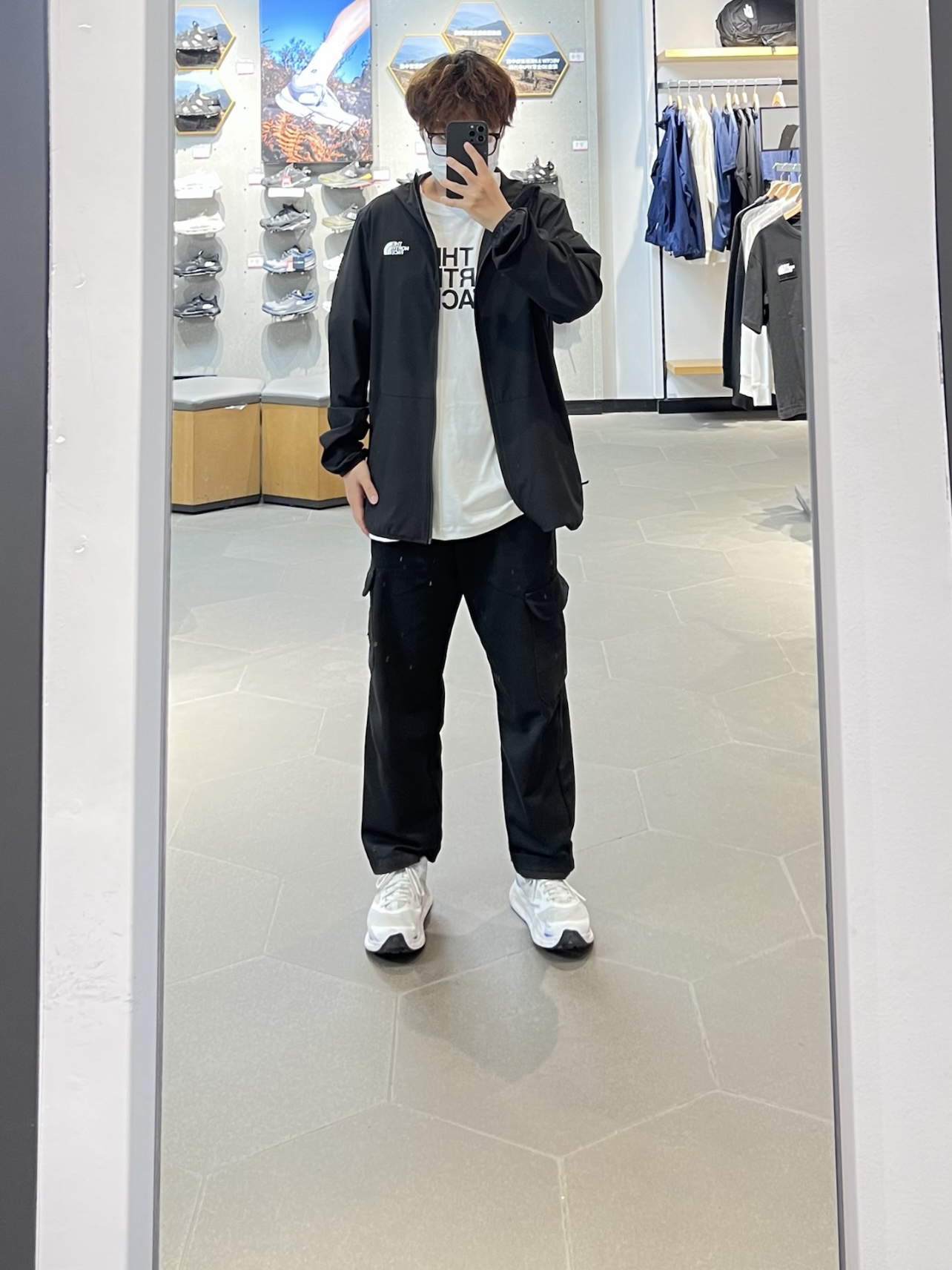 今日份穿搭分享🎉 THE NORTH FACE北面皮肤衣 黑色皮肤衣也就是防晒衣可能往往不讨人喜欢 但这款是另外你相信我哦 黑色本身就自带帅气属性❗️❗️ 它的面料亲肤上身穿着舒服 而且有弹性不像其他防晒衣很硬的面料🉑️ 前后都是只有一个白色小logo很低调好看 本身也具有防风防泼水效果🉑️当外套哦 内搭一件白色T恤这样穿男女都嘎嘎帅气 再搭配一条黑色工装裤和白色运动鞋 一整个夏天酷酷🆒穿搭就来啦...