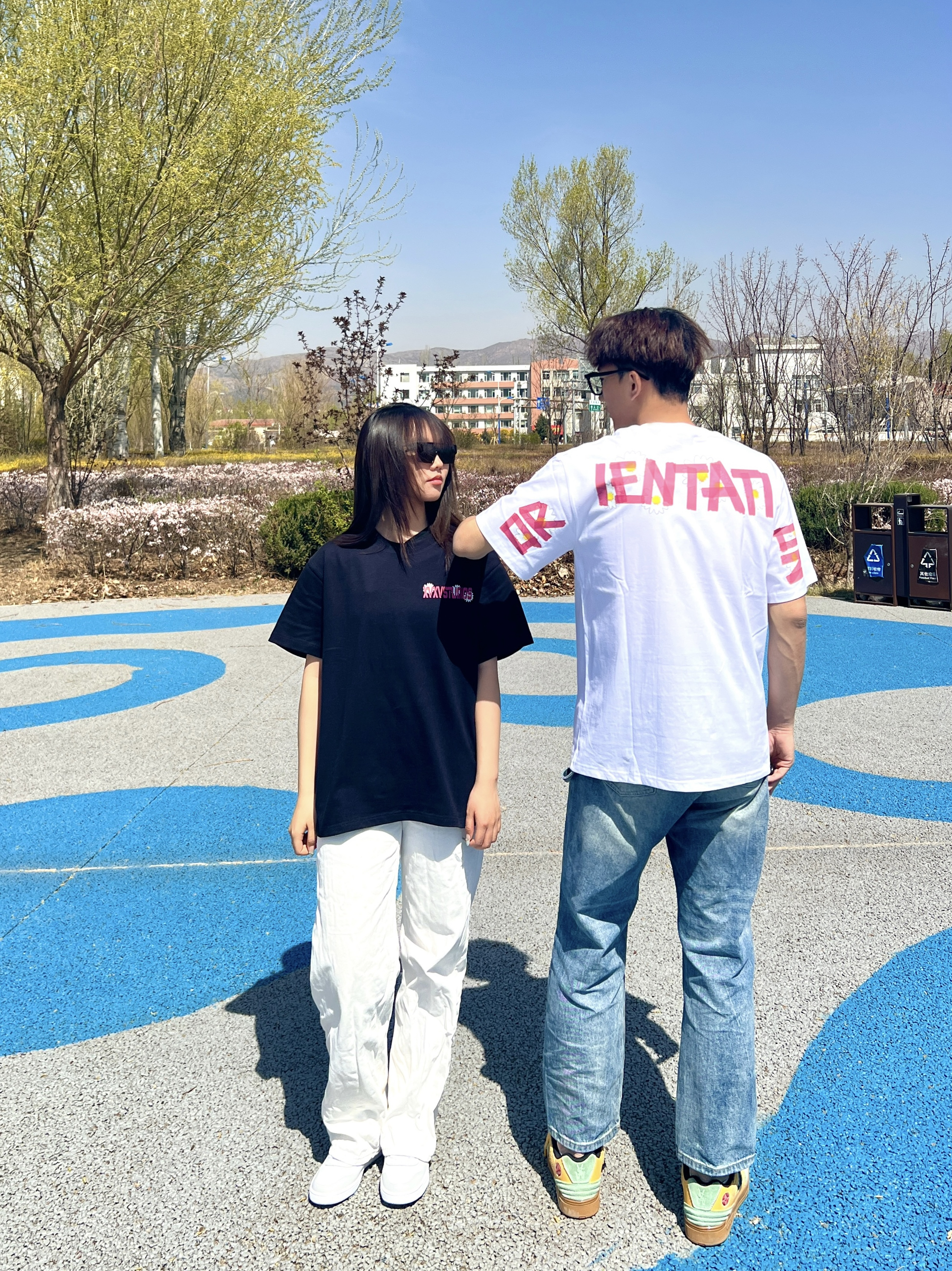 今天分享一款情侣半袖 后背的粉色字母也是个性十足 宽松的版型很好搭裤子 面料透气穿着挺舒服 185/75 2XL 160/50 M 整体的穿搭效果就是图片效果