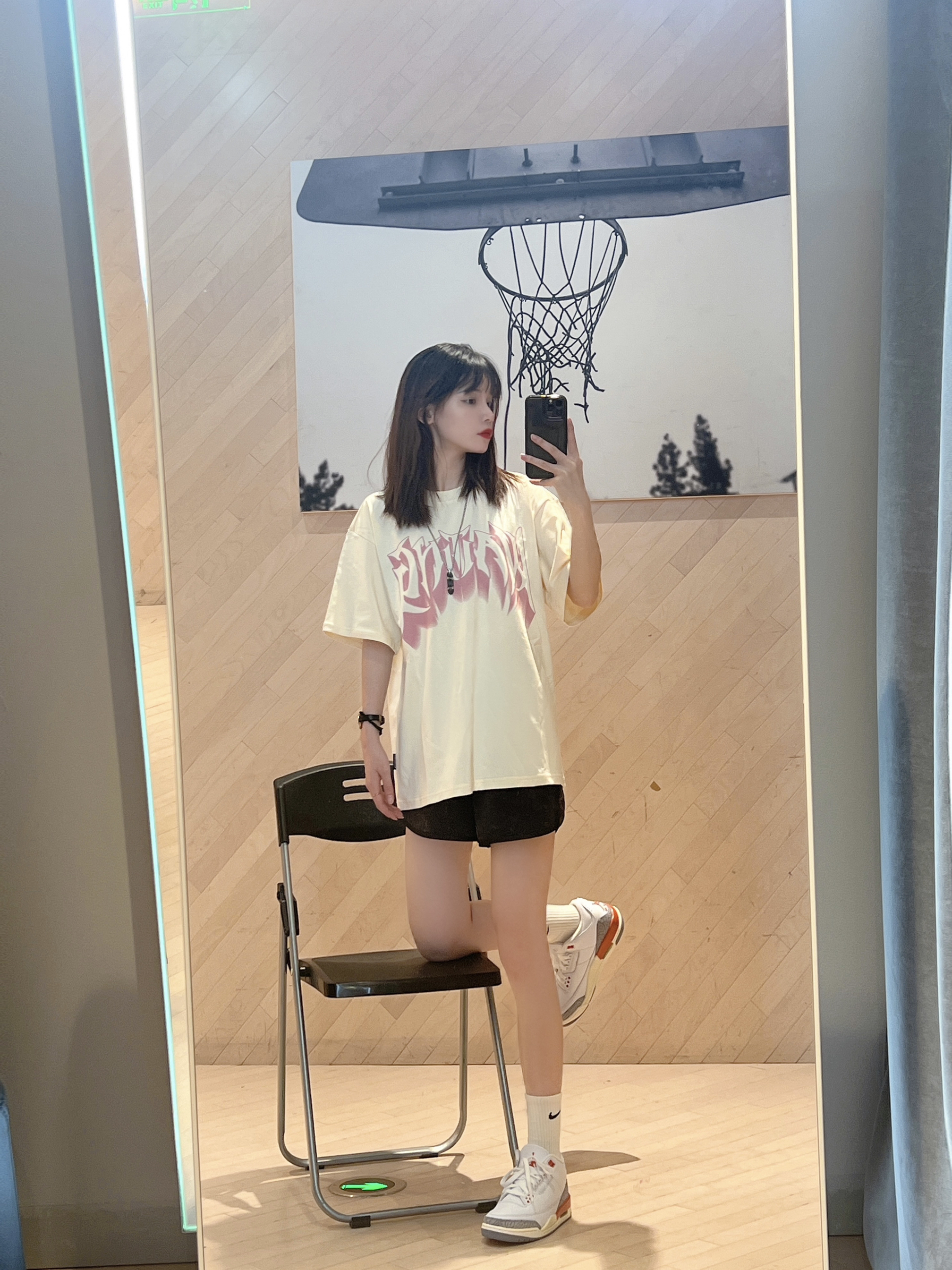 今日穿搭很喜欢 T恤是 GWAITINGWAVE候浪🏠杏 色T恤加上粉色 显得很温柔~ 美式logo图案 有点帅宽松版型质感不错滴! 男女同款☺️ 再搭配🍊新配色AJ3这双以白色为主基调,经典爆裂纹设计还是熟悉的高级质感,皮面质感很细腻。亮橙色在鞋子上起了很好的效果,鞋孔、鞋标、鞋尾亮眼的颜色很适合春天和夏天,所以在春夏也很百搭感