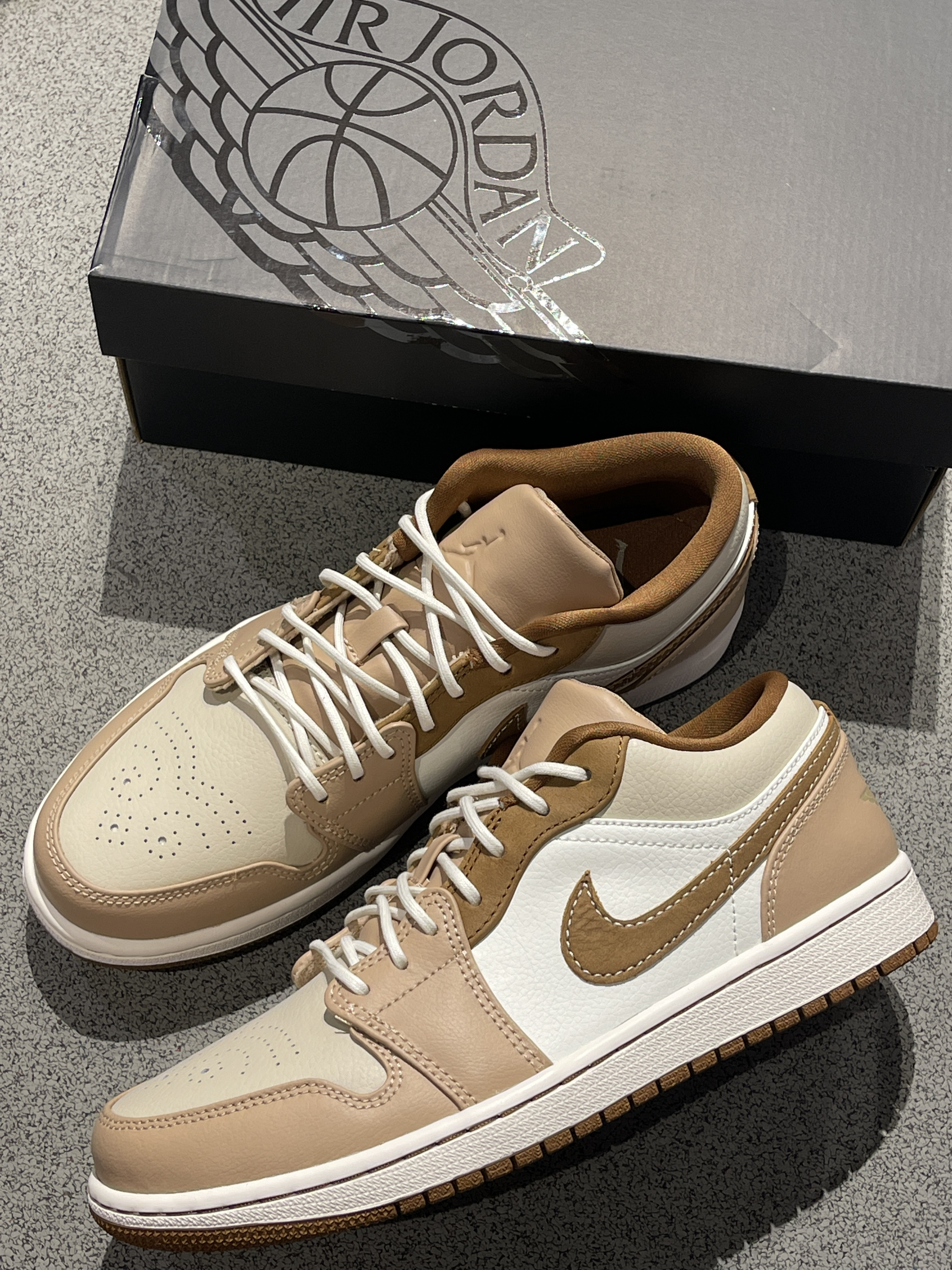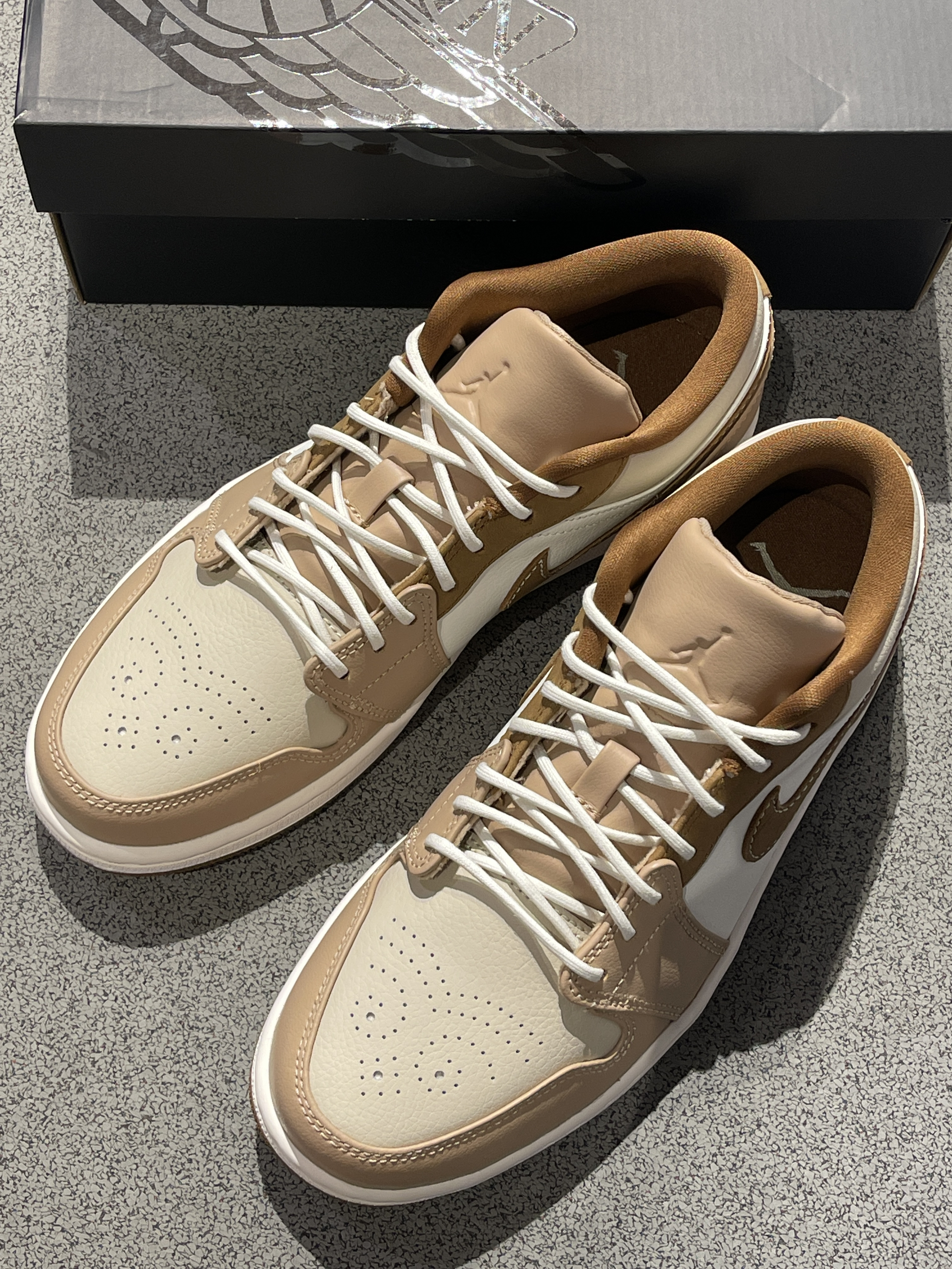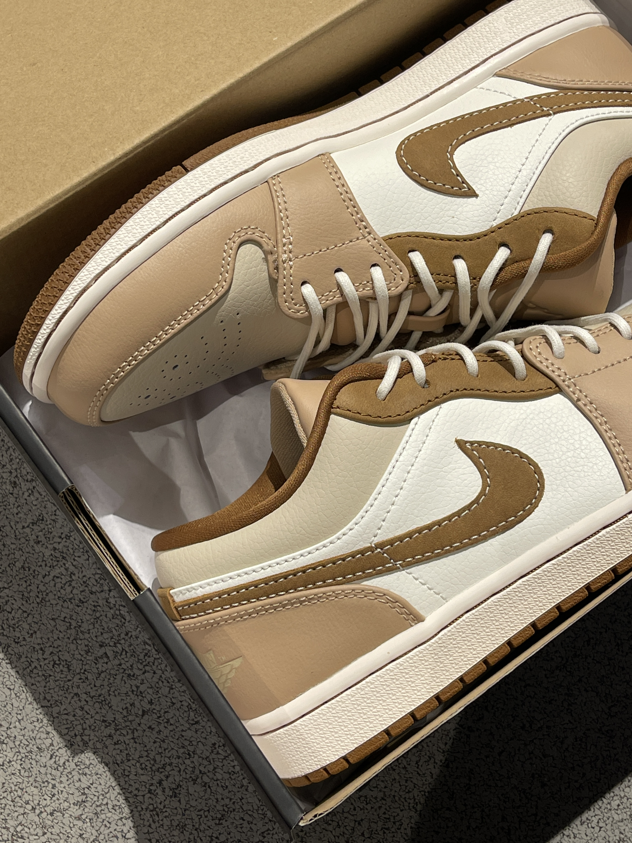 你的换季第一双百搭单品是什么? Jordan|Air Jordan 1 Low Premium "Tan/Brown" 低帮复古篮球鞋“褐色”📔,经典复古aj1low鞋型,全身采用细腻皮质,干净富有质感~鞋头独特的排气口,还以为是联名款,小众又高级~🤩