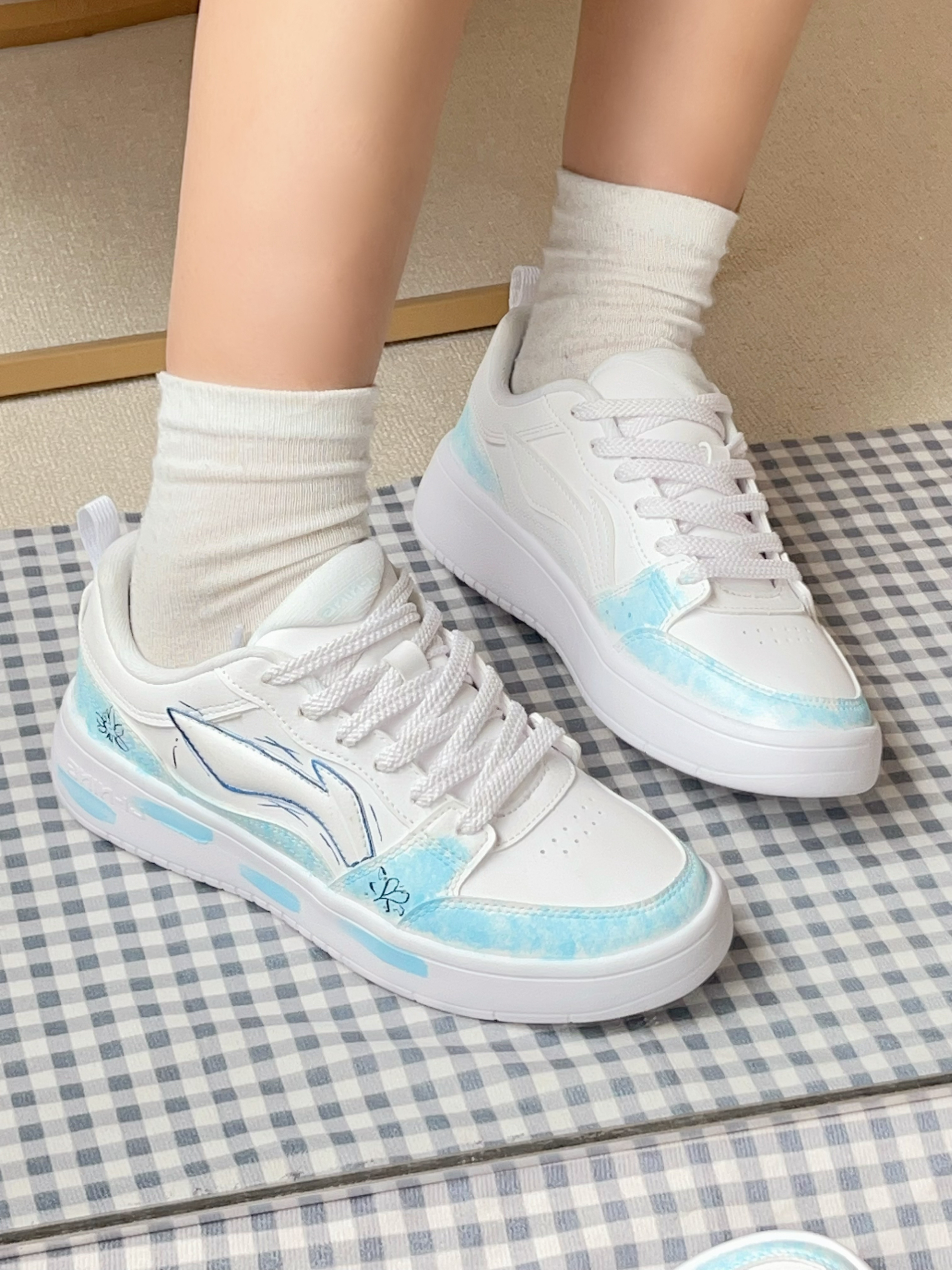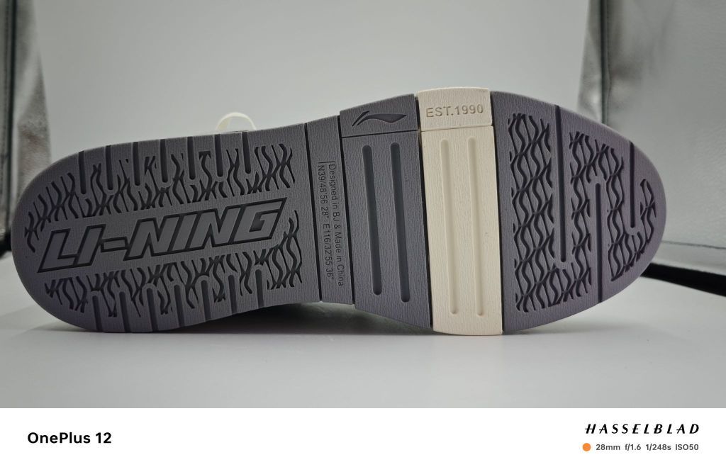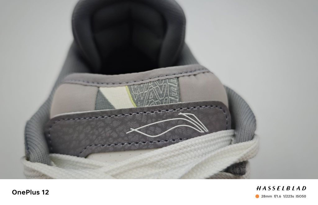 整体以灰白色为主,相对比较简约,也比较好穿搭。鞋舌处有加厚处理,双鞋舌的设计,鞋身有李宁的logo,后跟有凸起设计,防止不跟脚的情况出现,有一种立体感。鞋底采用了全生胶的材料,让鞋底更加的耐磨厚实。整双鞋子虽然整体配色简单,但细节十分到位。